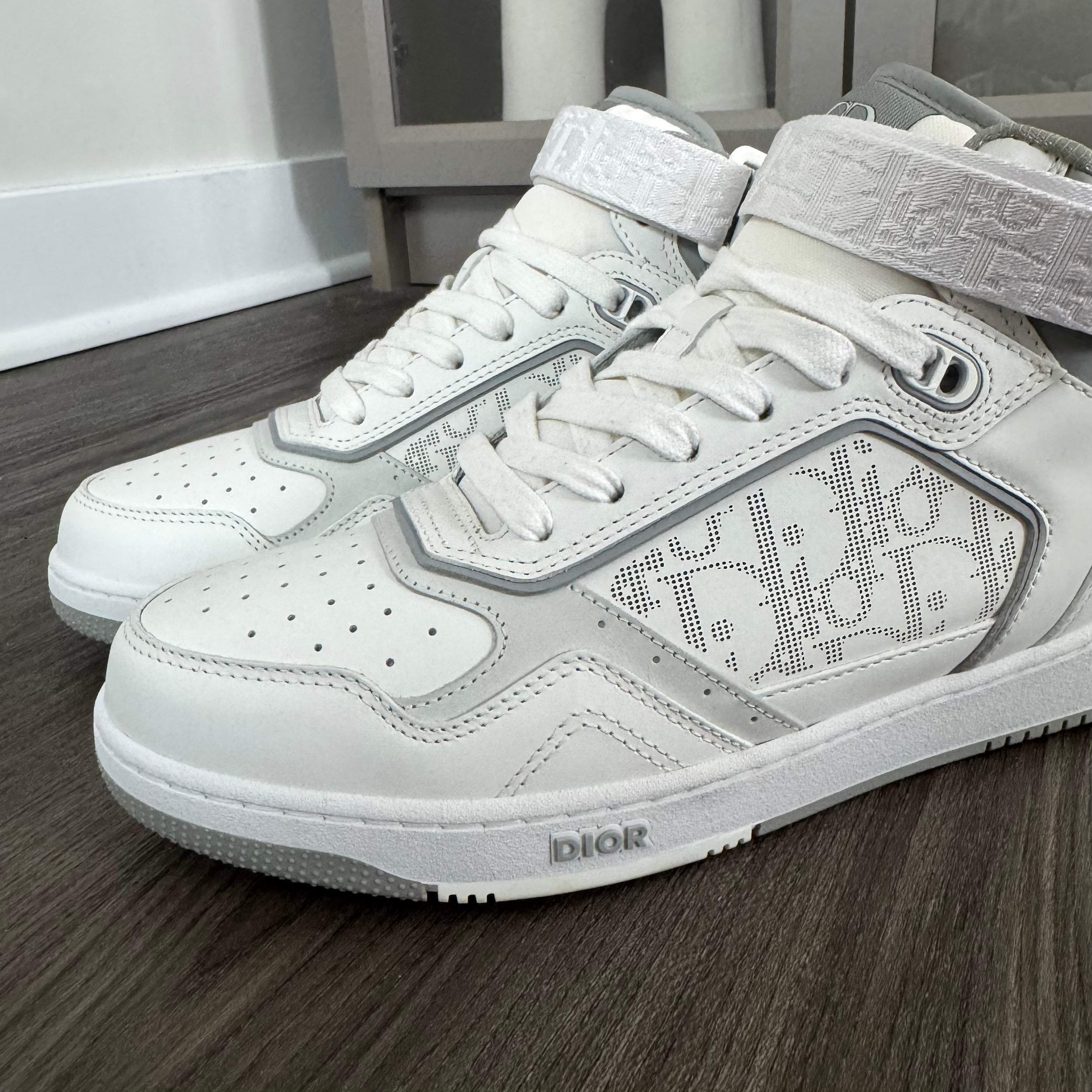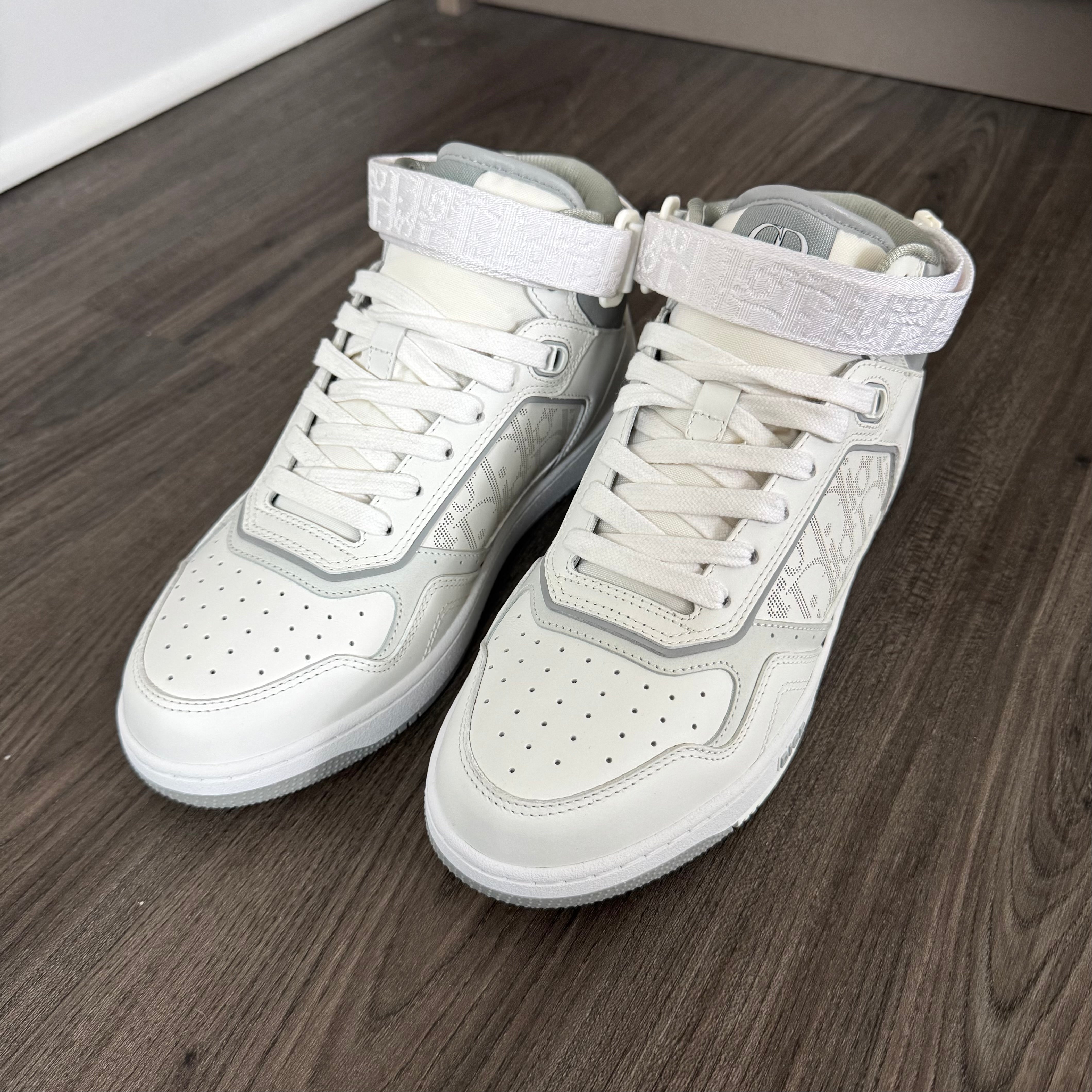 DIOR B27 High Top White Gray Monogram Strap Sneakers