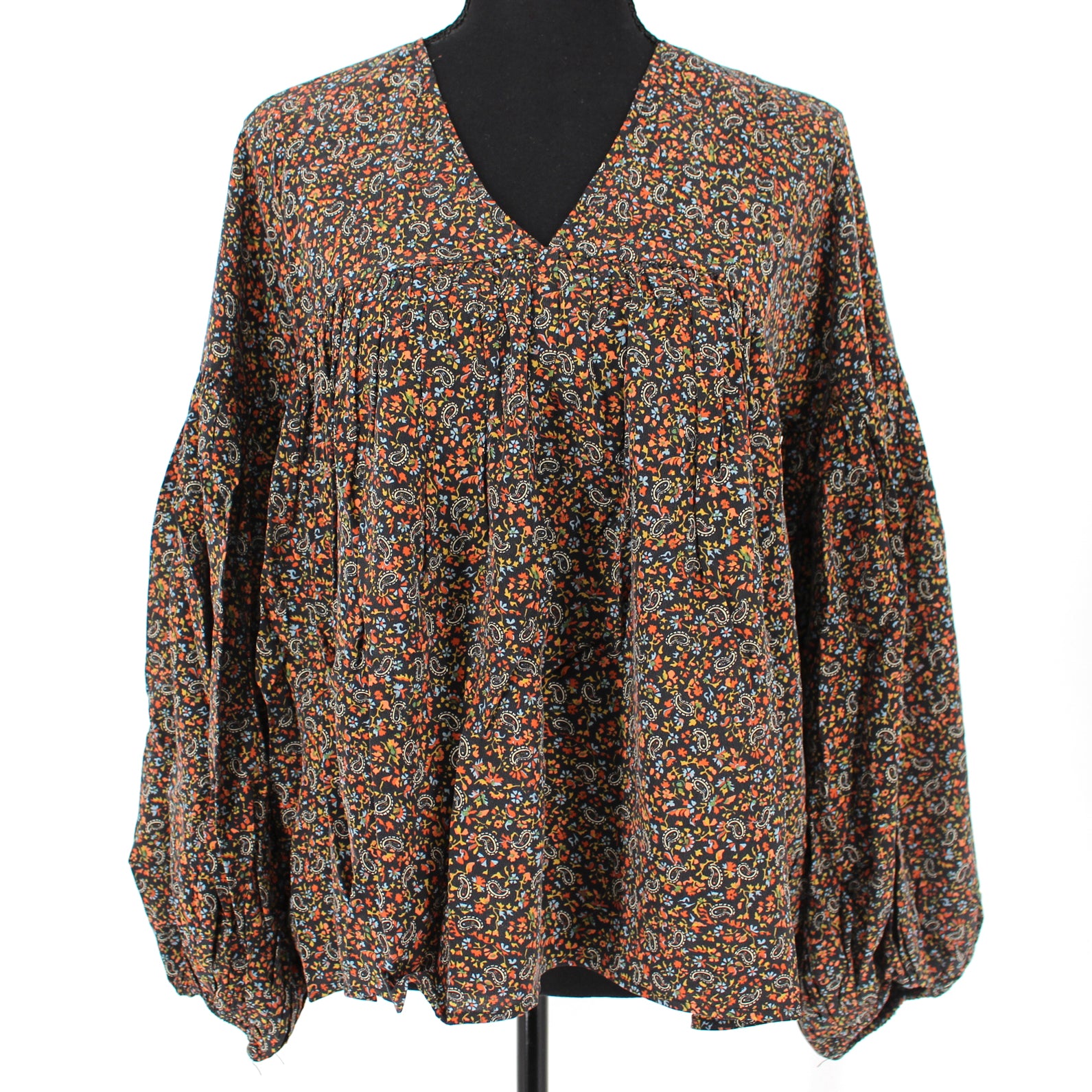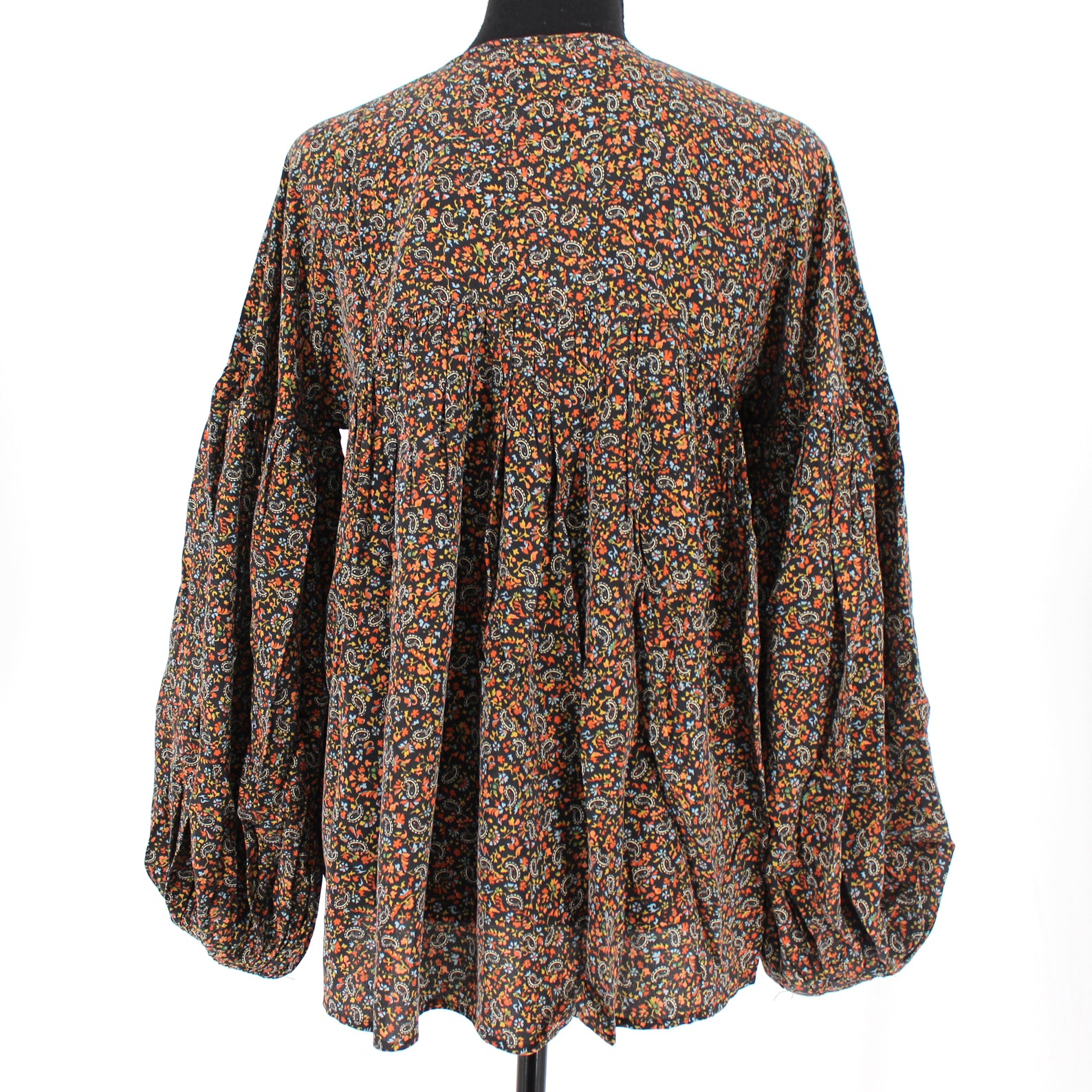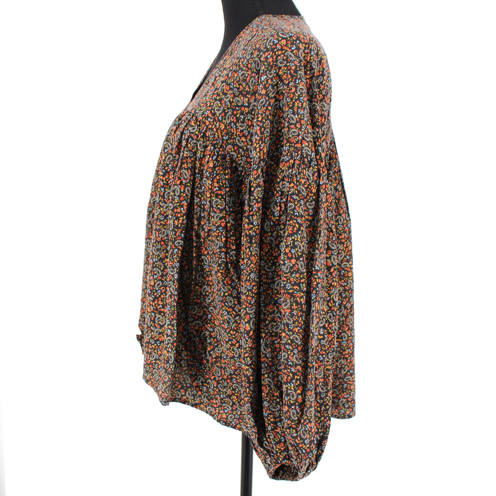 DÔEN Savona Black Saint Claude Paisley Silk Balloon Sleeves Top.
