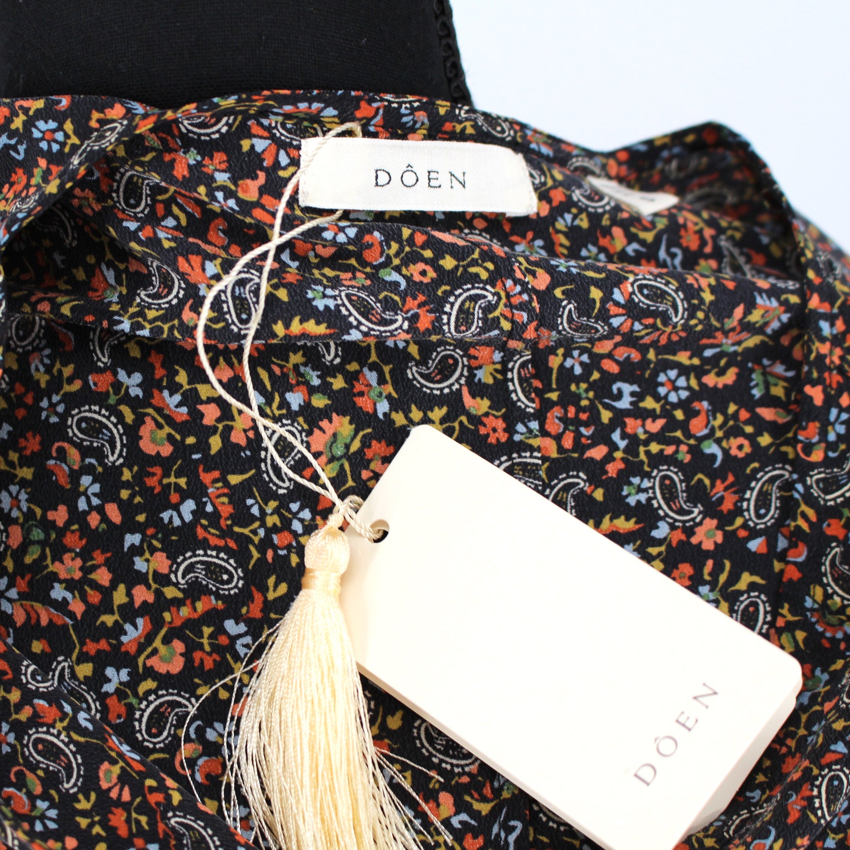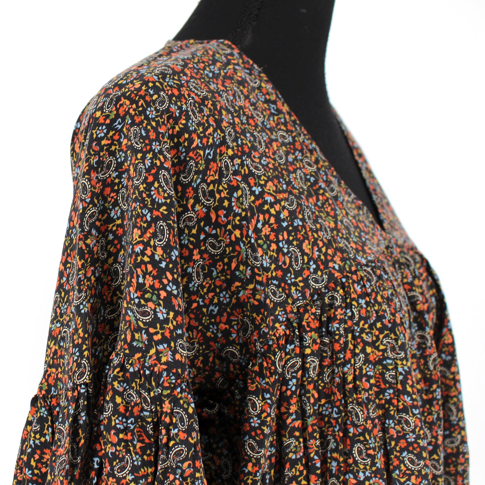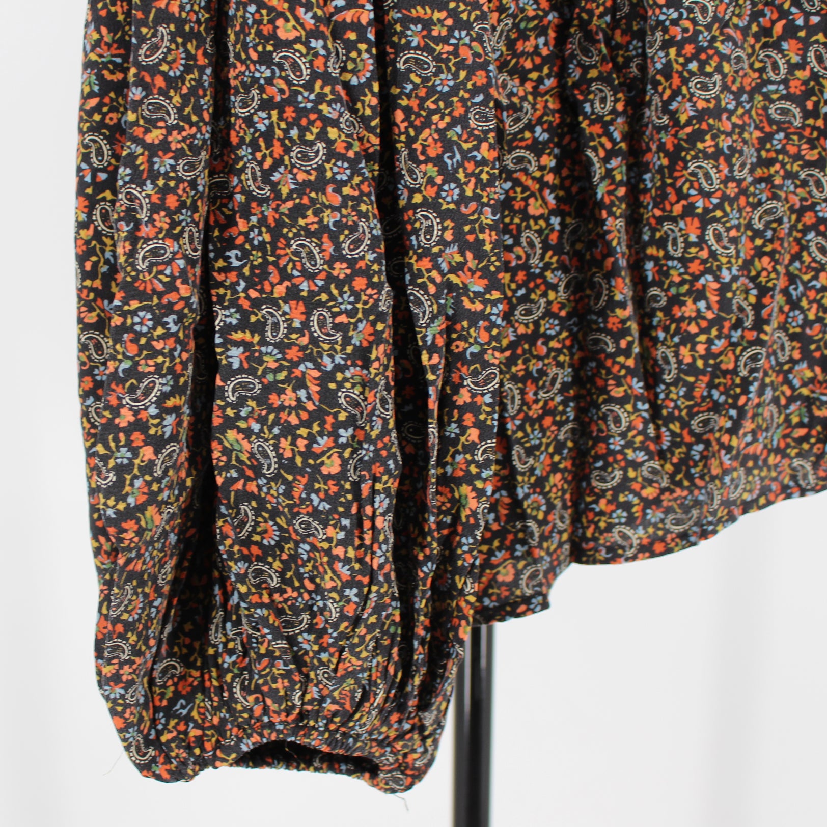 DÔEN Savona Black Saint Claude Paisley Silk Balloon Sleeves Top.