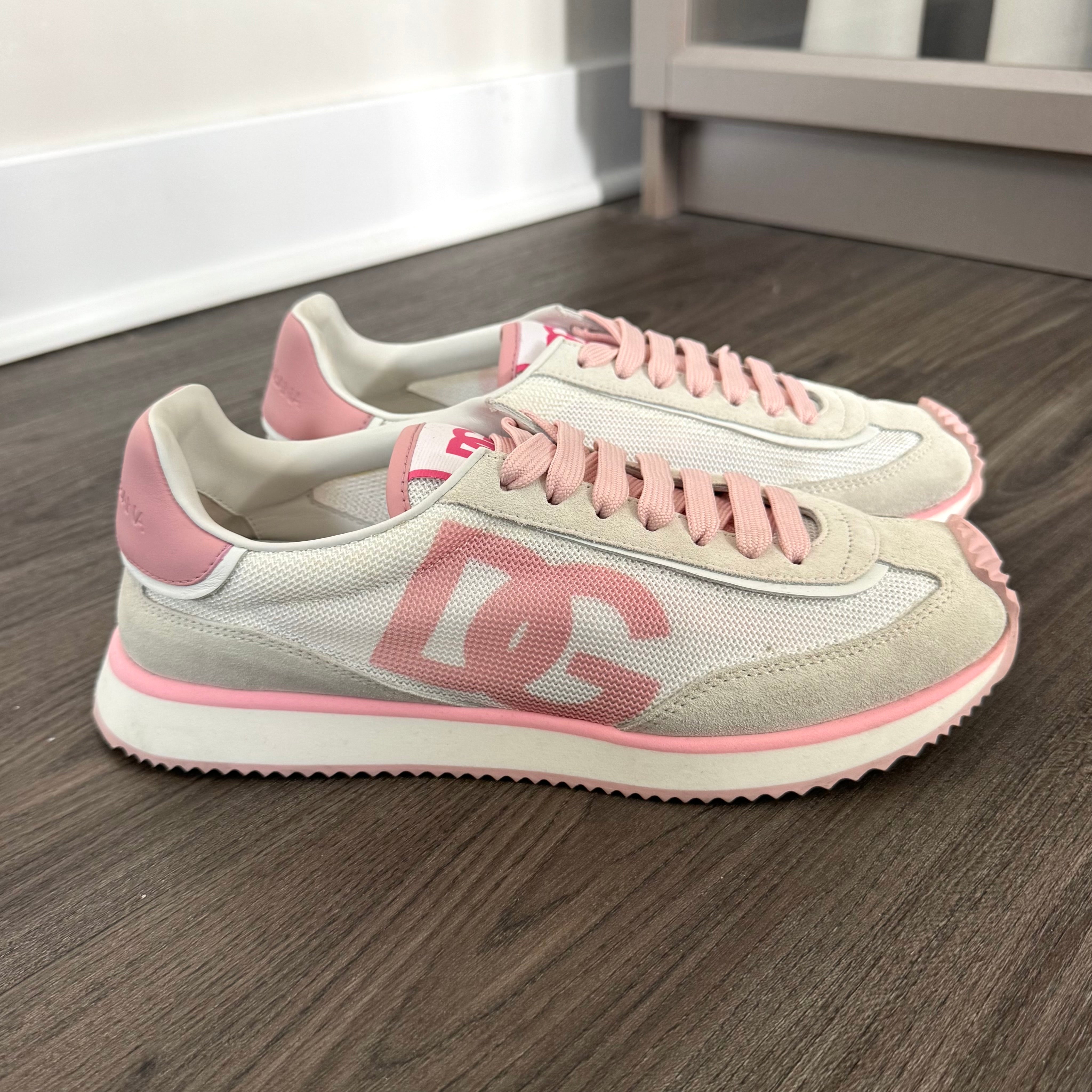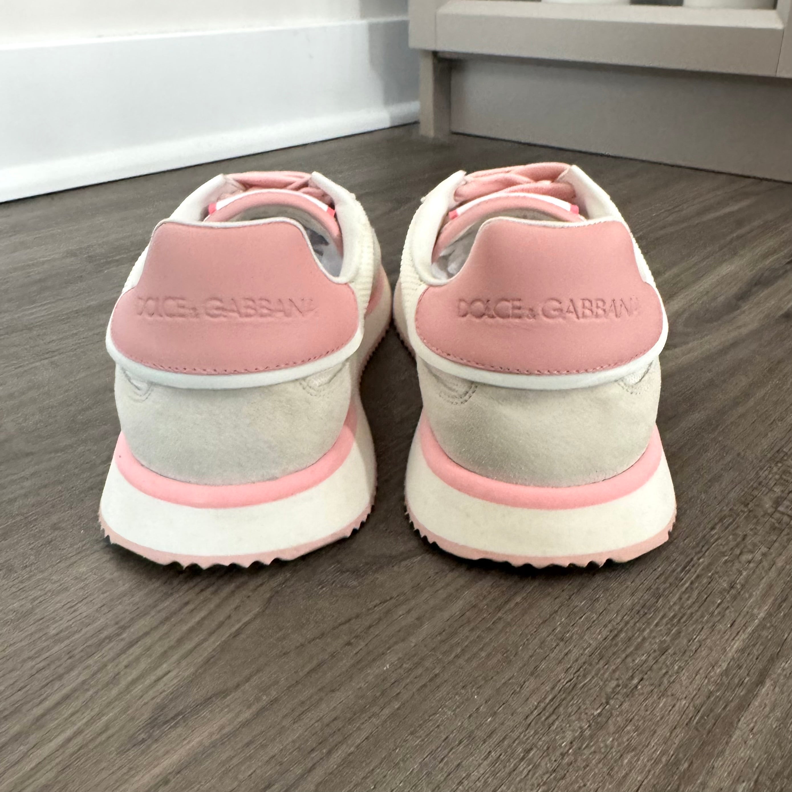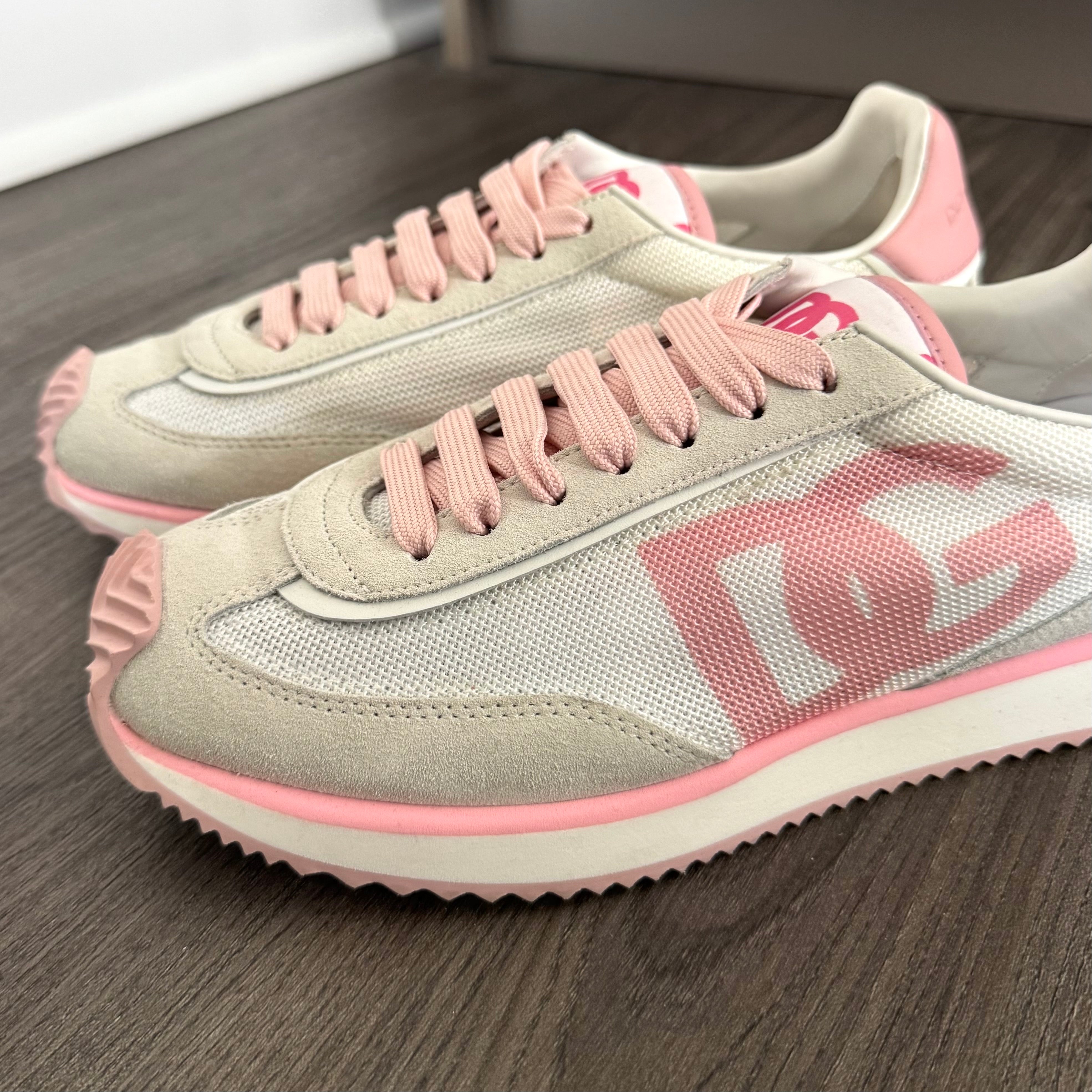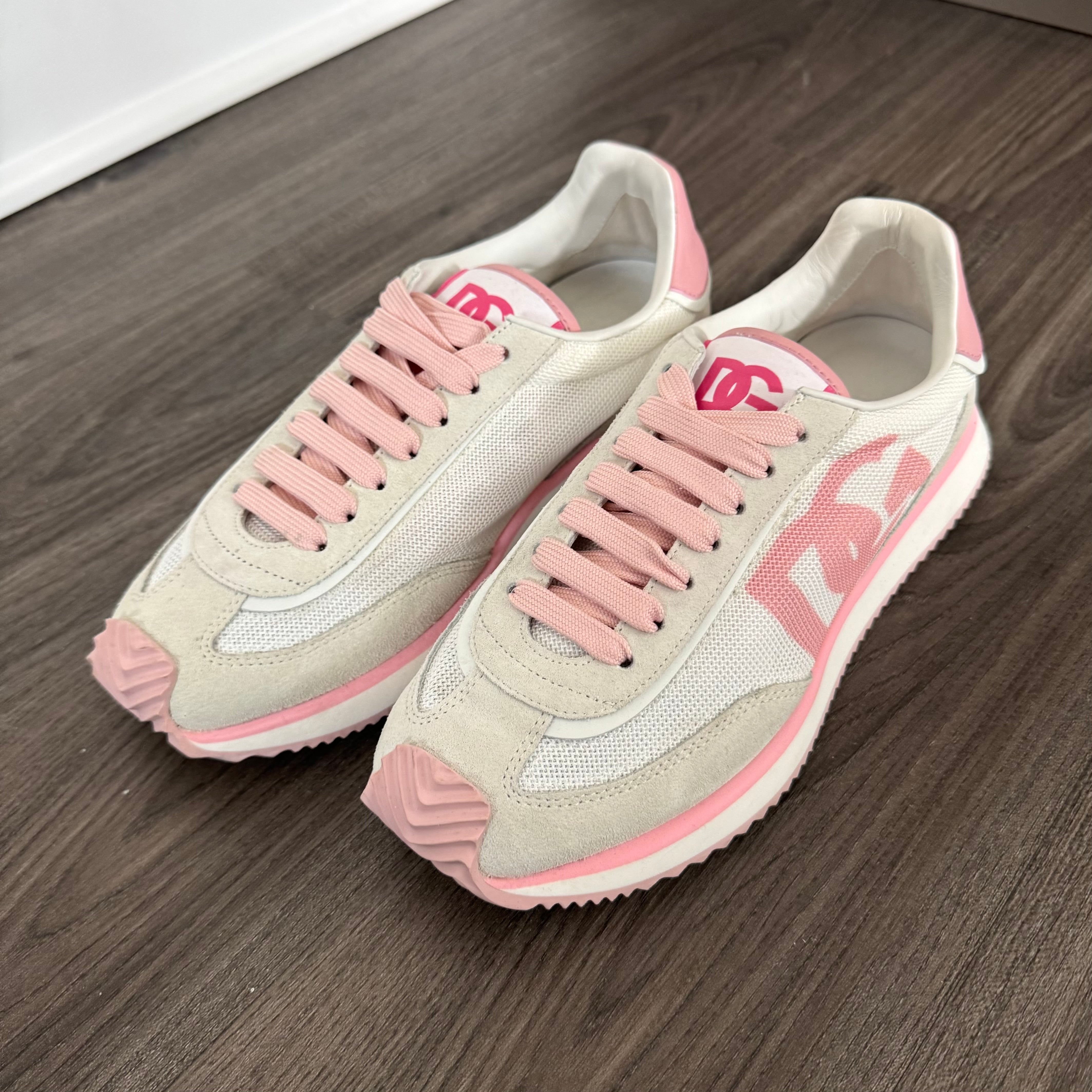 Dolce & Gabbana DG Bianco Rosa Pink Cushion Lace Tie Sneakers
