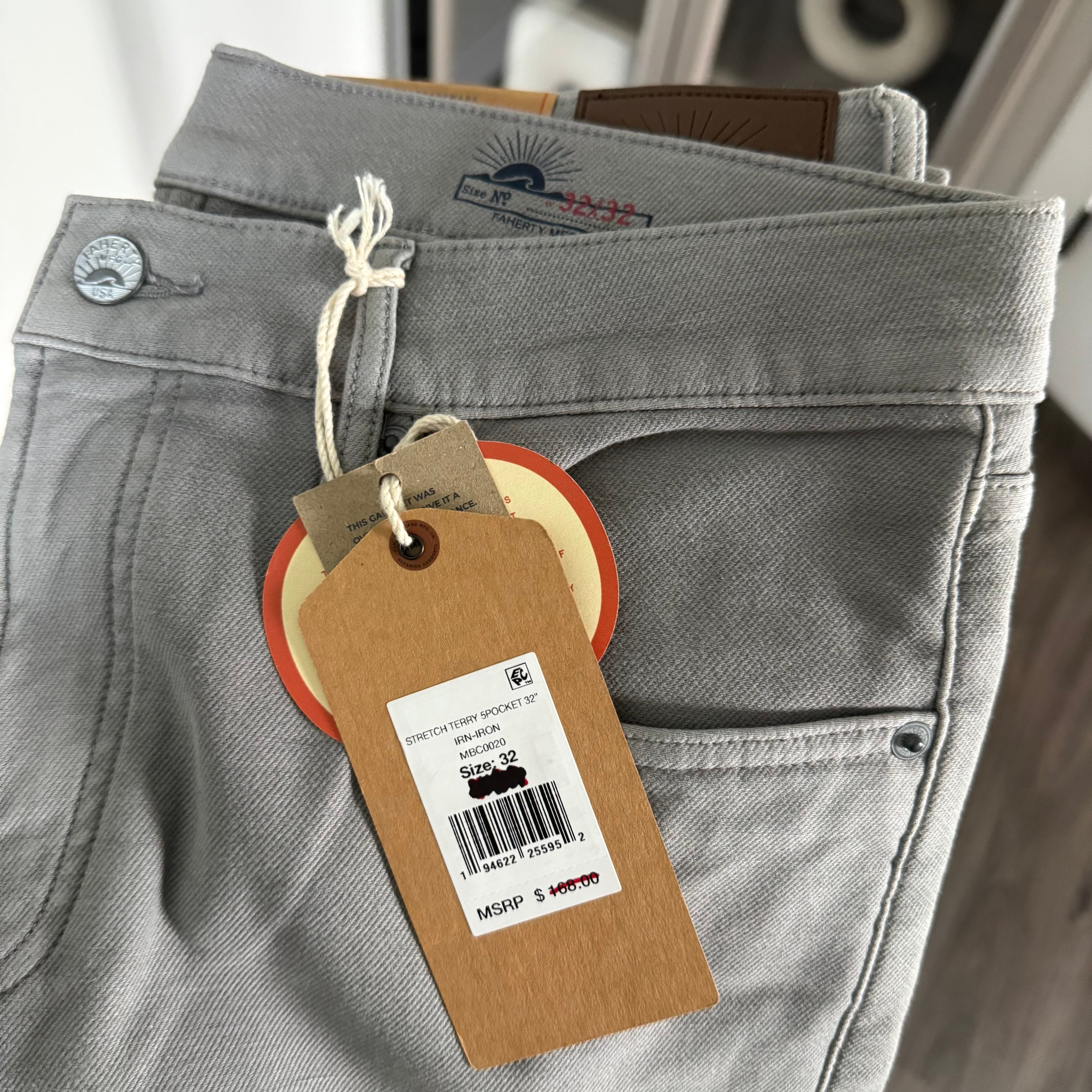 Faherty Stretch Terry Iron Grey Rugged Mid Rise Slim Fit Pants