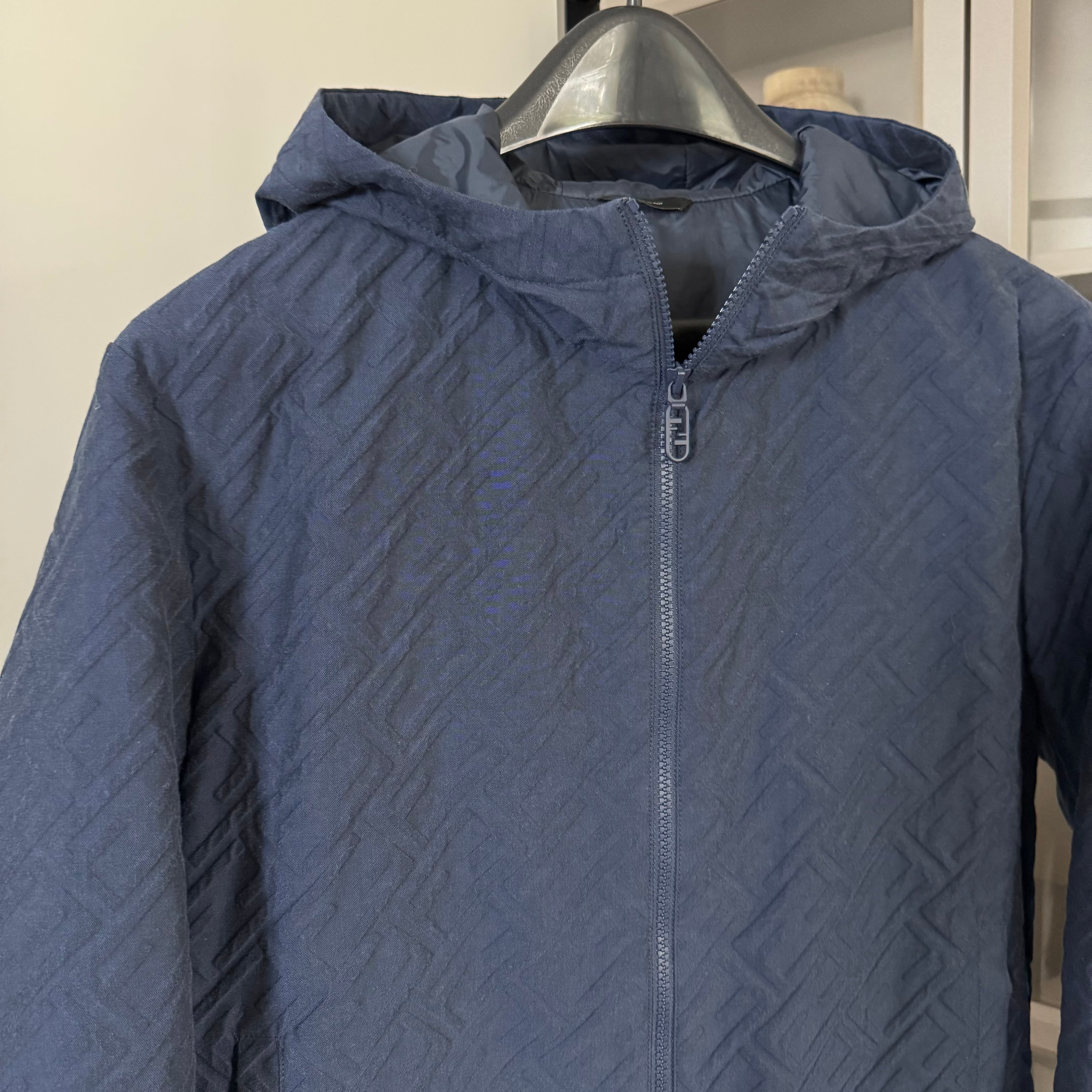 Fendi Blouson Monogram Navy Blue Hooded Zip-Up Jacket