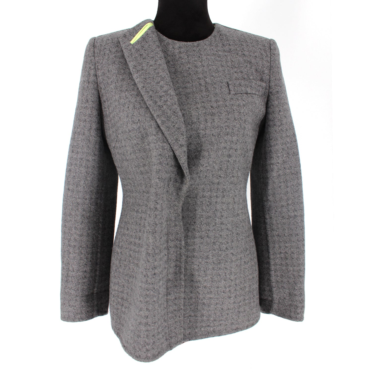 Giorgio Armani Grey Wool Asymmetric Button Blazer Jacket.