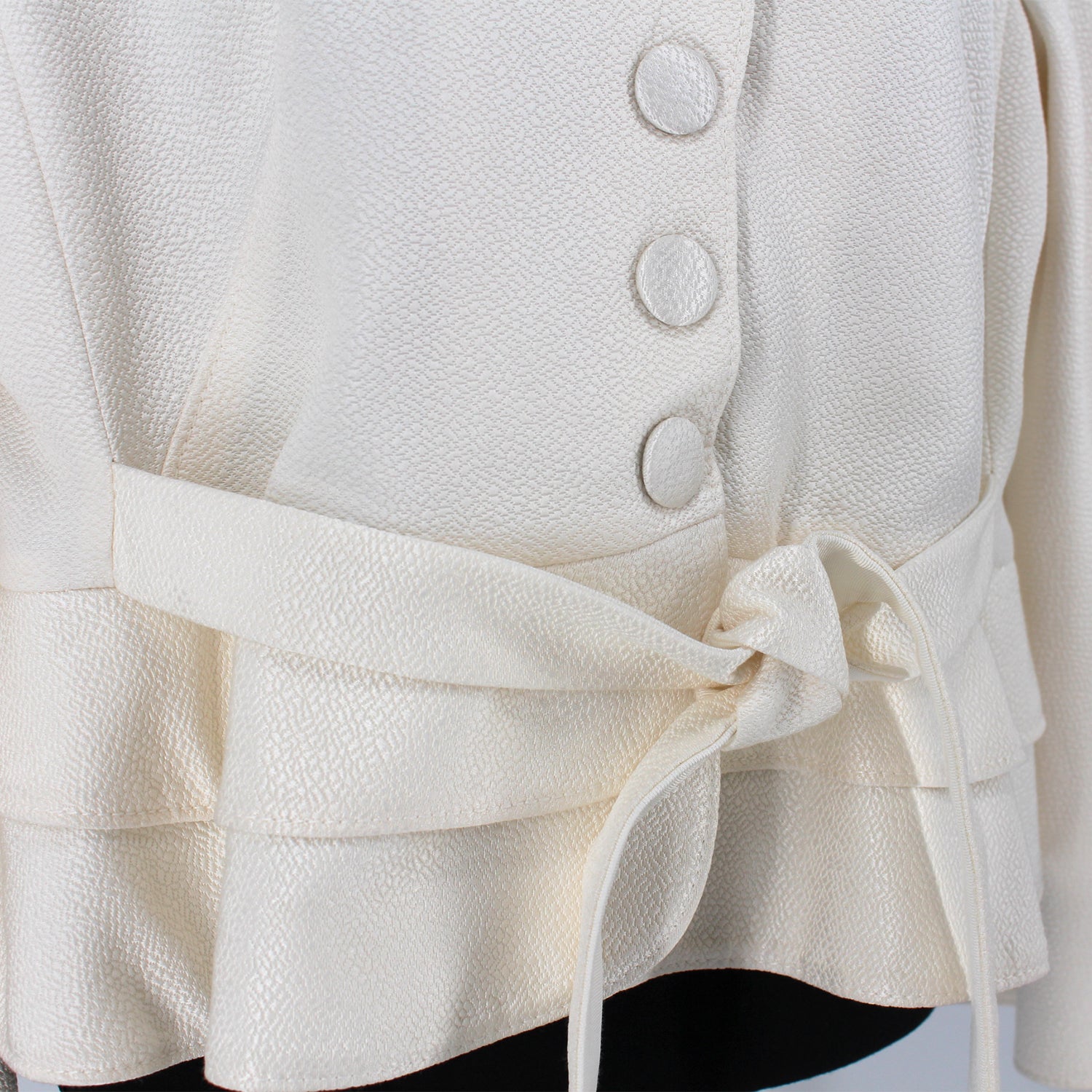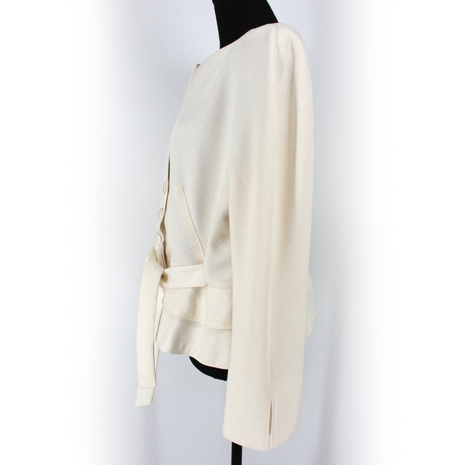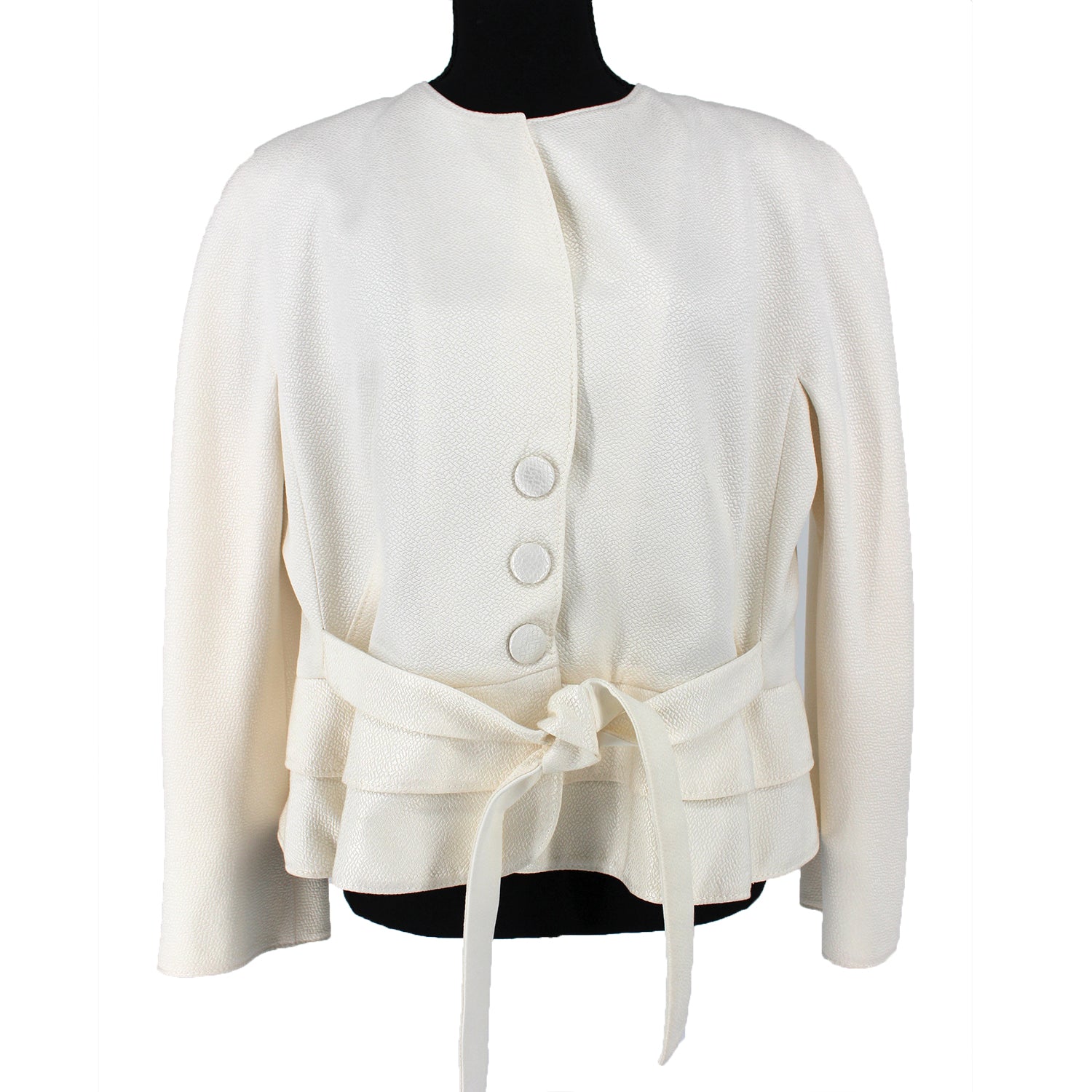 Giorgio Armani White Silk Textured Tie Front Jacket/Blazer.
