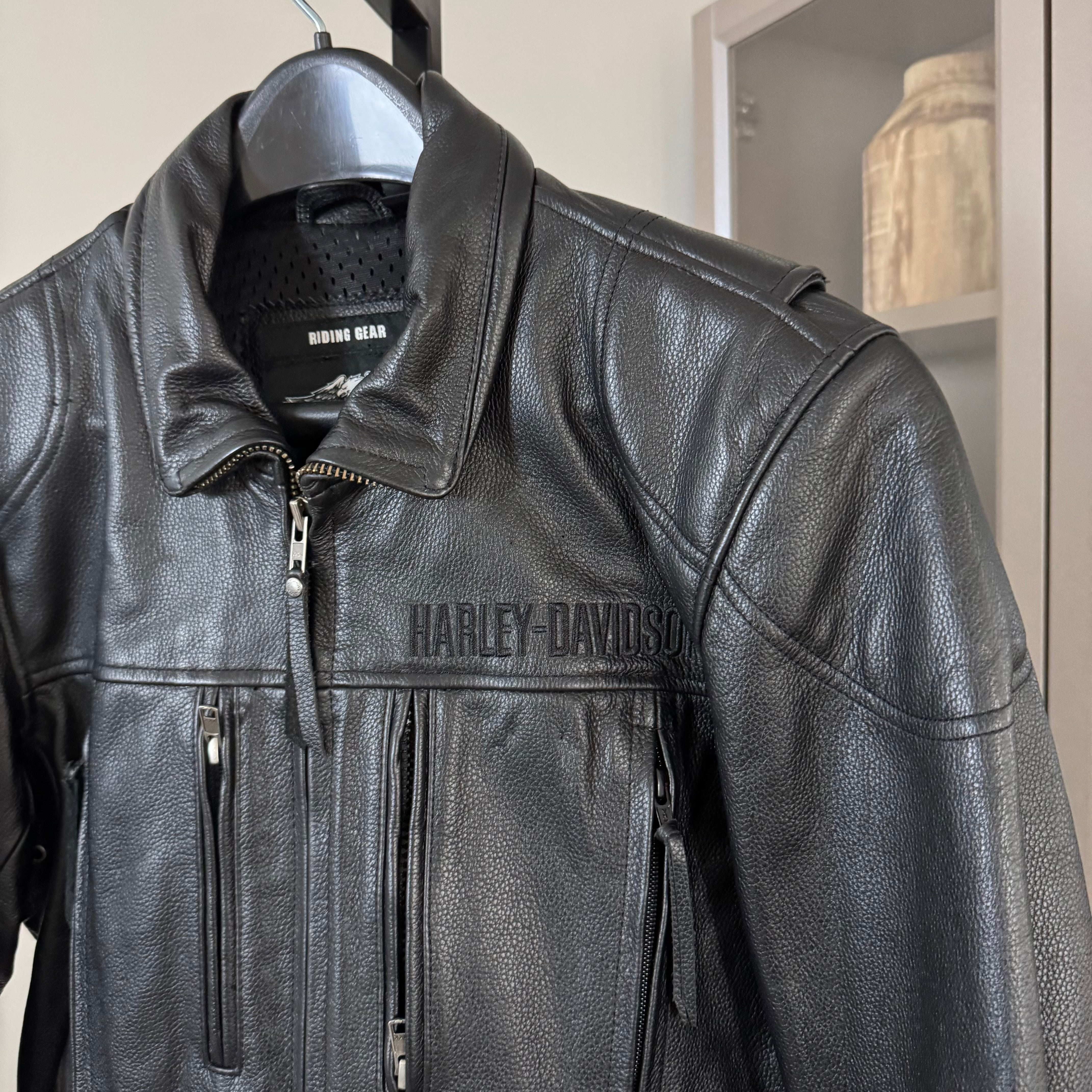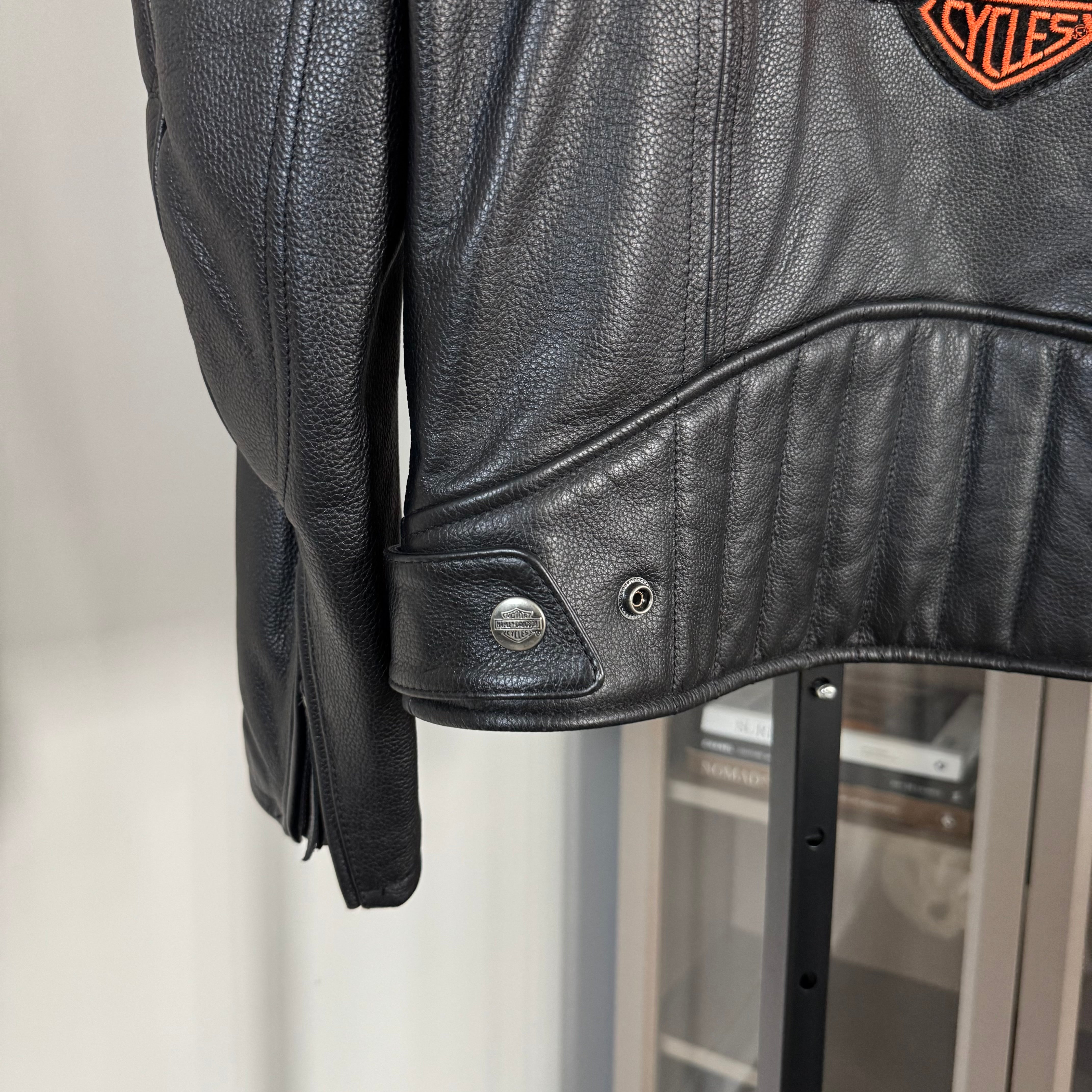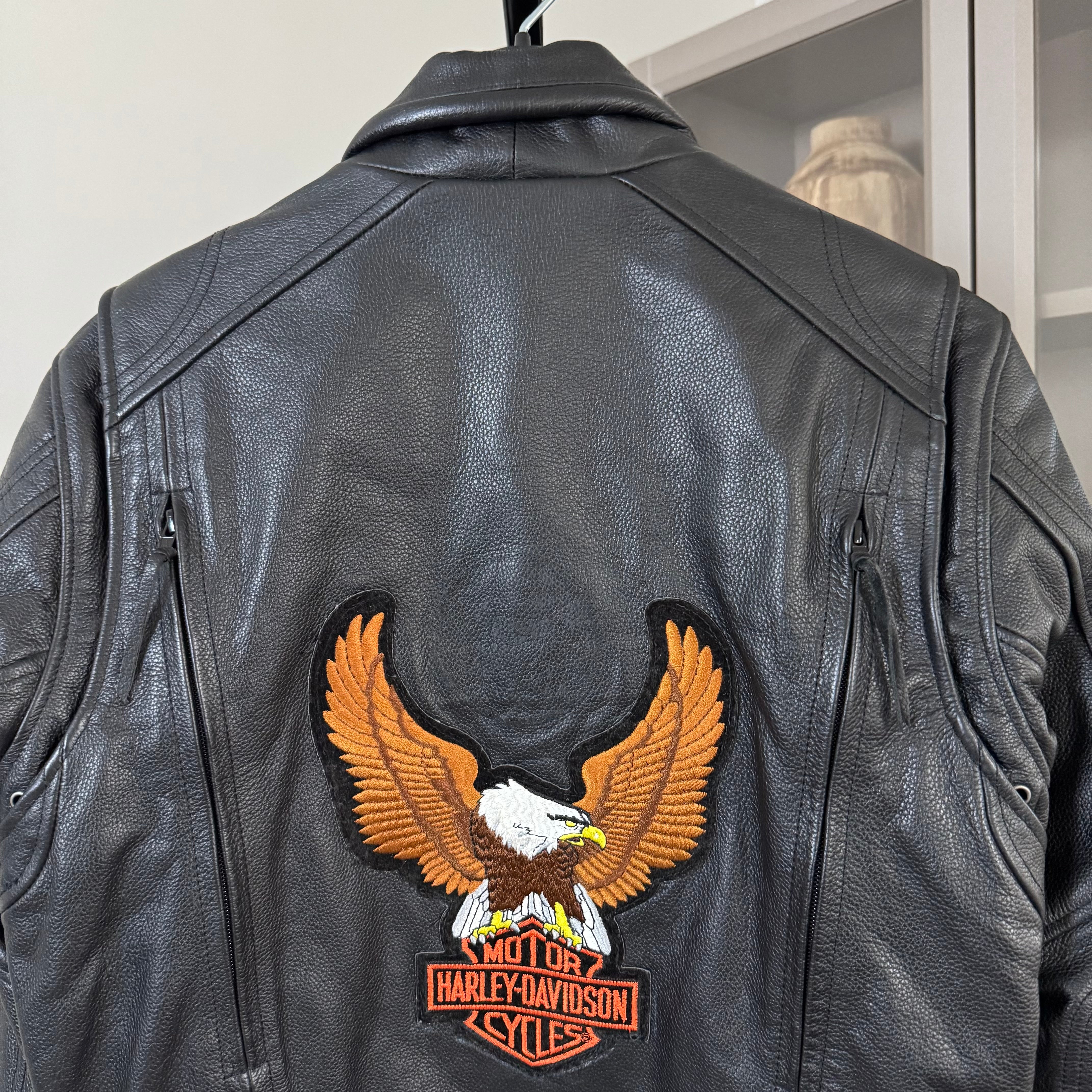 Harley Davidson Black Leather Embroidered Eagle Brand Patch Moto Jacket