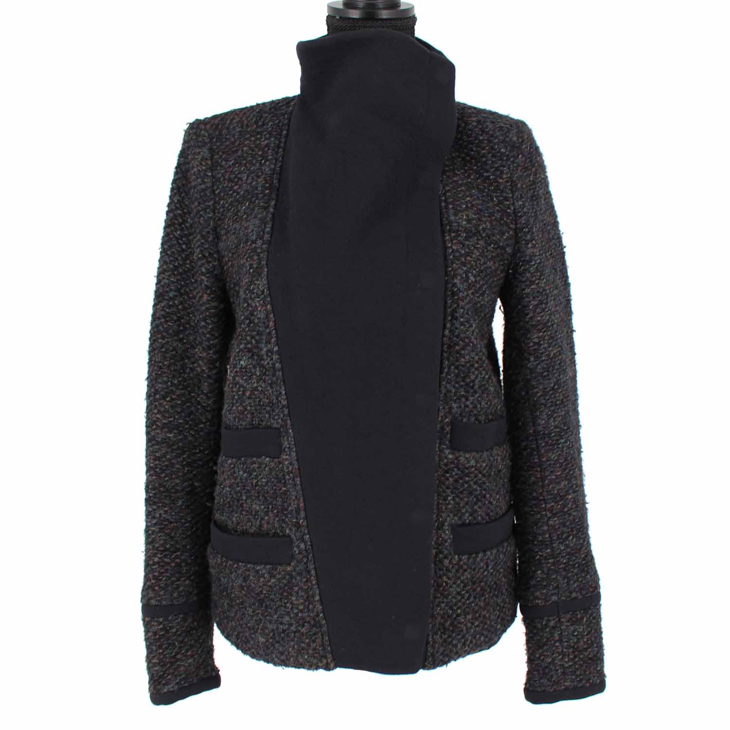 IRO Cydney Black Polyester Tweed Shawl Jacket Blazer.