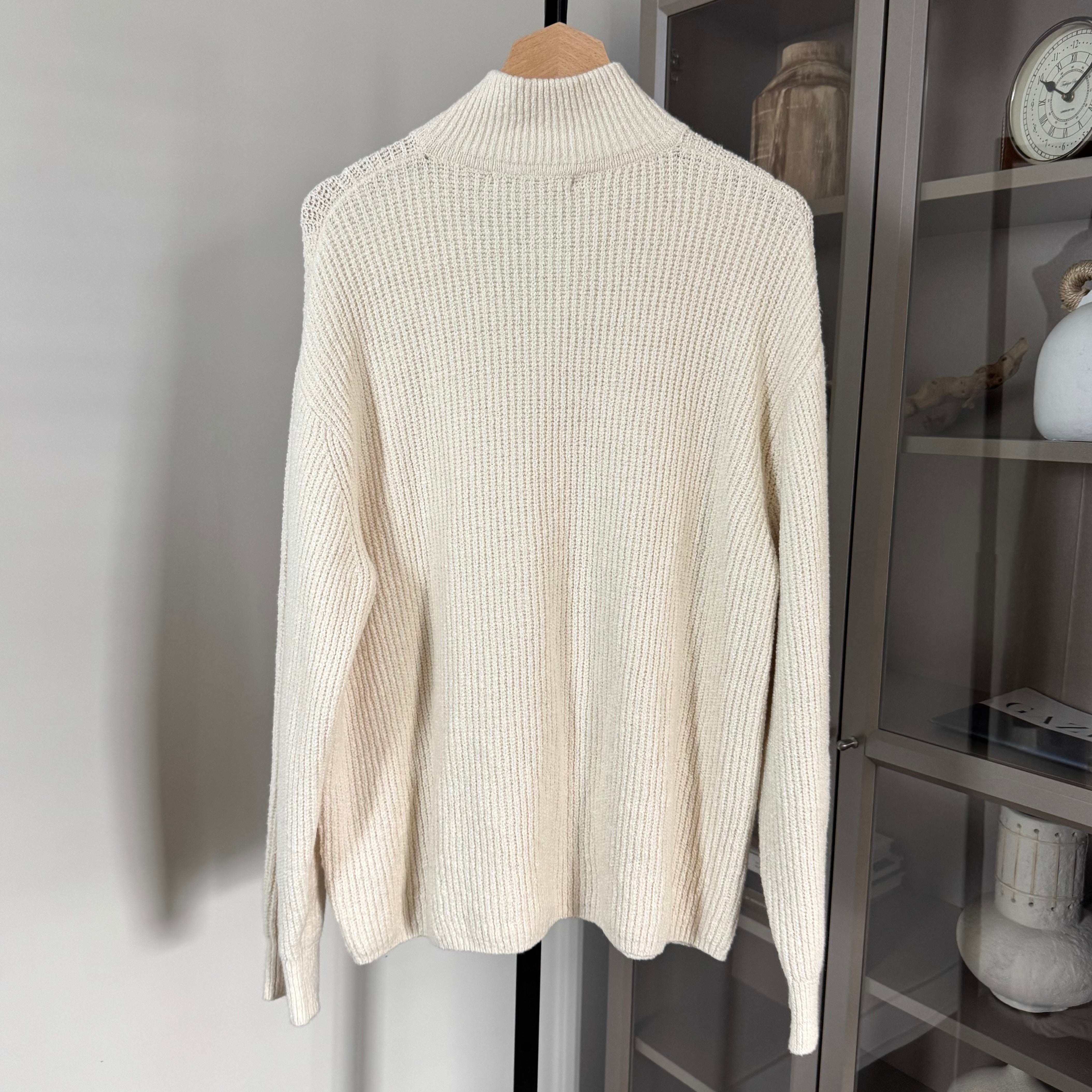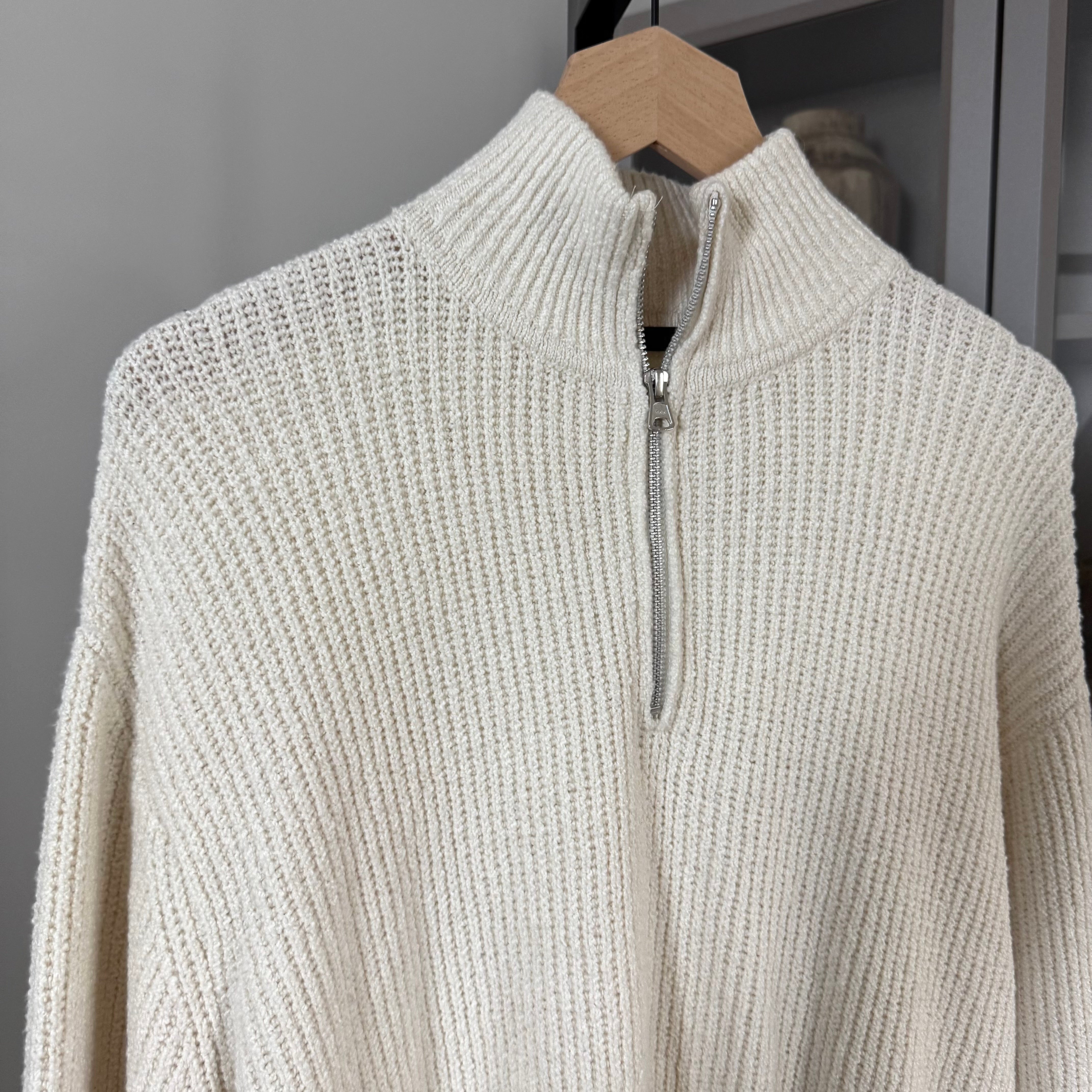 Jenni Kayne Oversized Half Zip Ivory Rib Knit Sweater