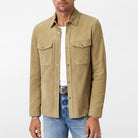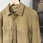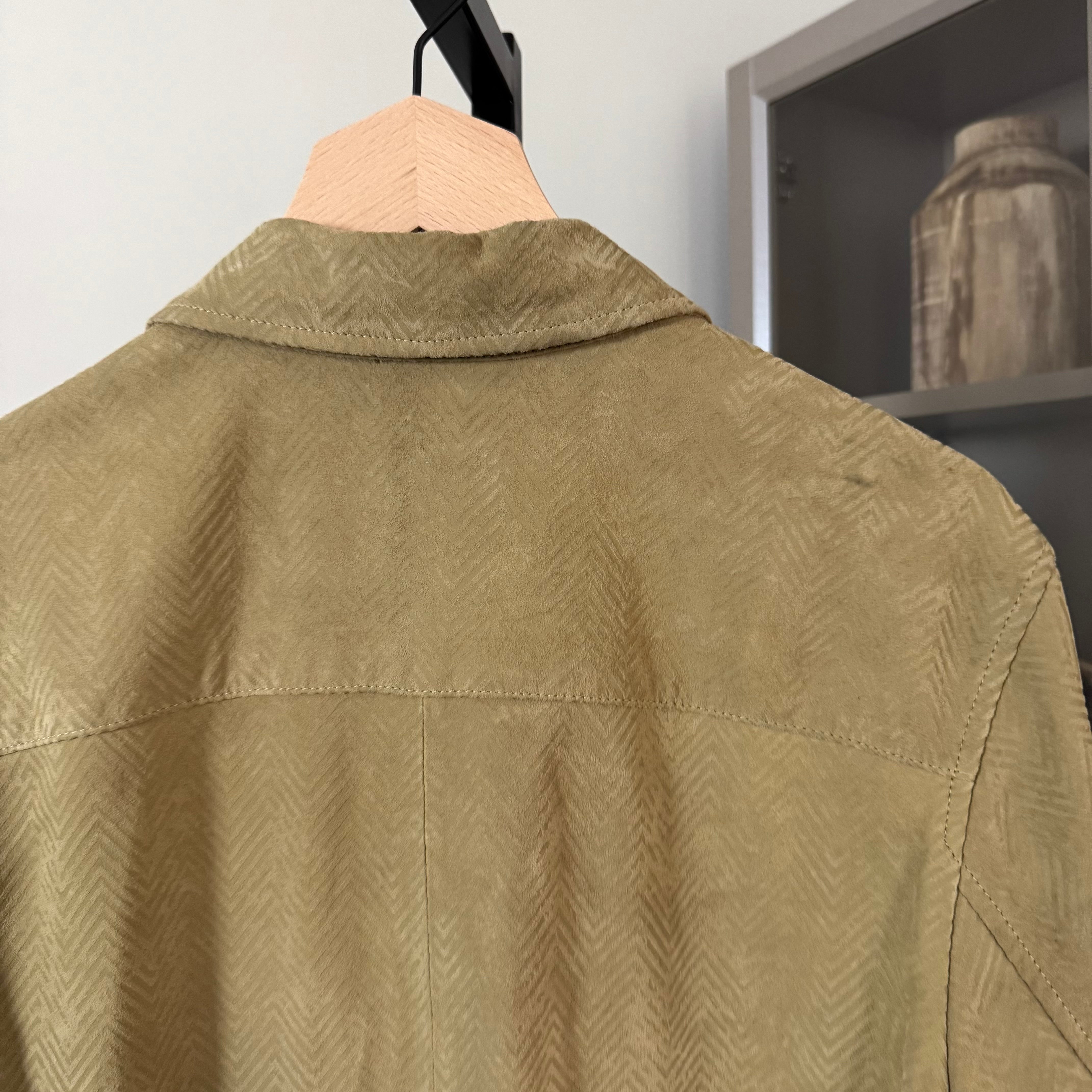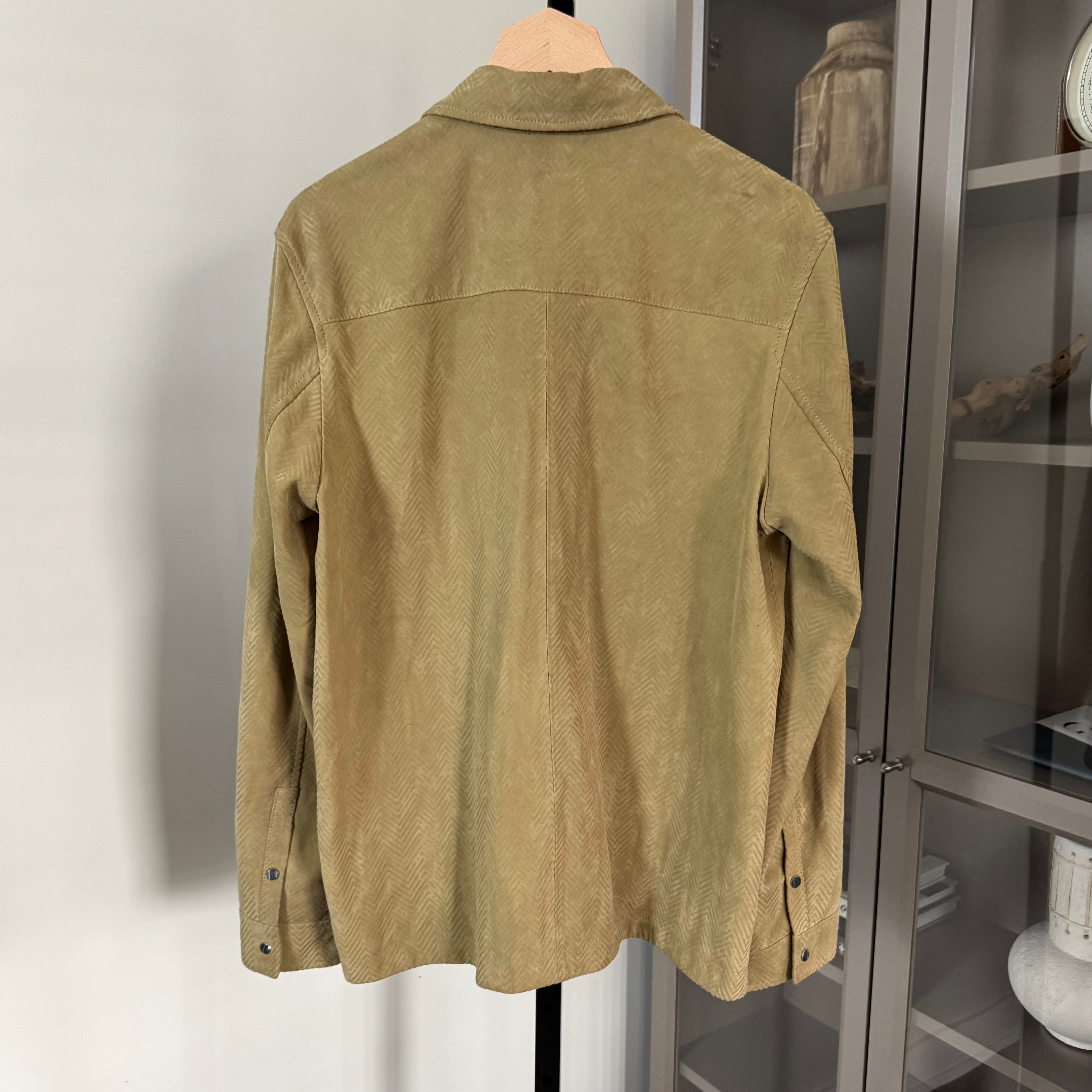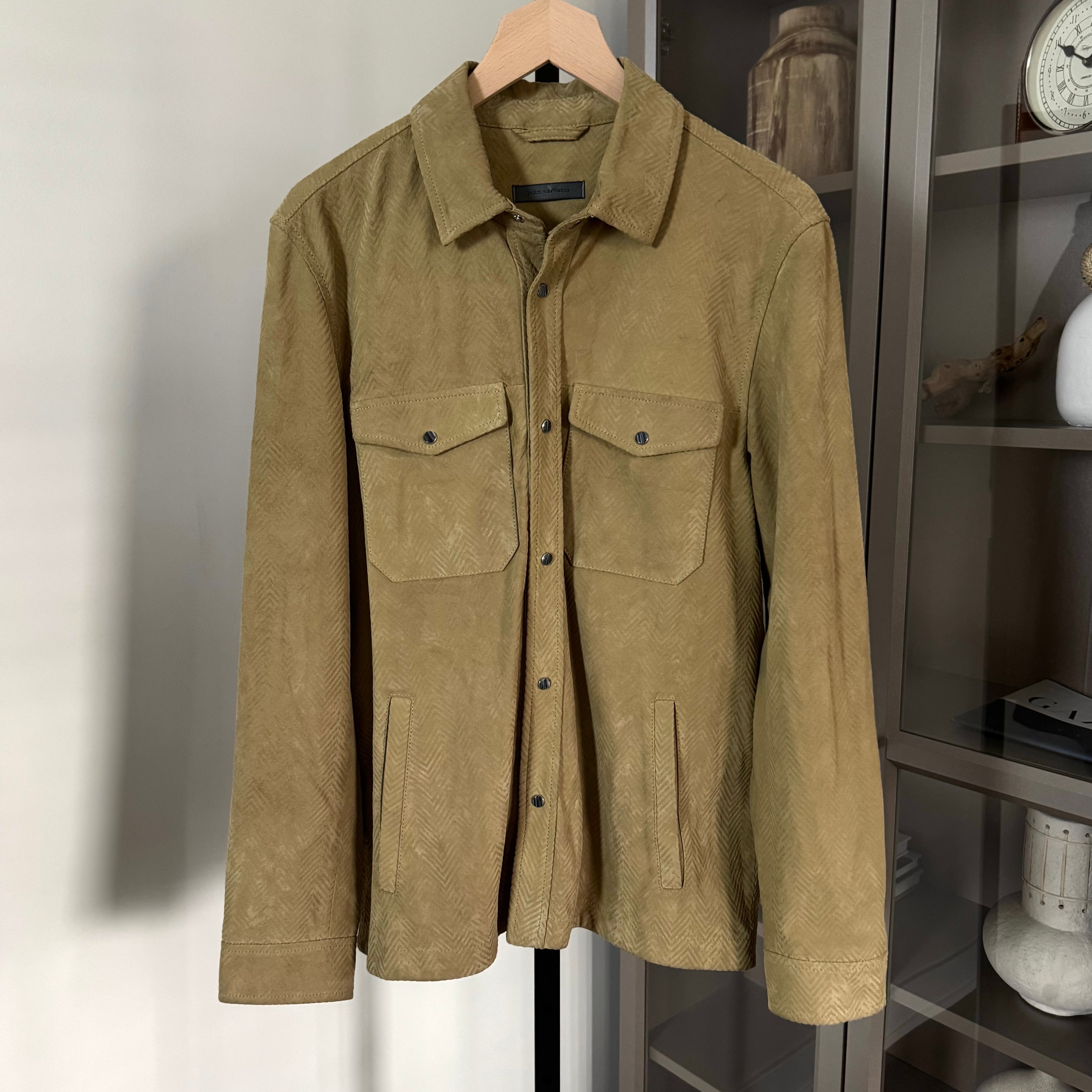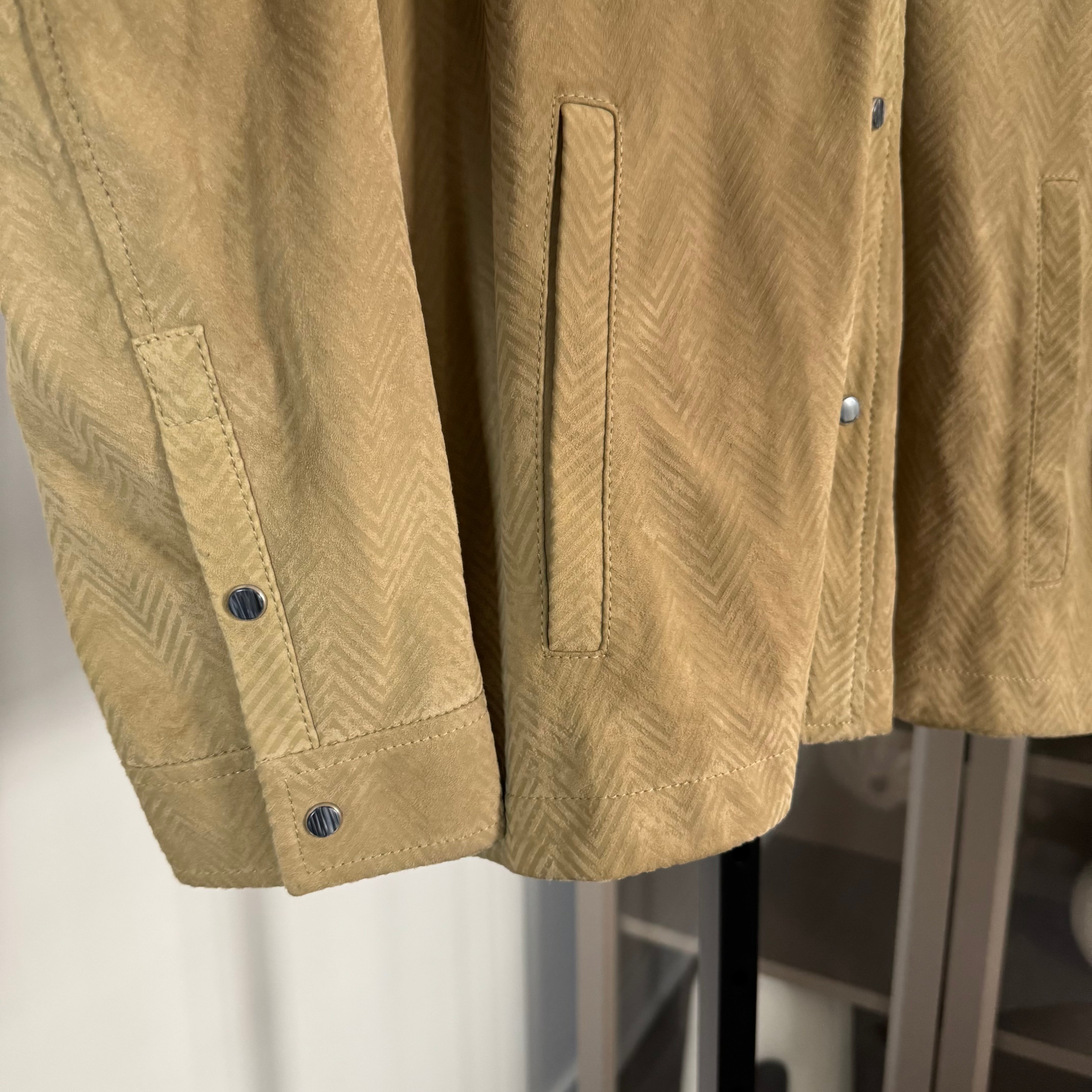 John Varvatos Jonah Goat Suede Chevron Herringbone Tan Shirt Jacket