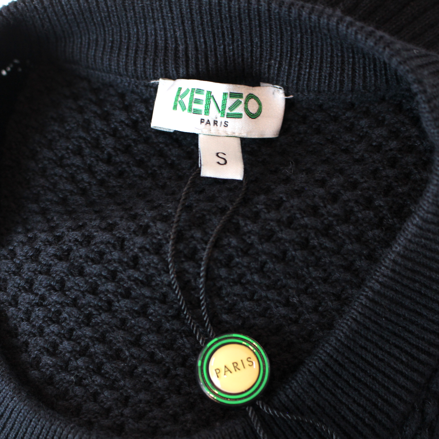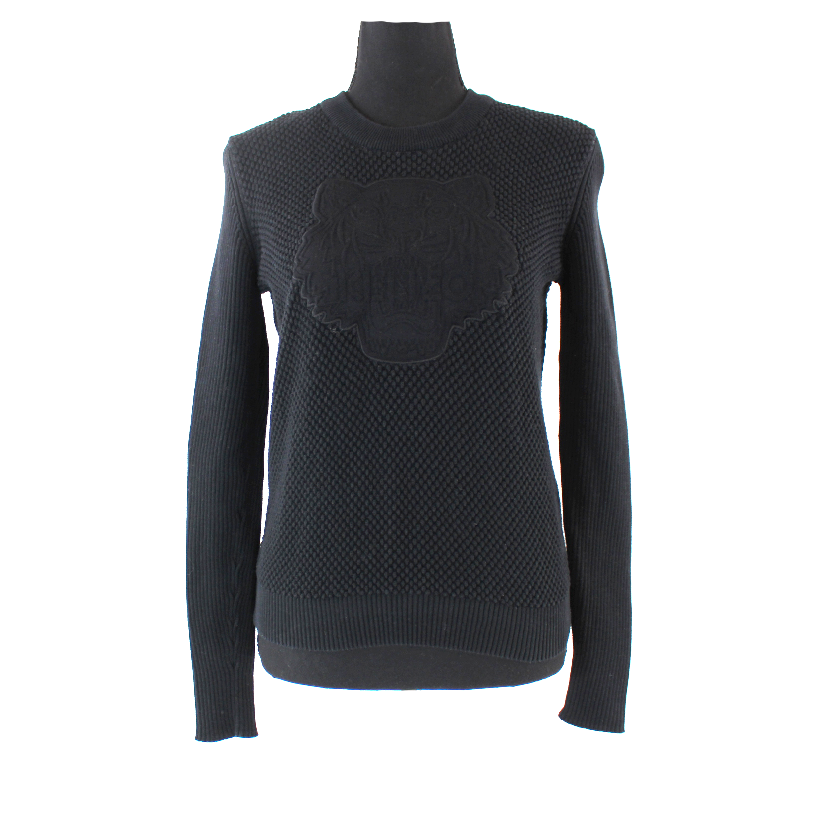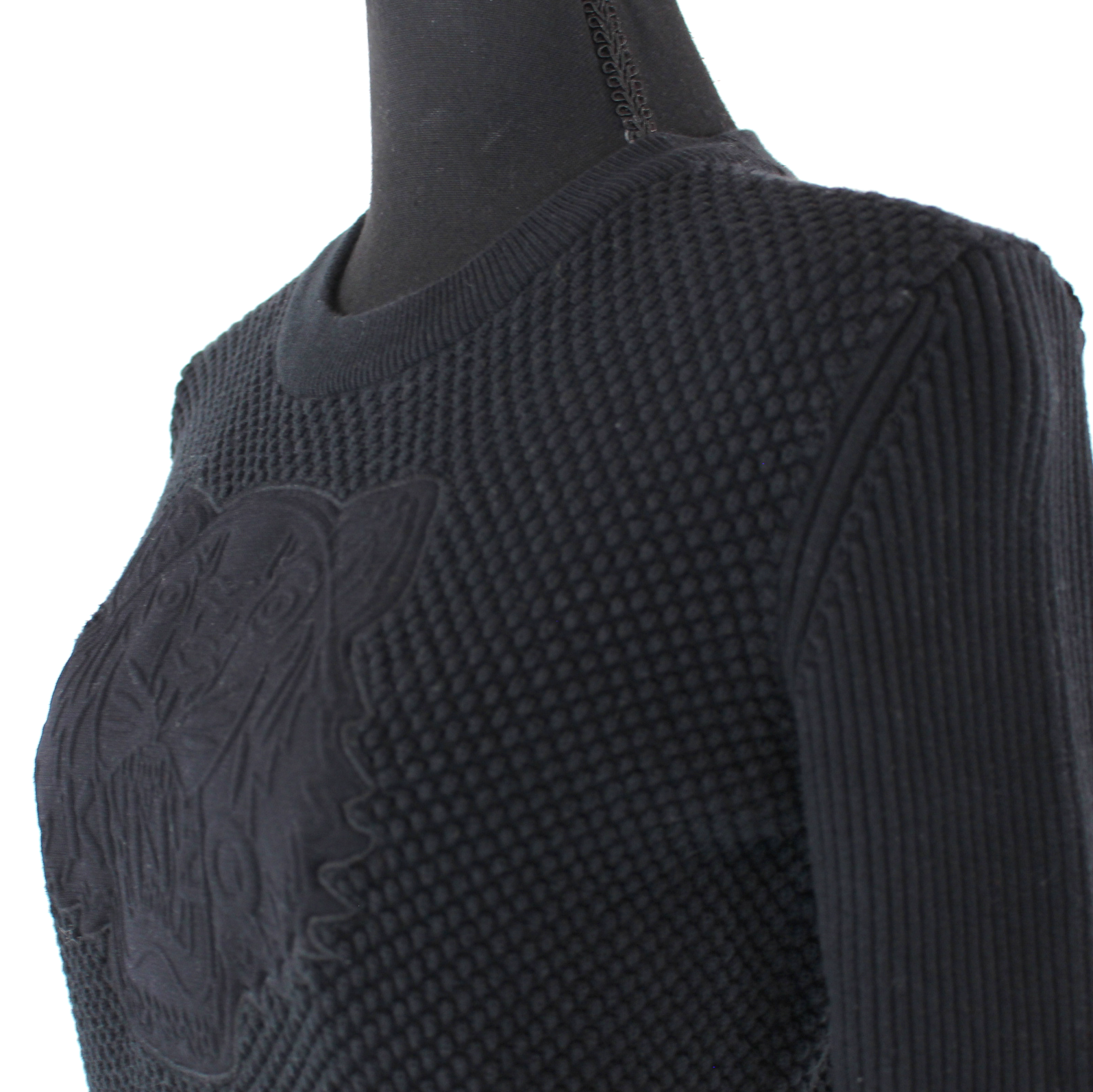 Kenzo Paris Black Textured Tiger Patch Knit Crewneck Sweater