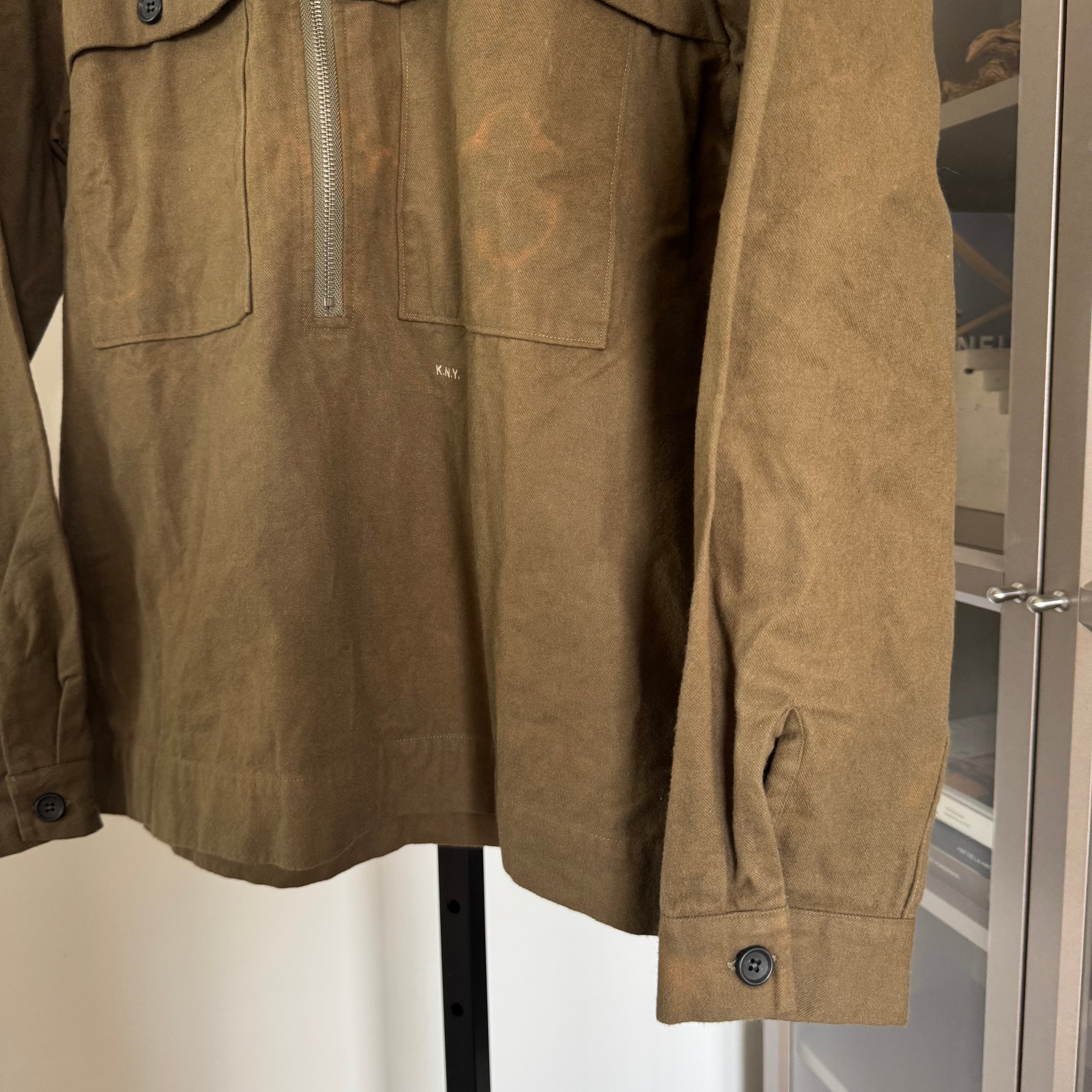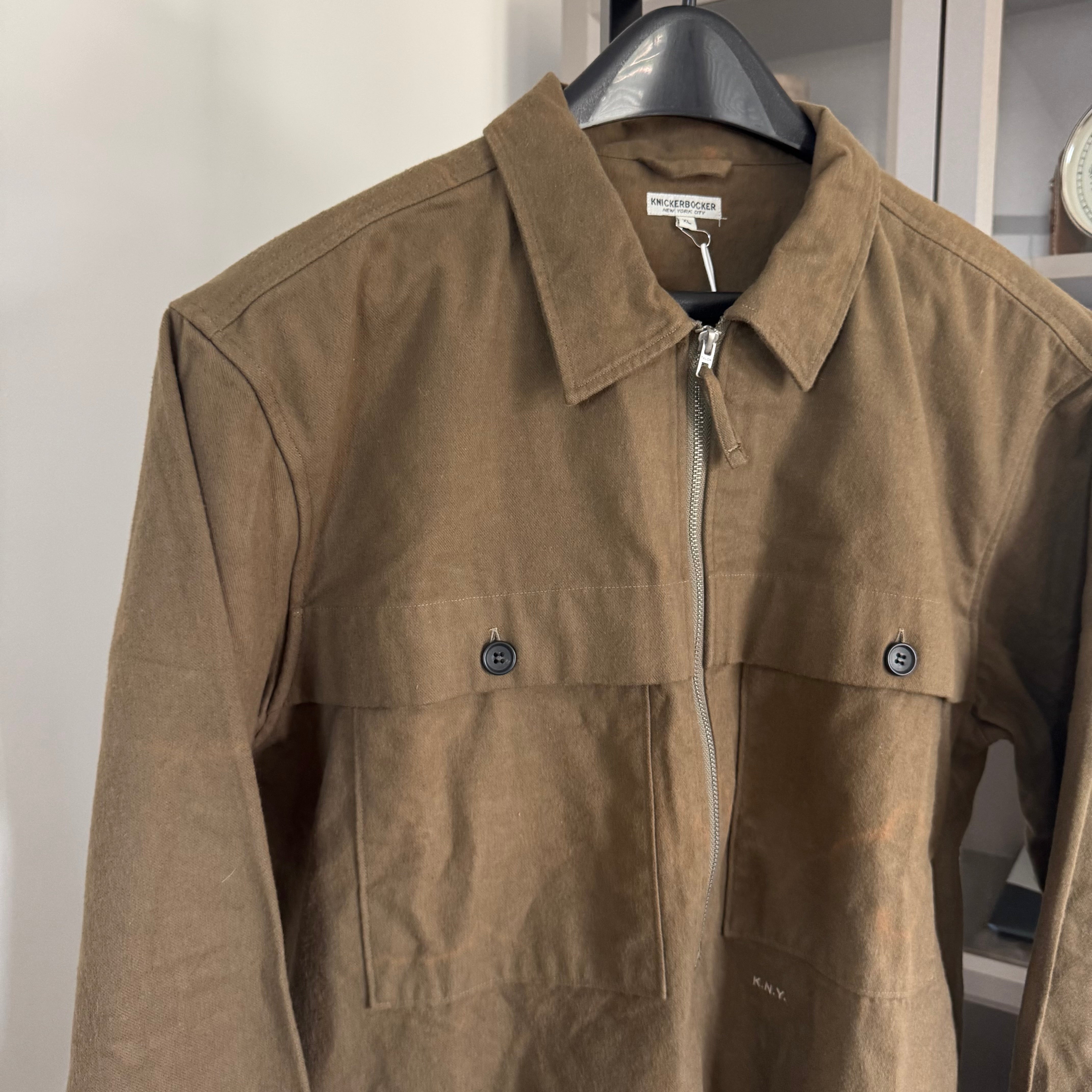 Knickerbocker Patch Pocket Half Zip Military Olive Cotton Pullover Jacket