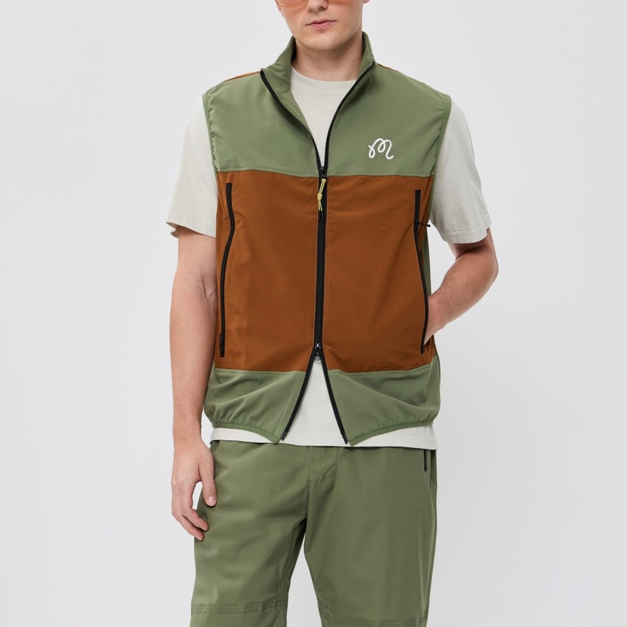 Malbon Golf Albatross Foraging Olive Pecan Zip Up Vest
