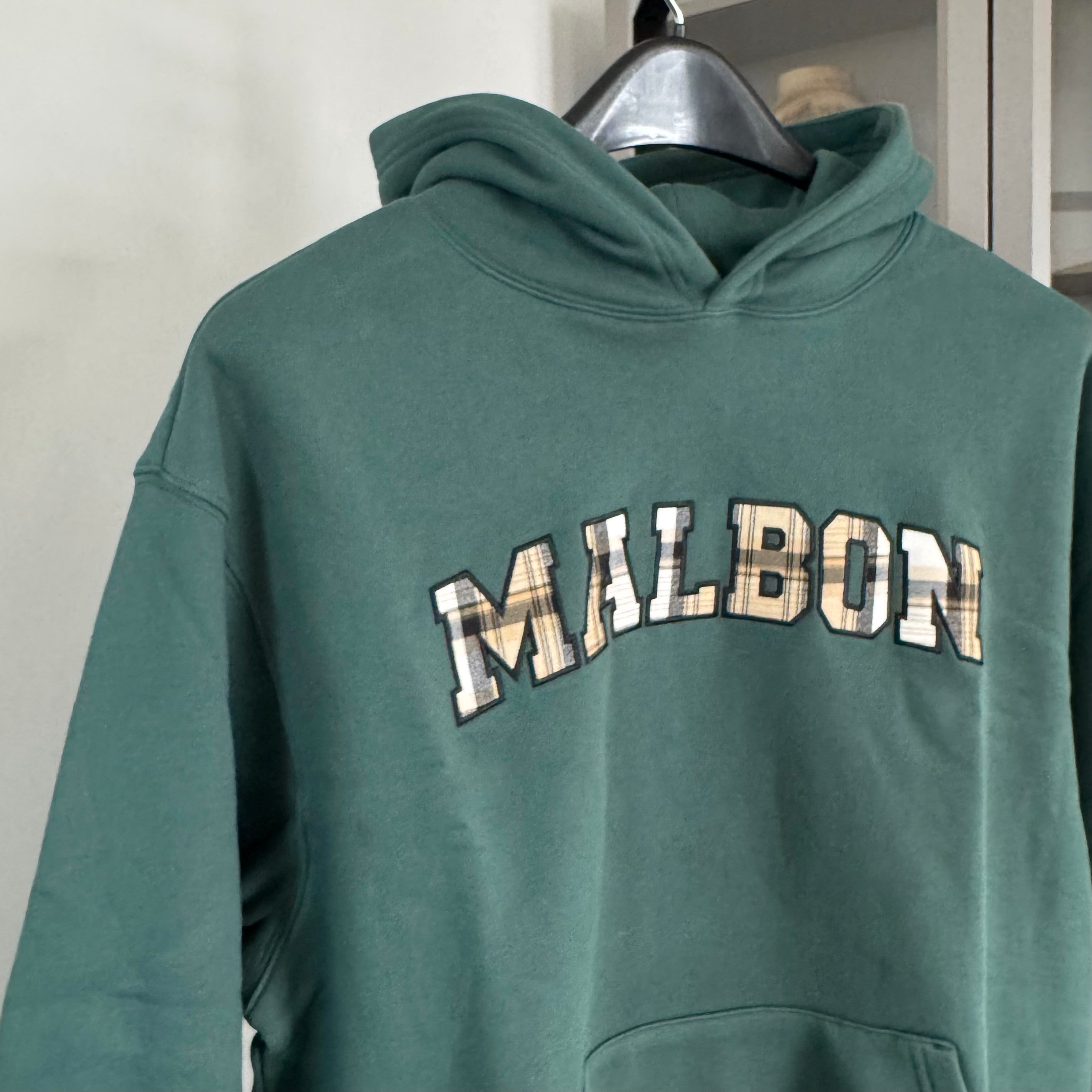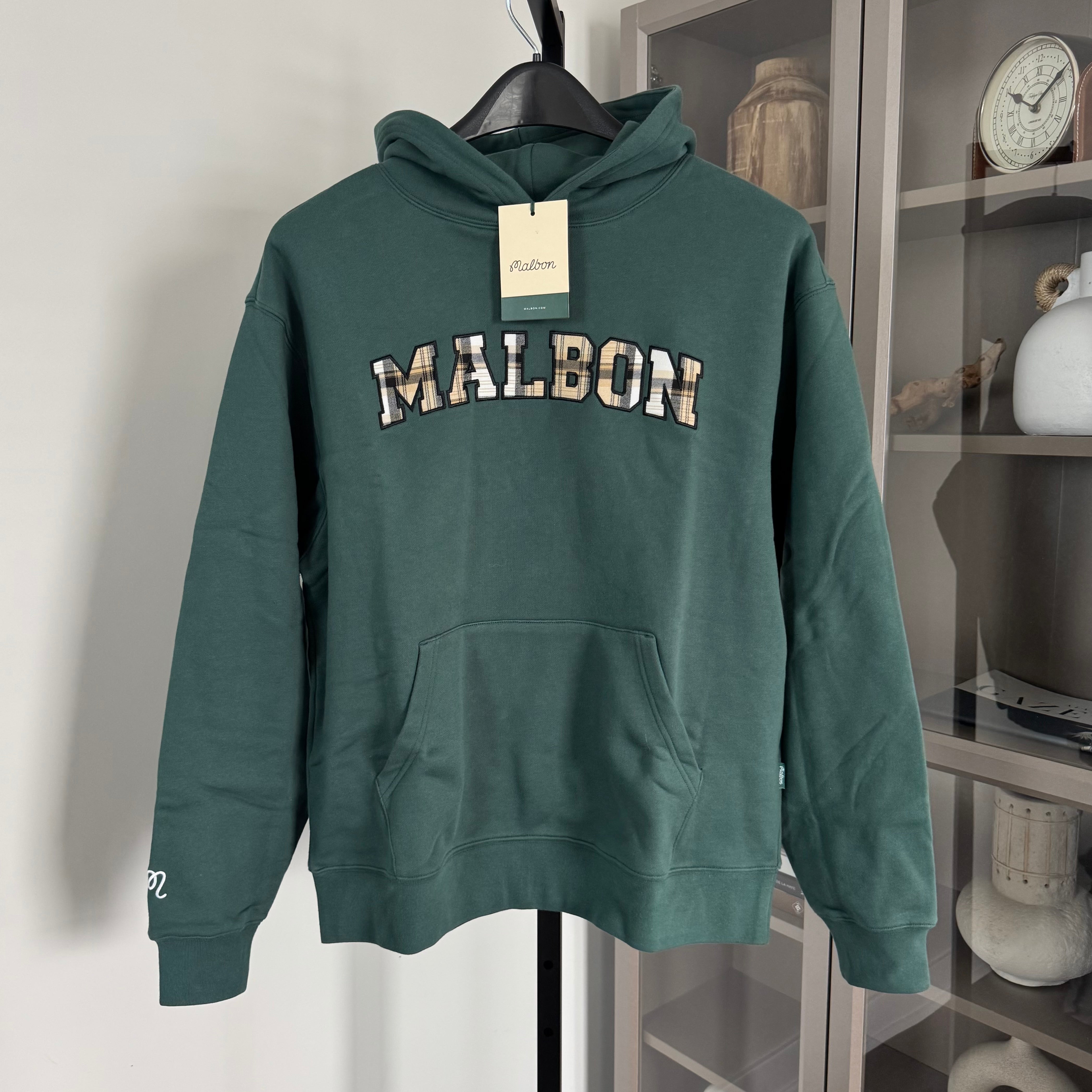 Malbon Fesque Preston Hunter Green Logo Plaid Applique Front Hoodie