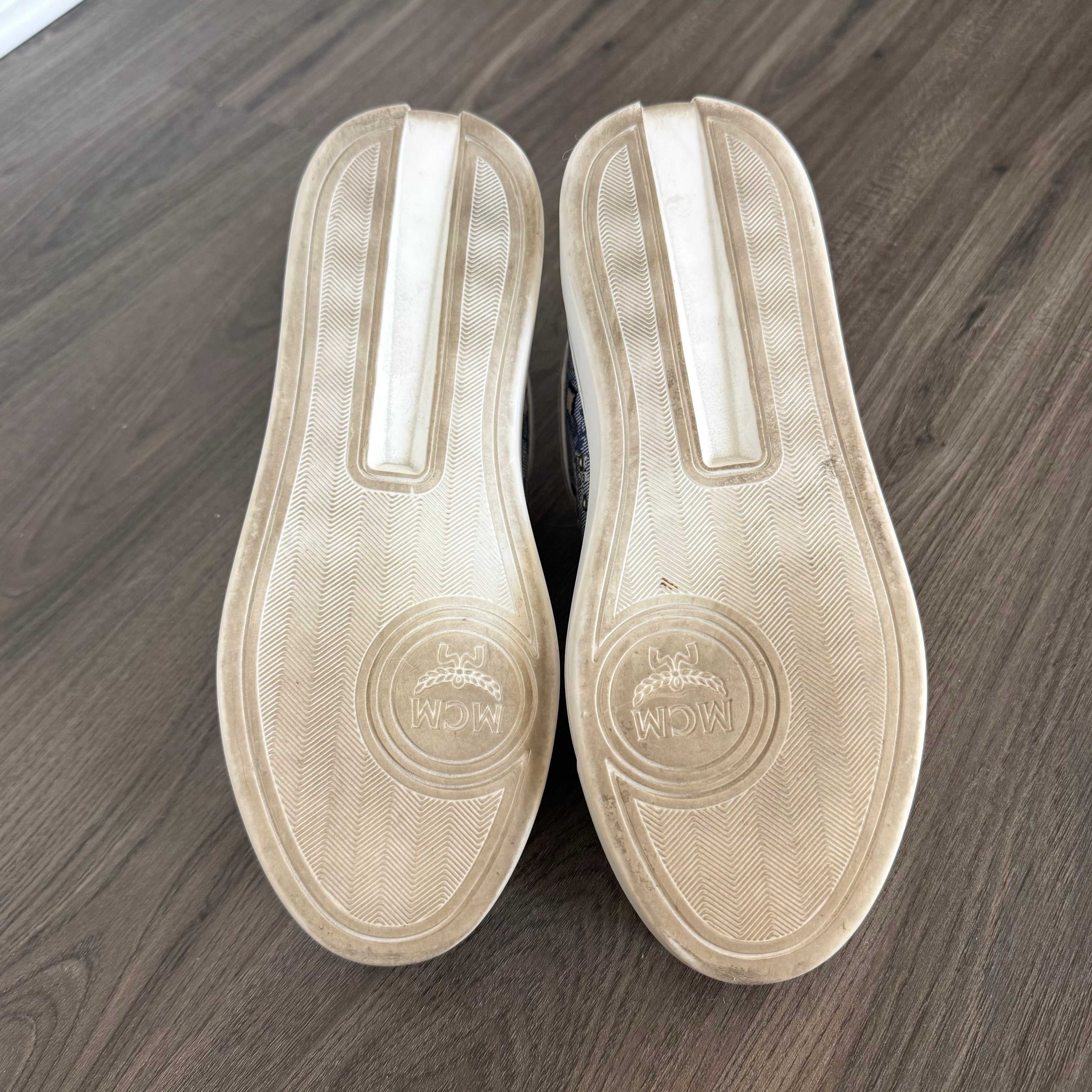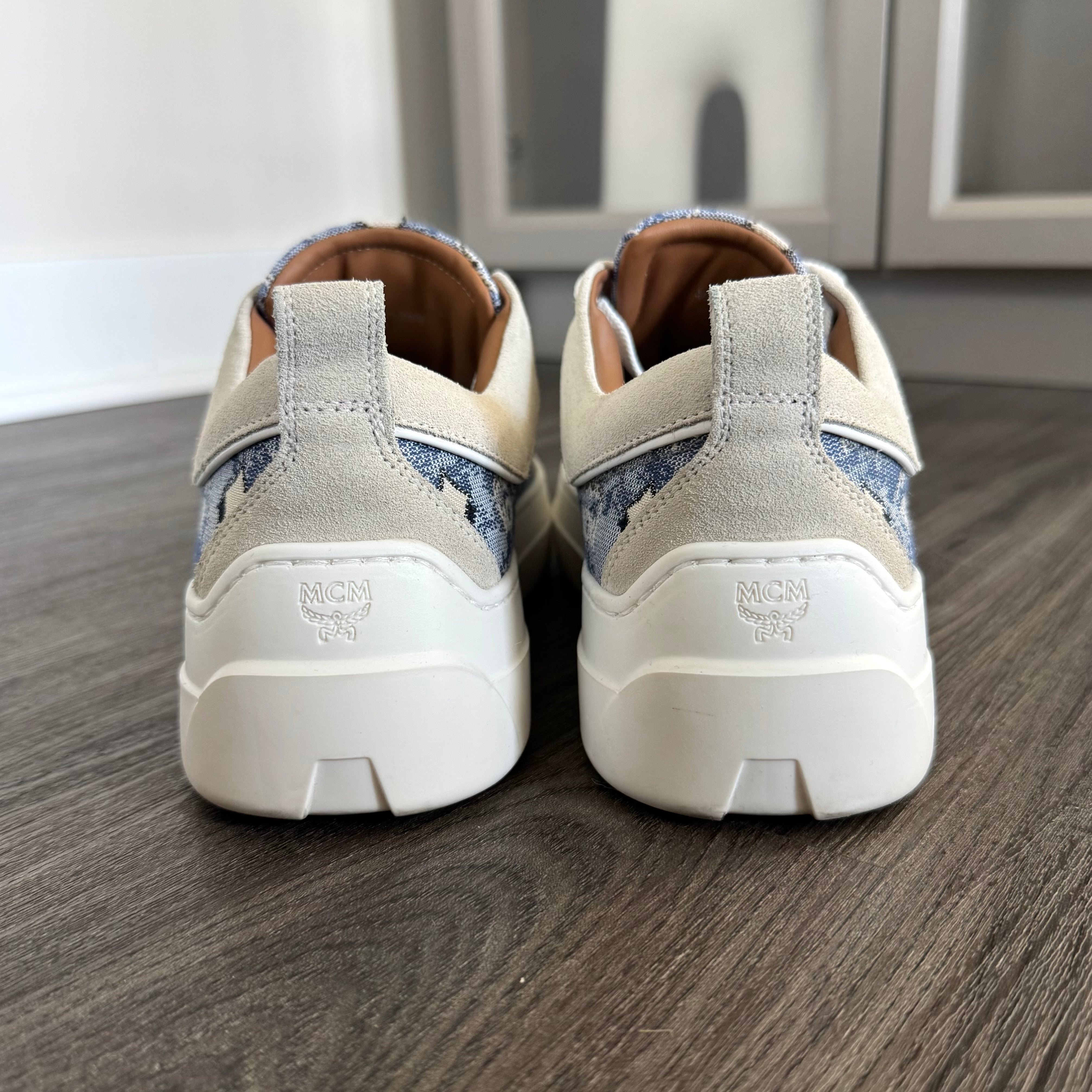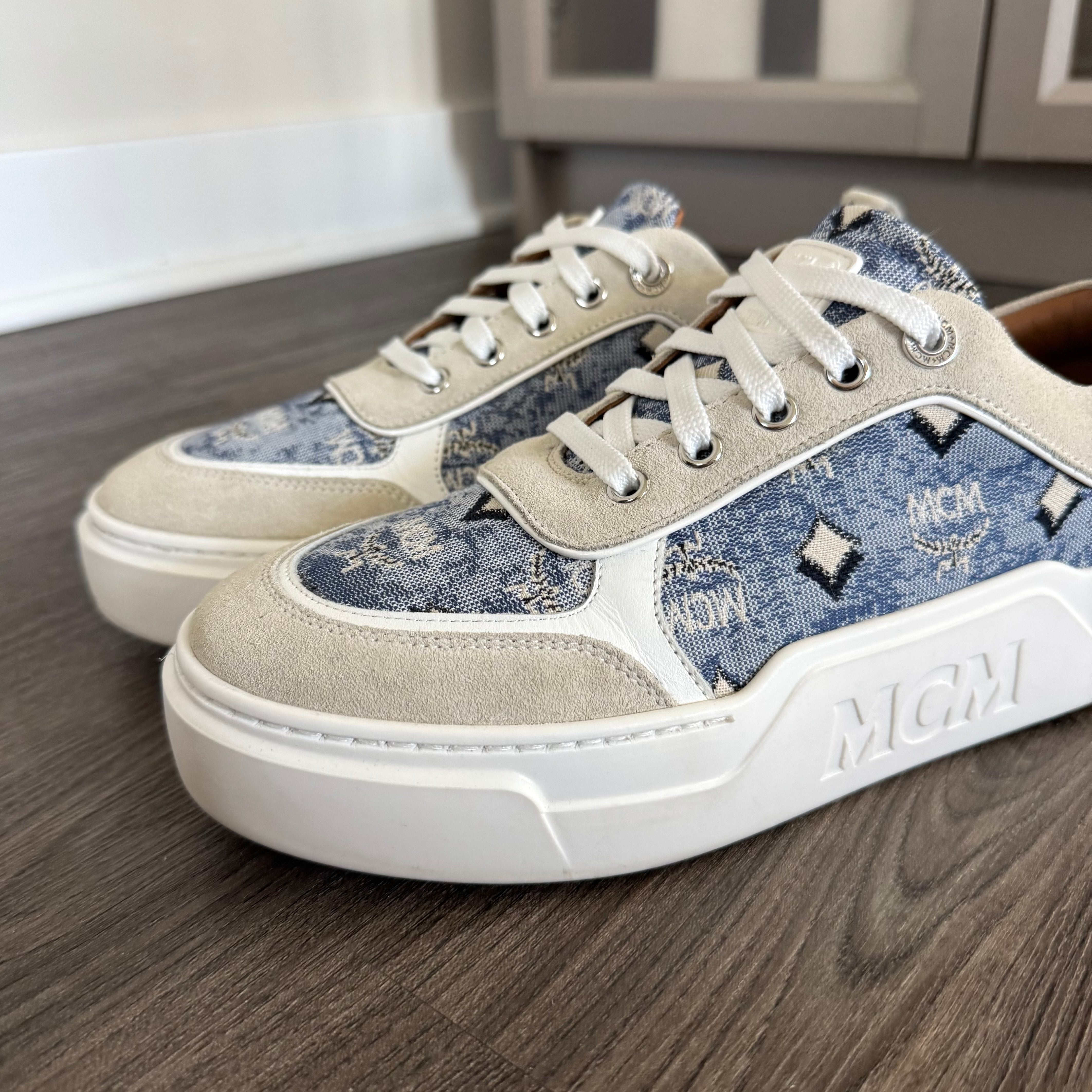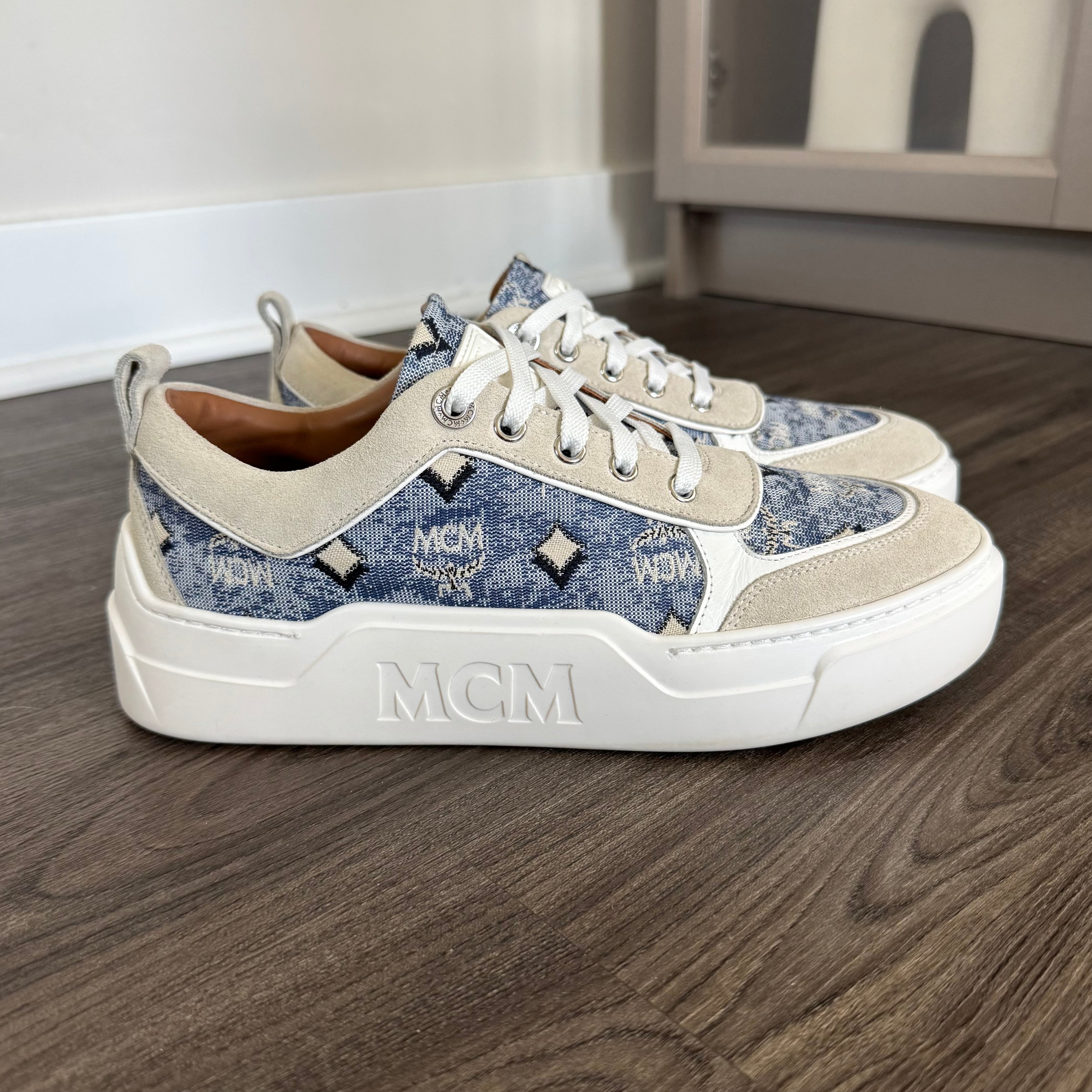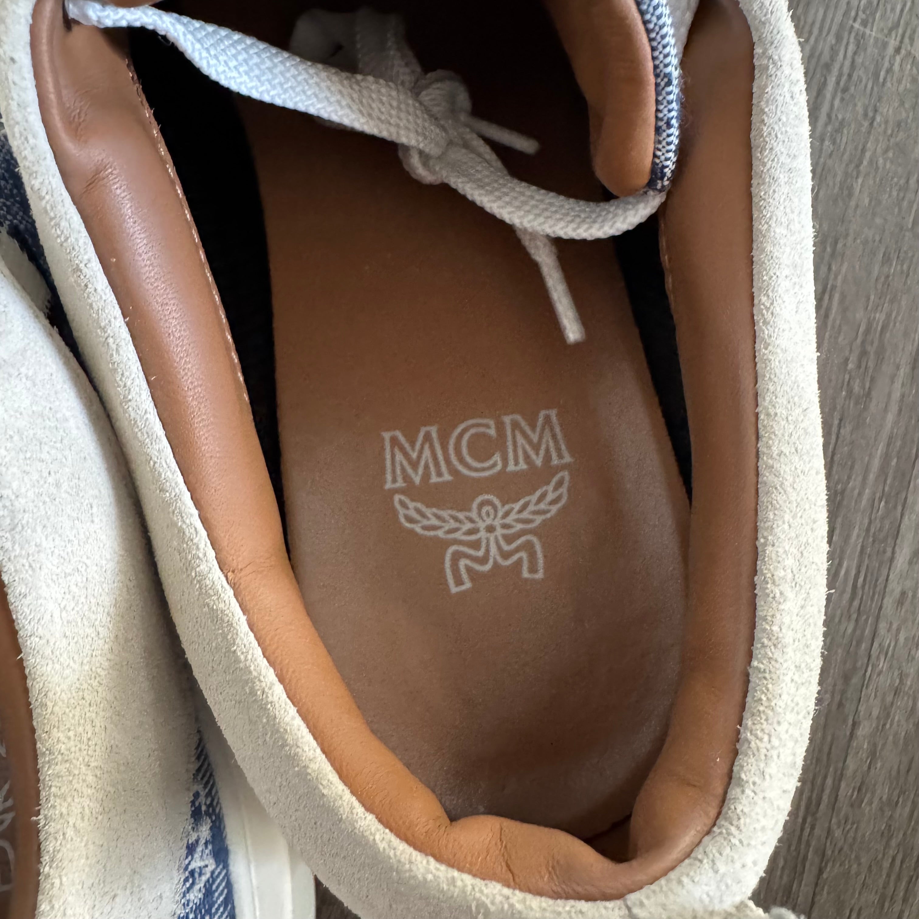 MCM Skyward Platform Vintage Blue Denim Jacquard Nappa Leather Sneakers