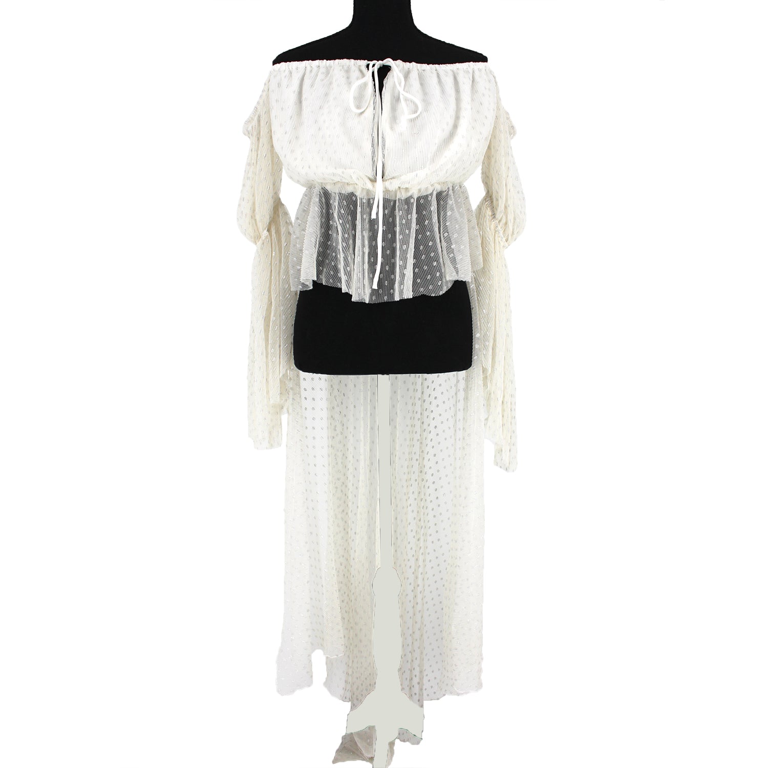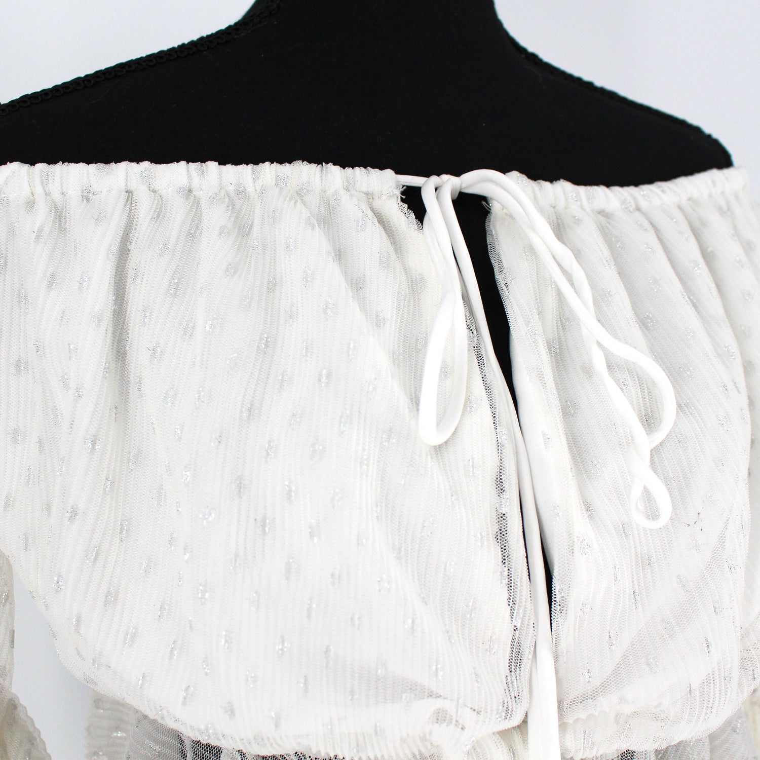 - Pleated mesh fabric with lurex detail.