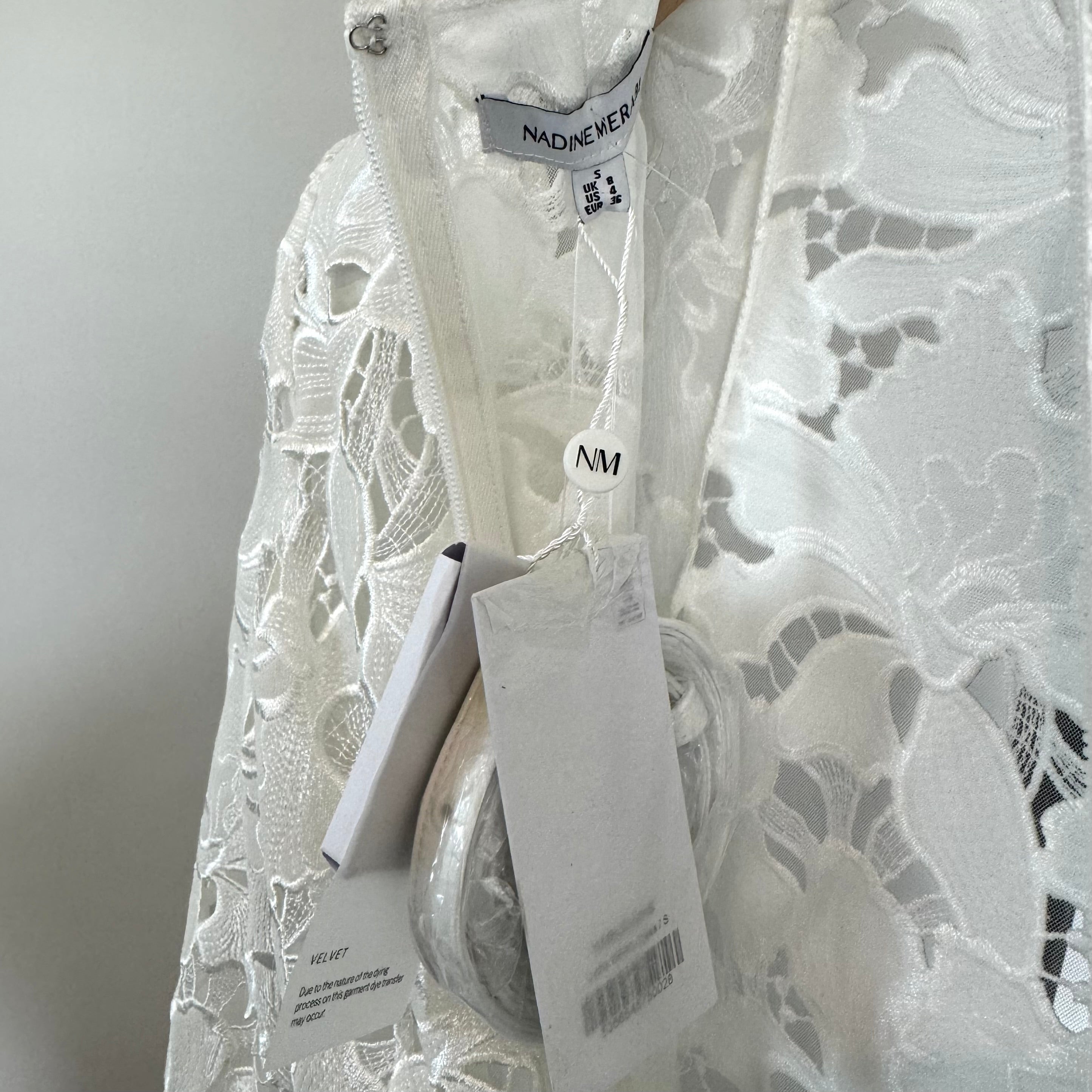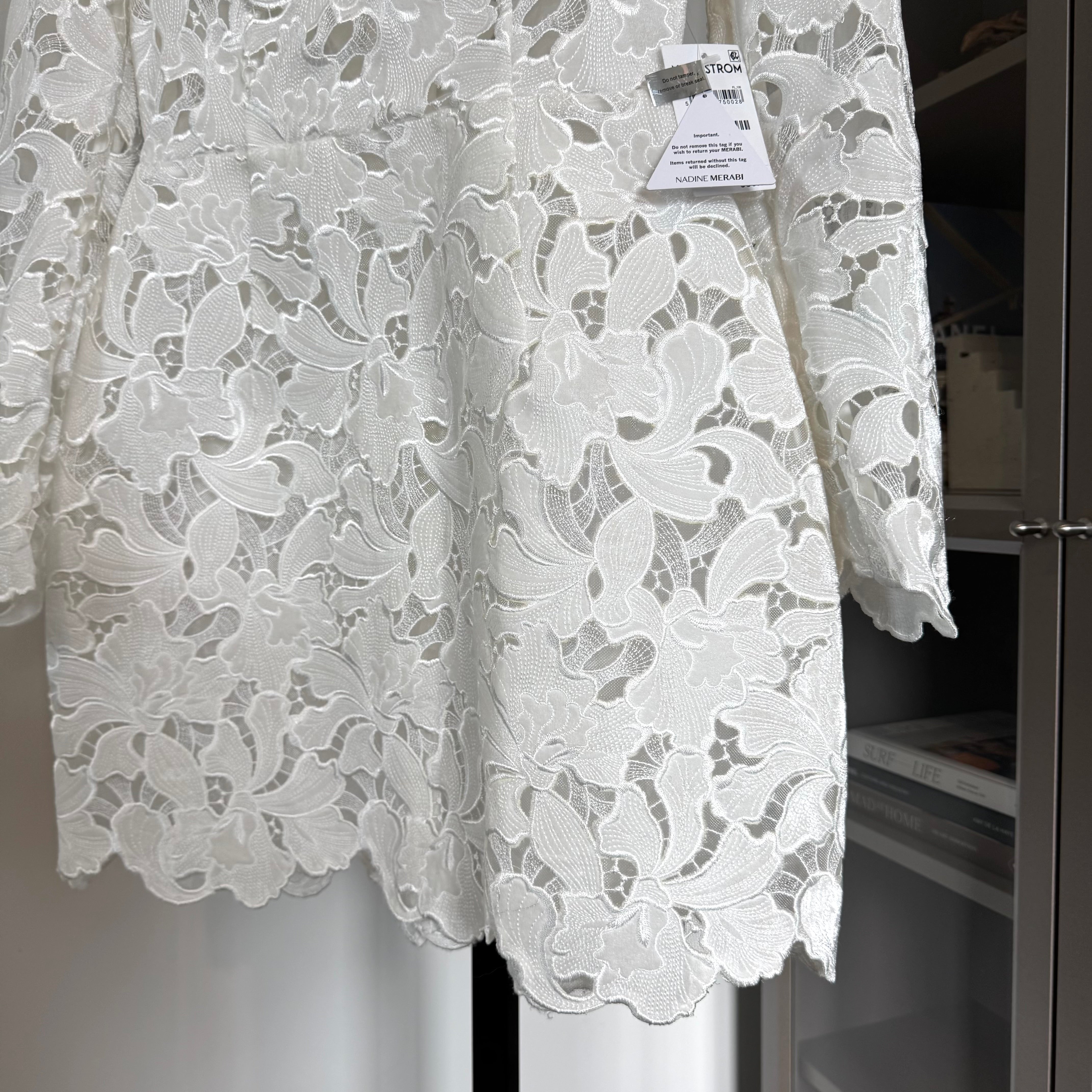 Nadine Merabi Lydia White Lace Long Sleeve Cocktail Mini Dress