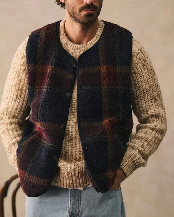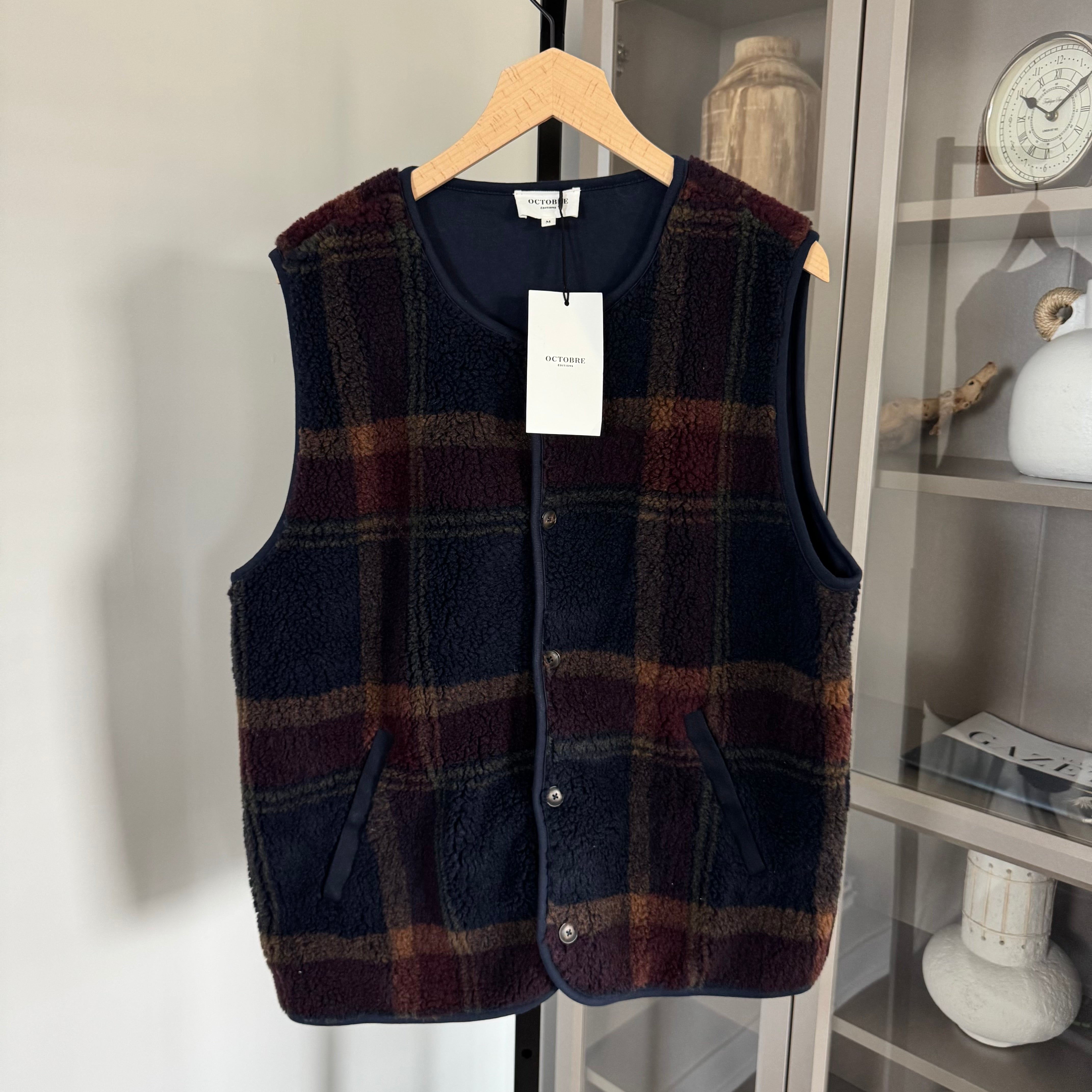 Octobre Doran Tartan Marine Bordeaux Plaid Fleece Vest