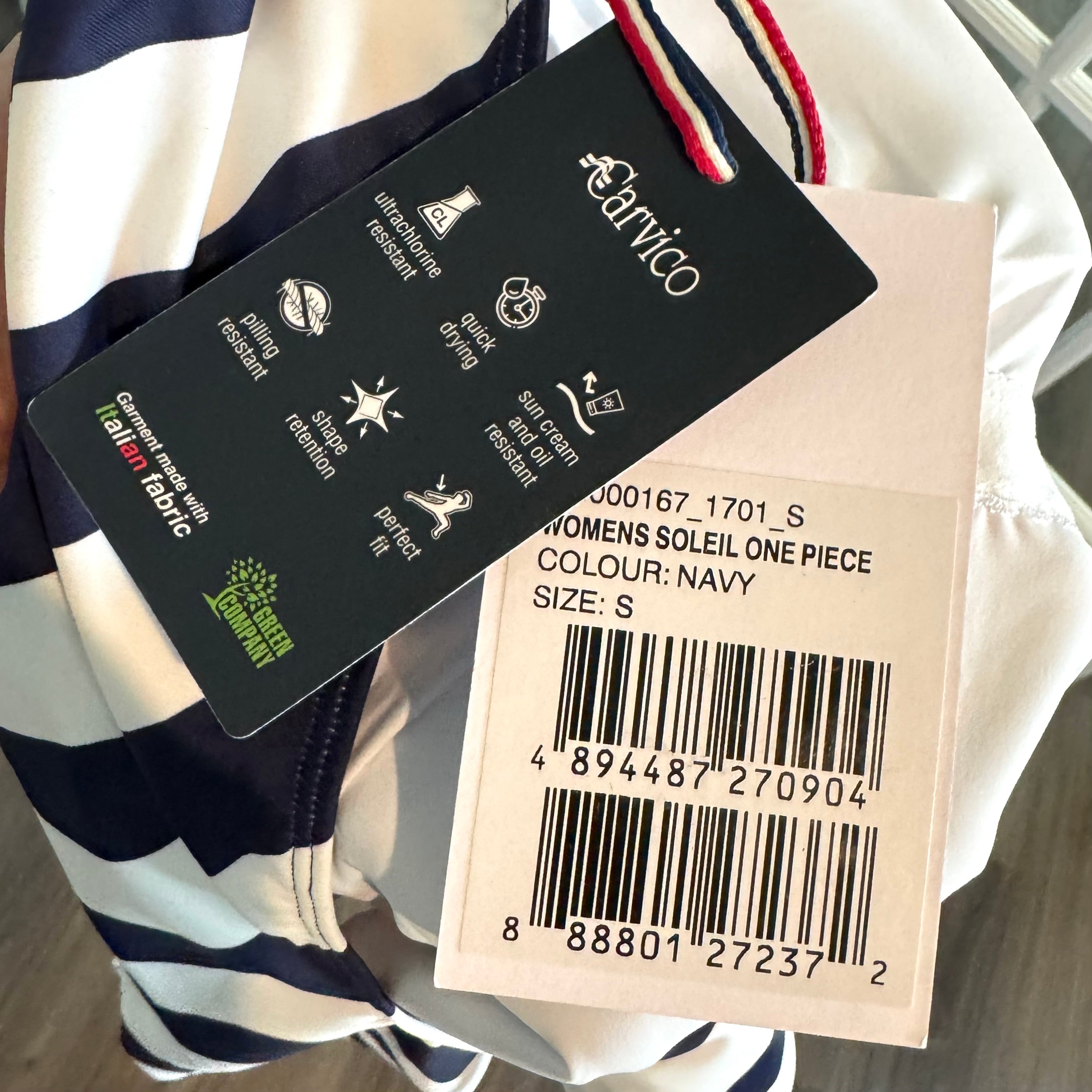 Perfect Moment Soleil Navy Blue Snow White Chevron Red Detail One Piece Swimsuit