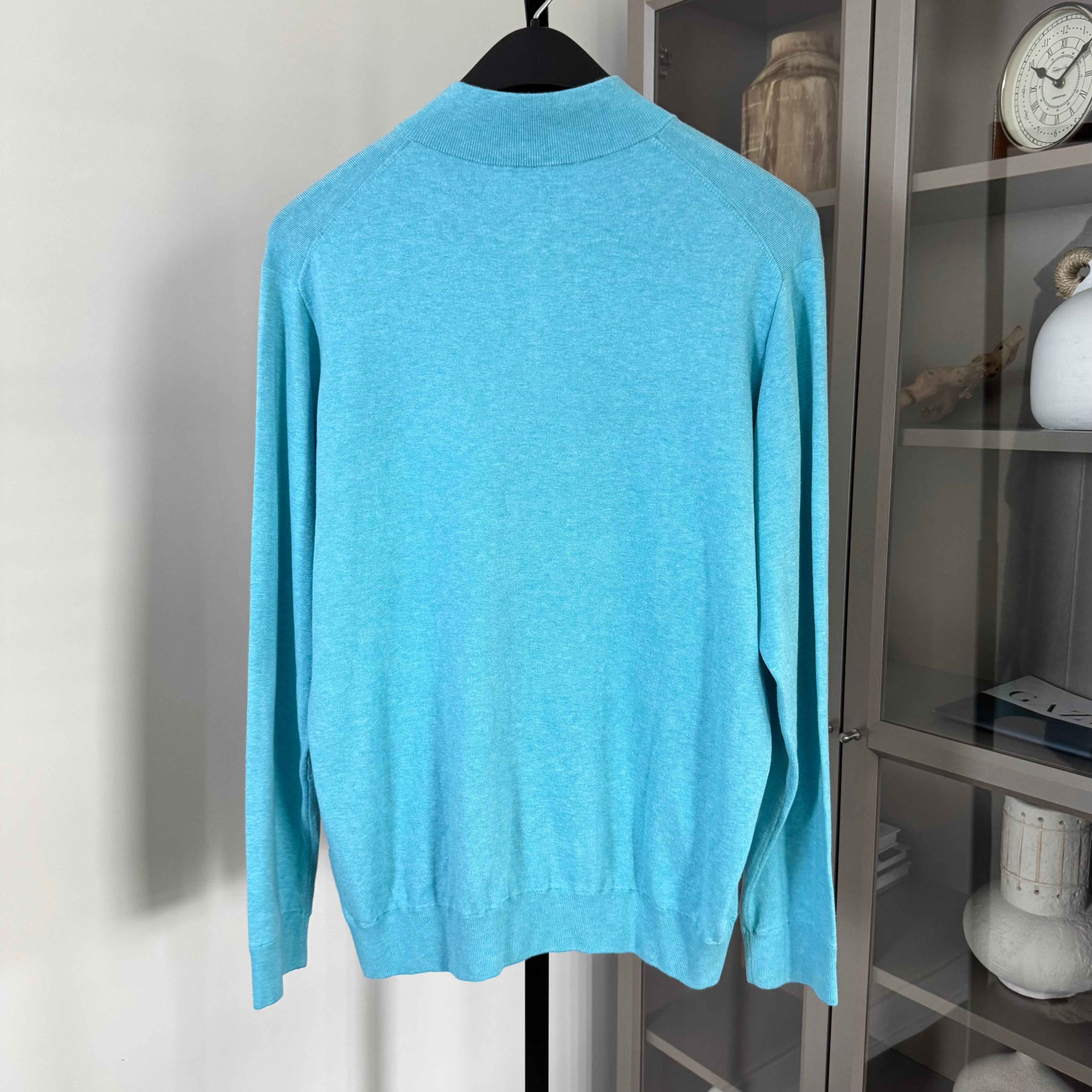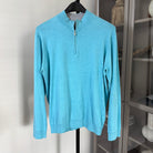 Peter Millar Radiant Blue Cotton Silk Blend Crest Quarter Zip Sweater