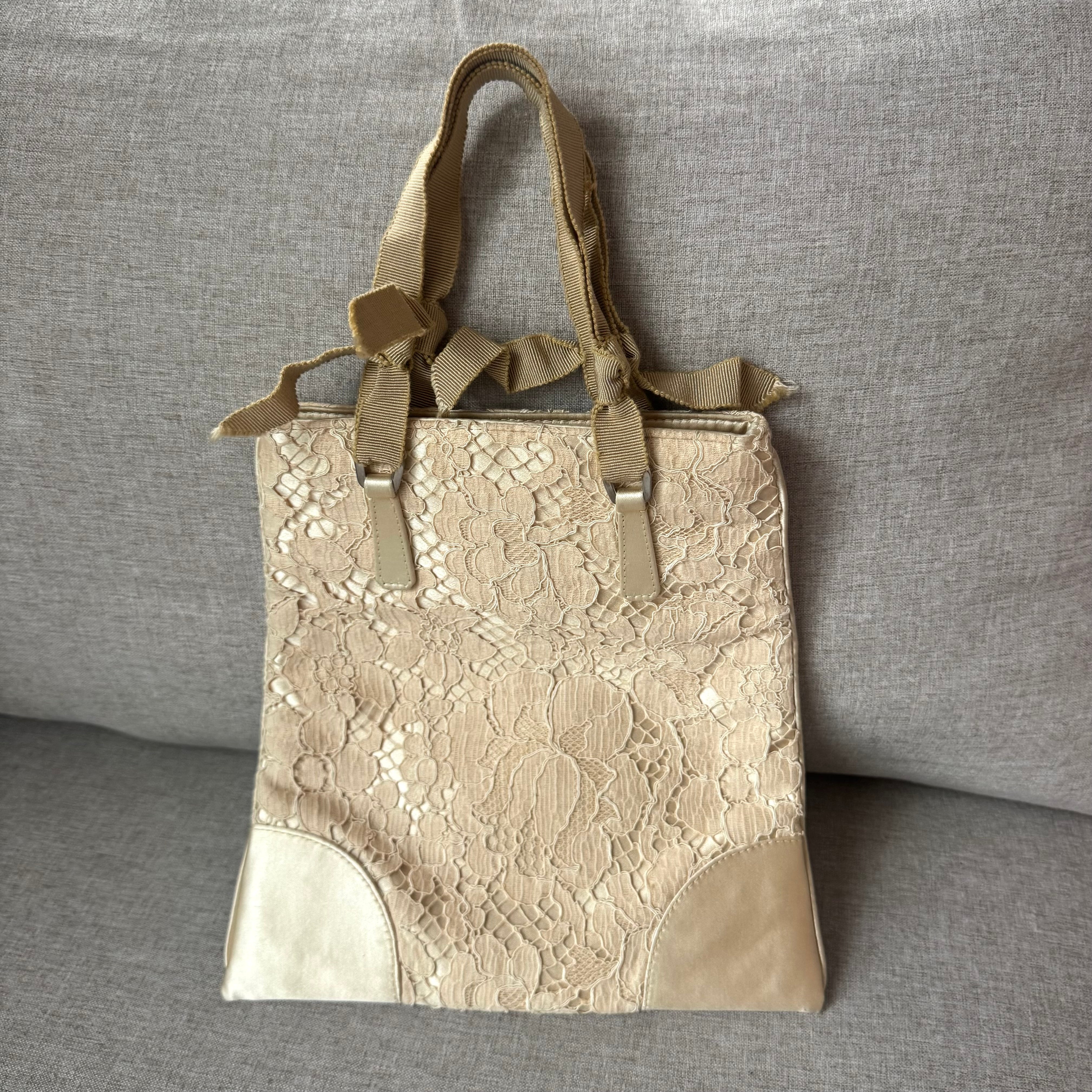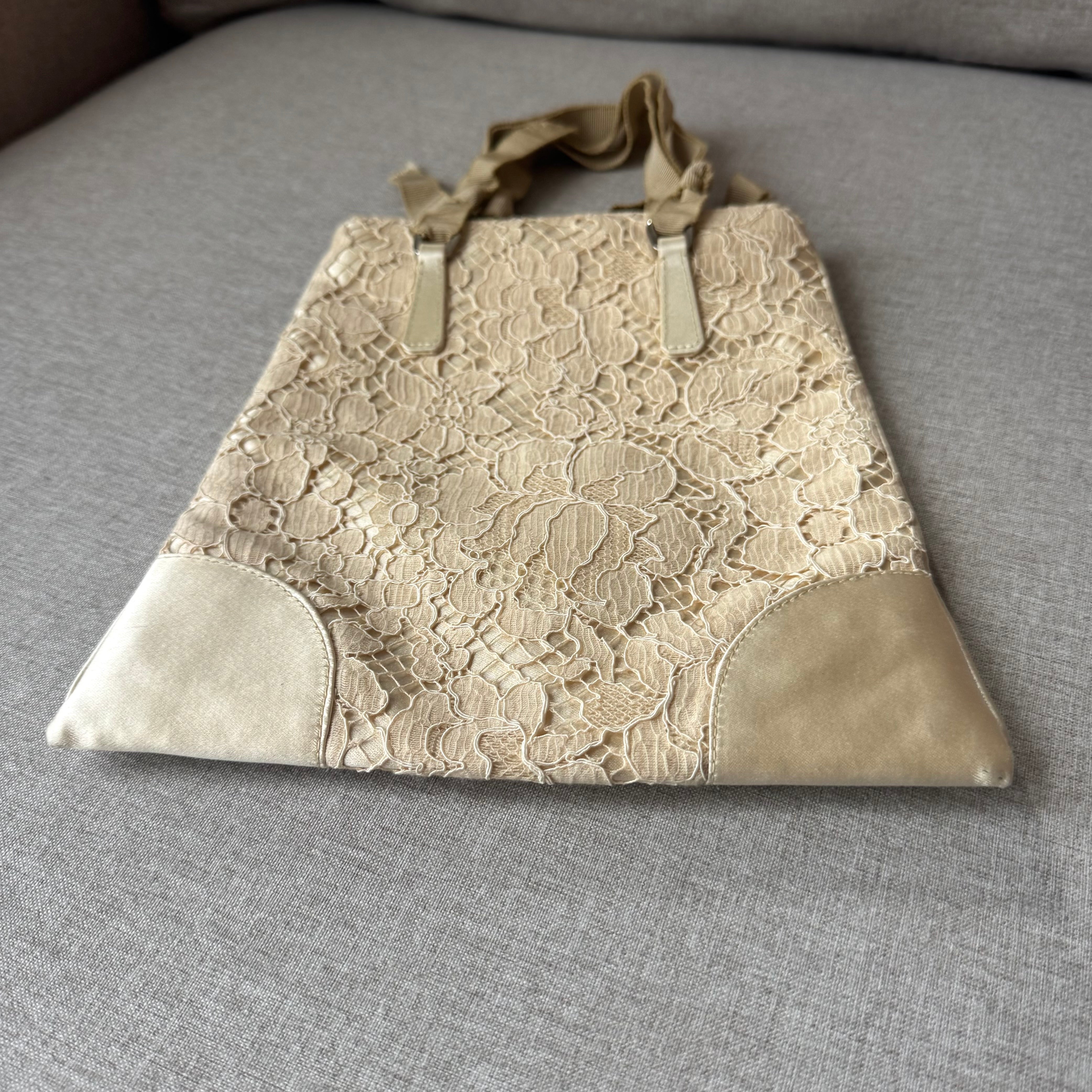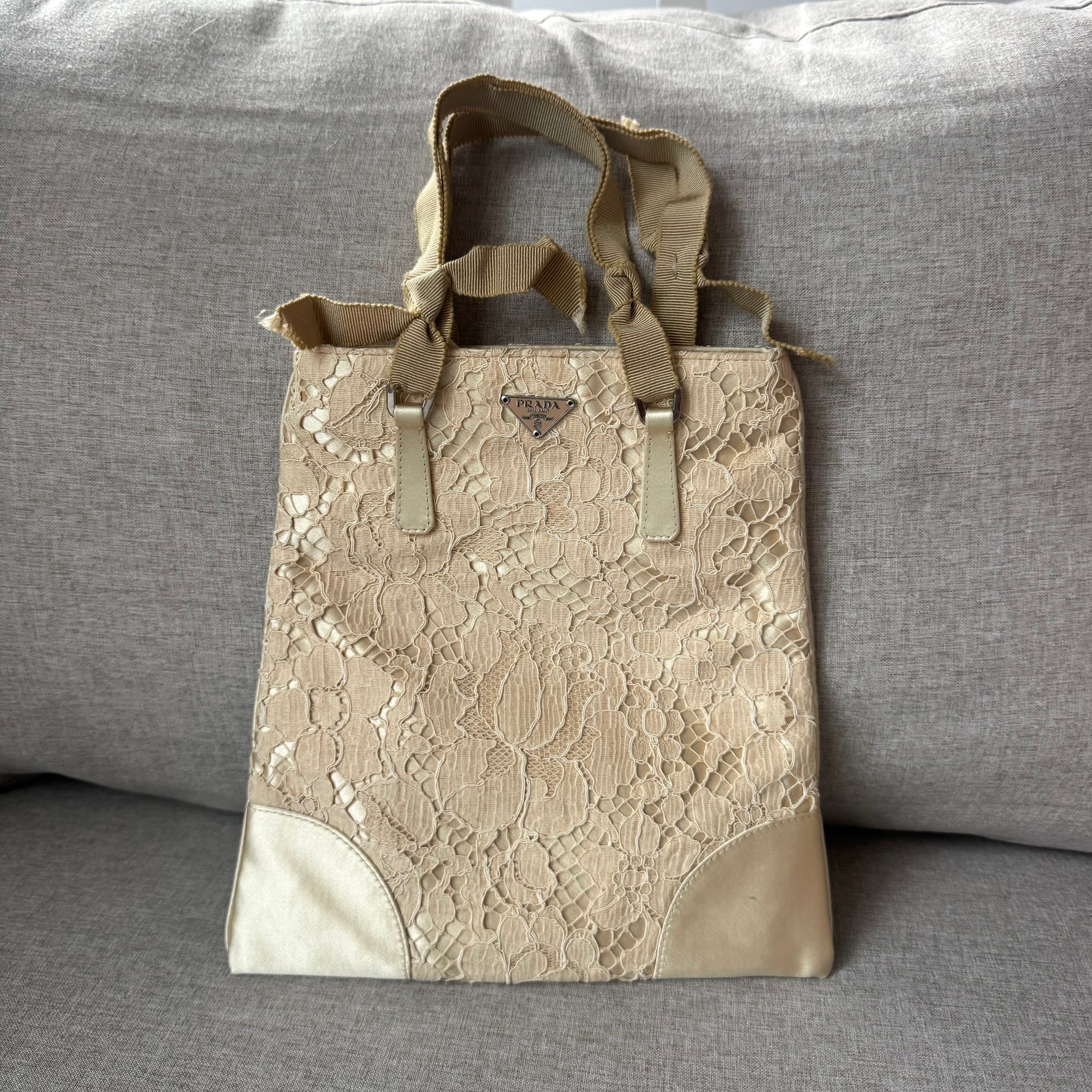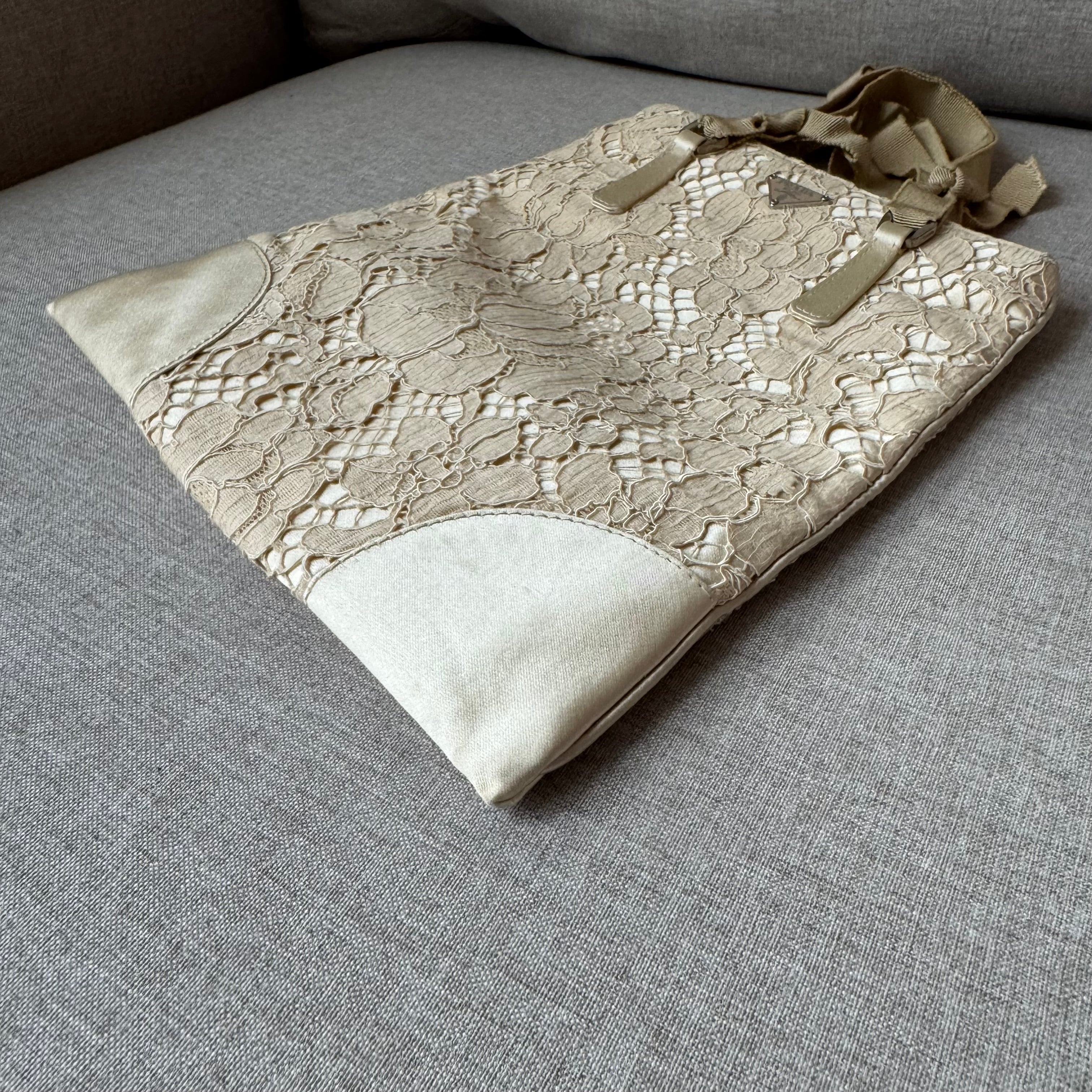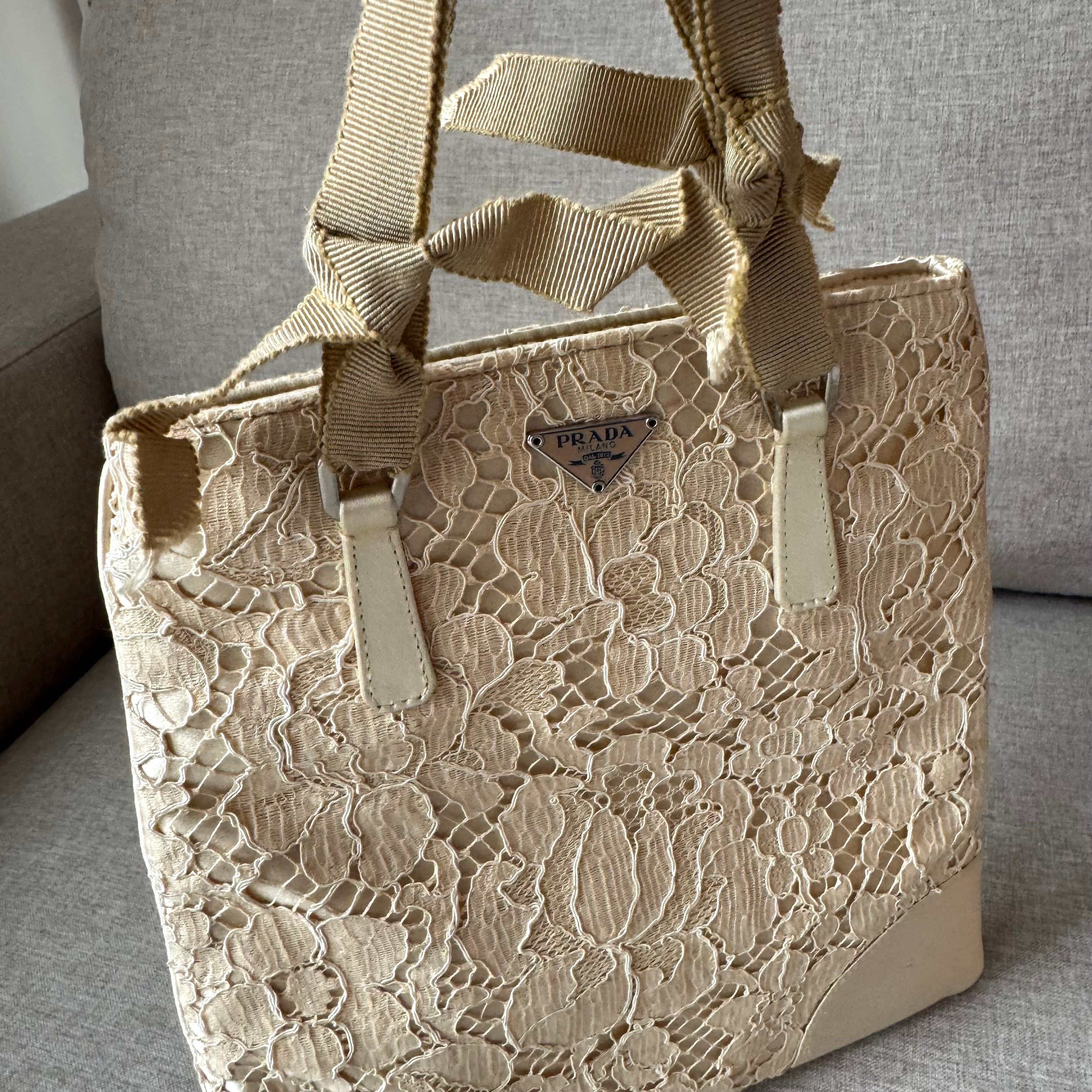 Prada Cleo Floral Lace Silk Beige Mini Bag