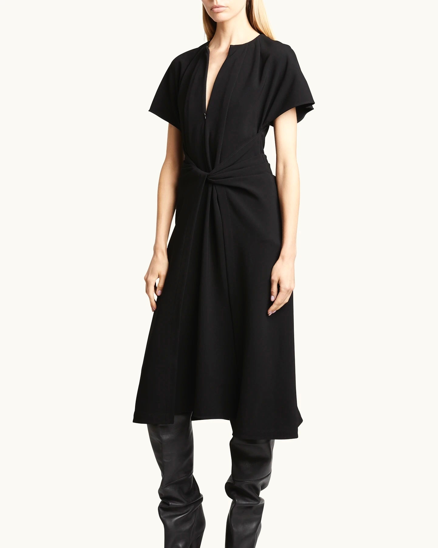 Proenza Schouler Black Julie Twist Front Matte Viscose Crepe Dress