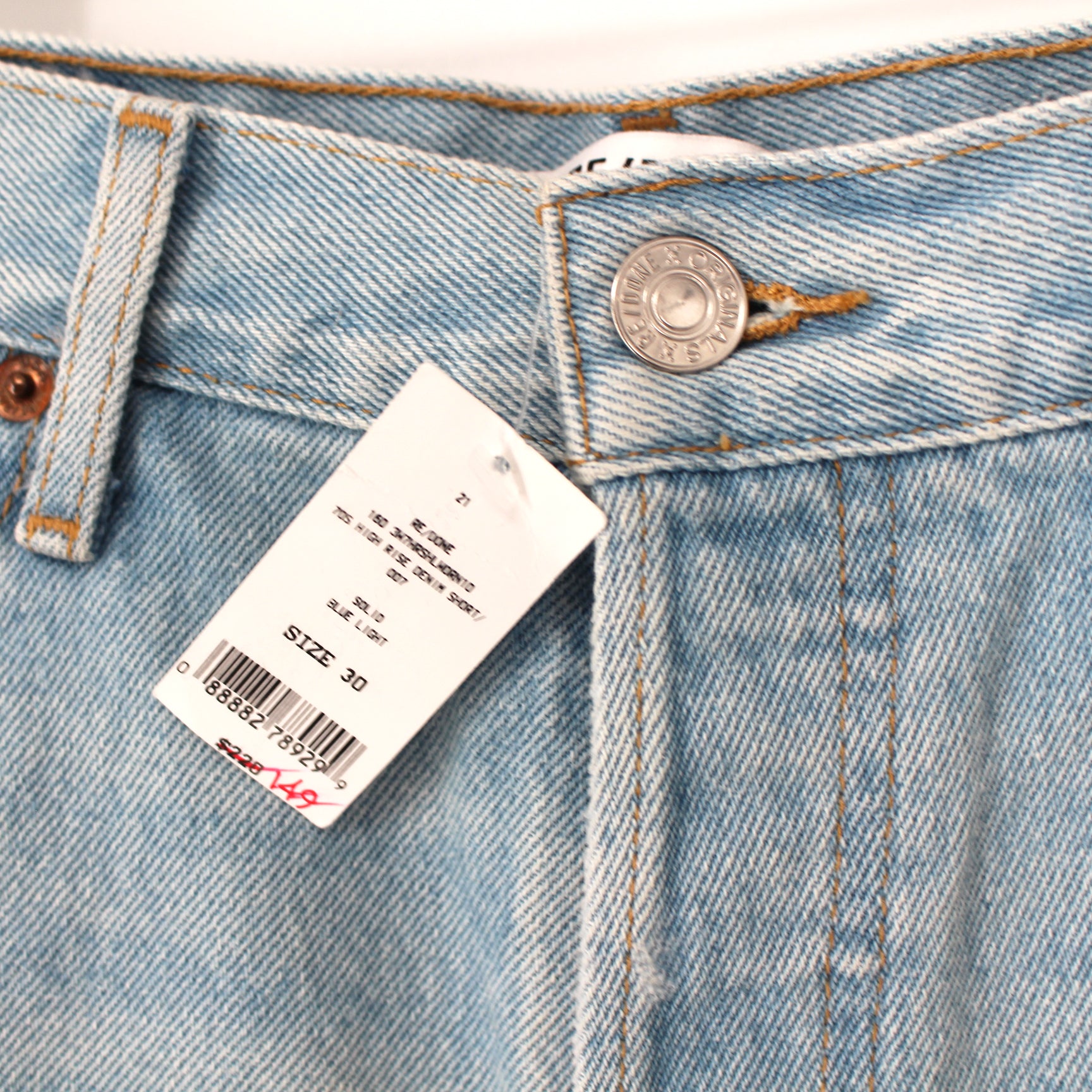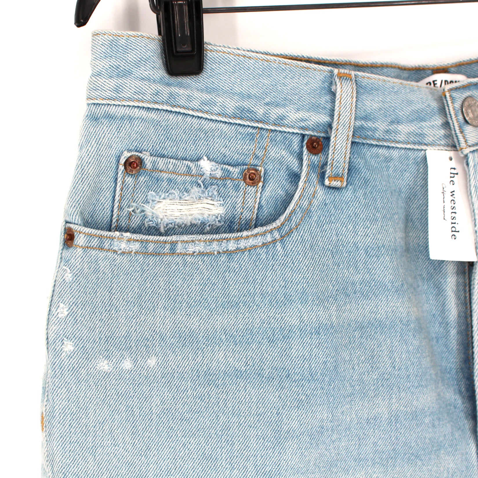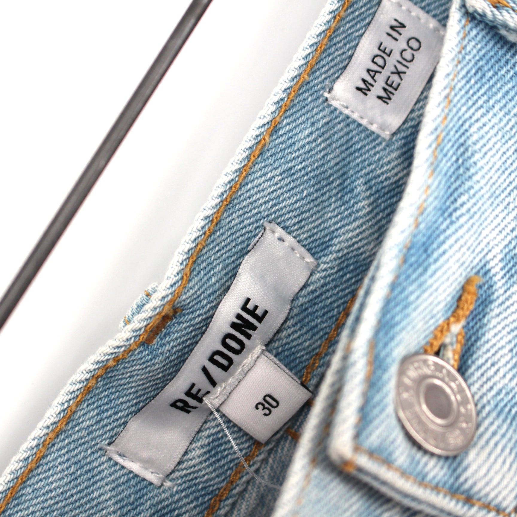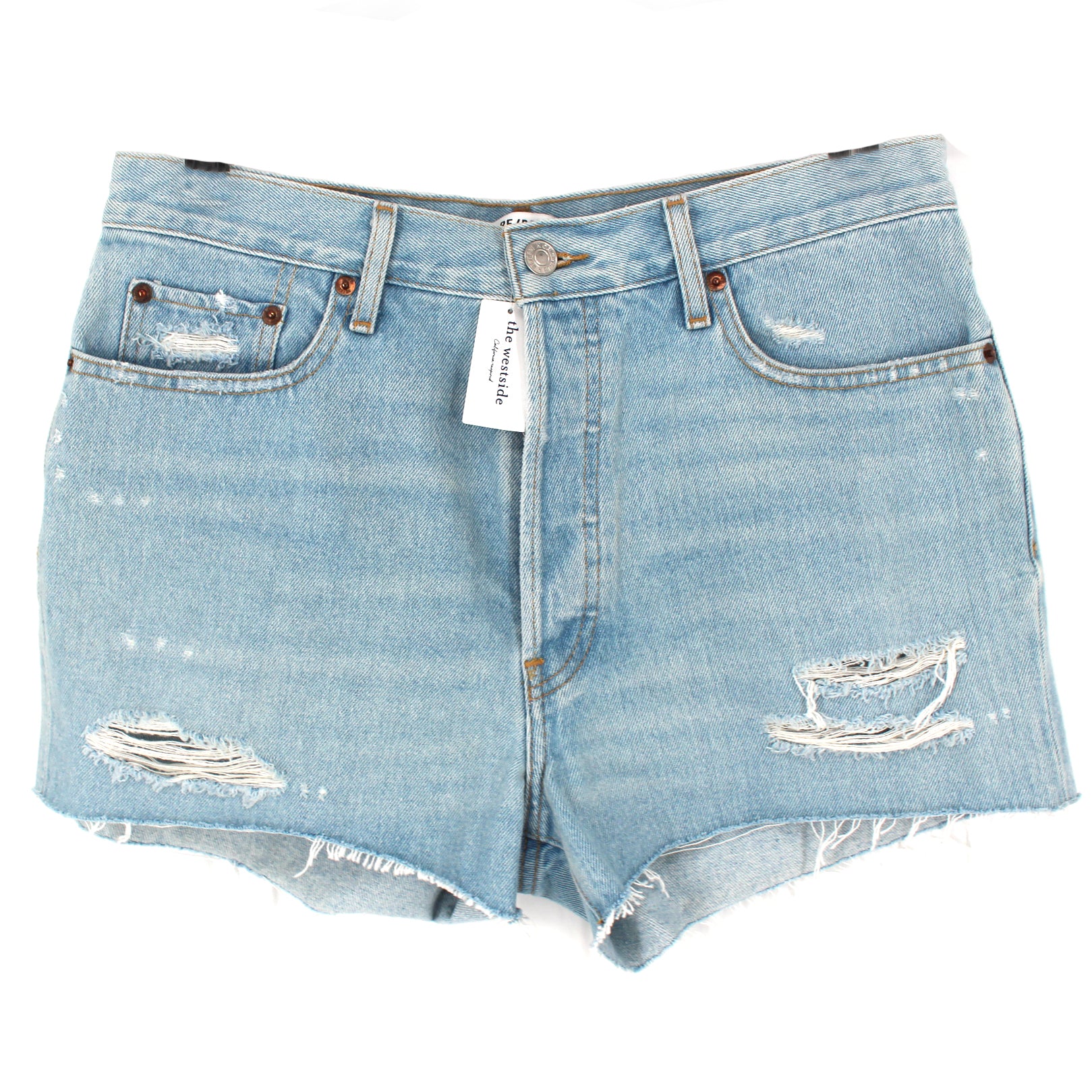 Re/Done 70s High Rise Sim Distressed Rigid Light Denim Shorts.
