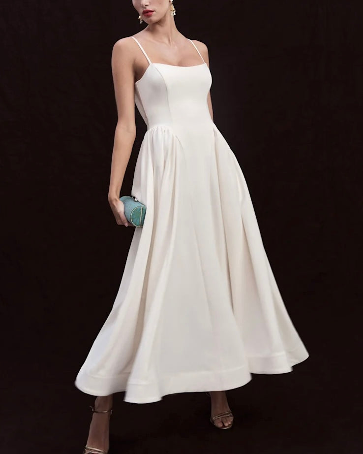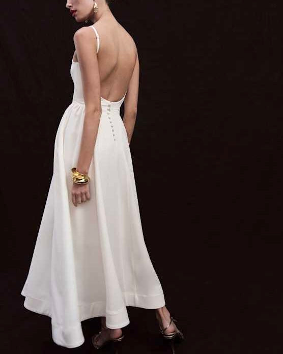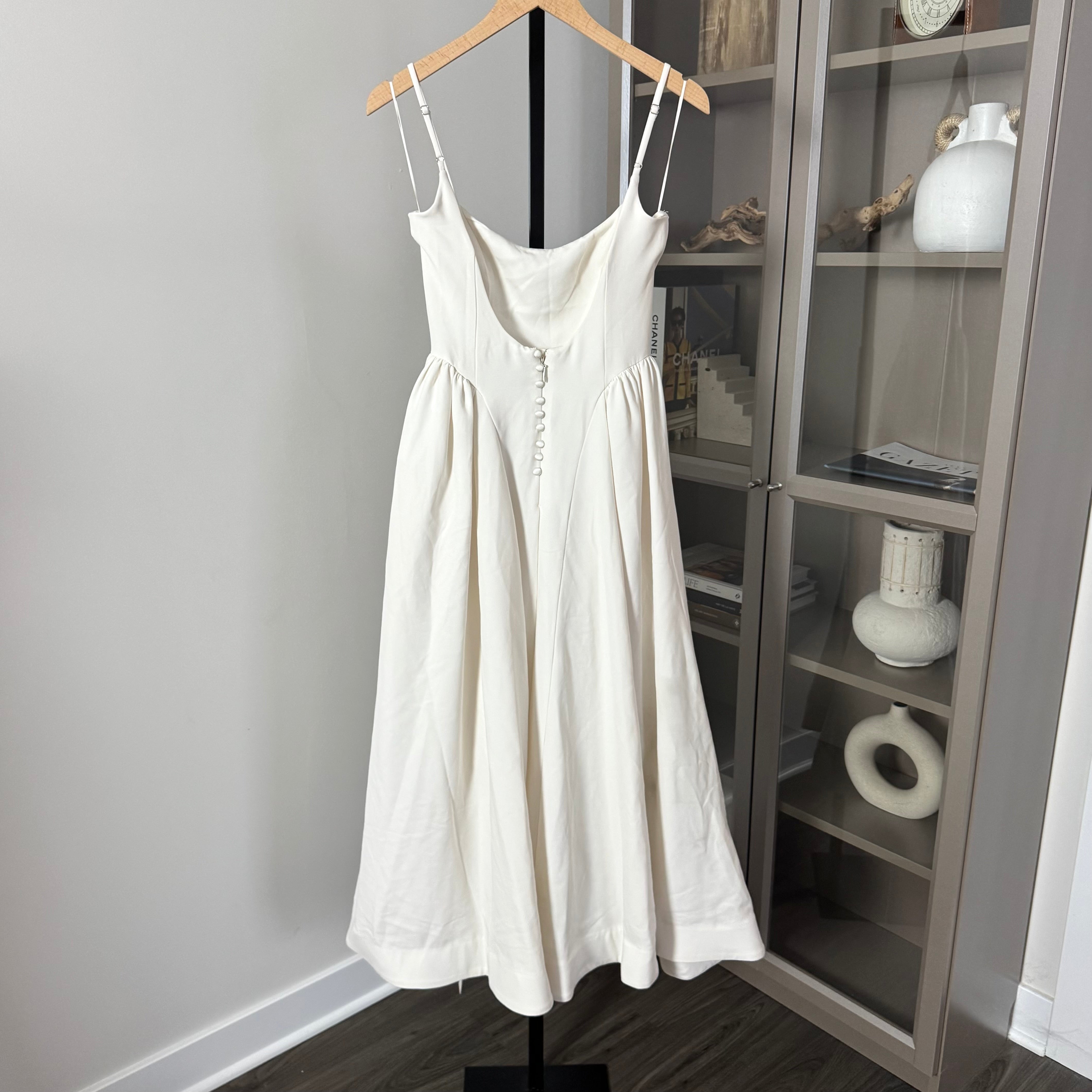 Reformation Bonie Crepe Fit And Flare Fior Di Latte Ivory Midi Dress