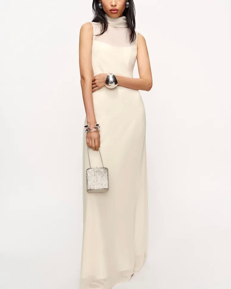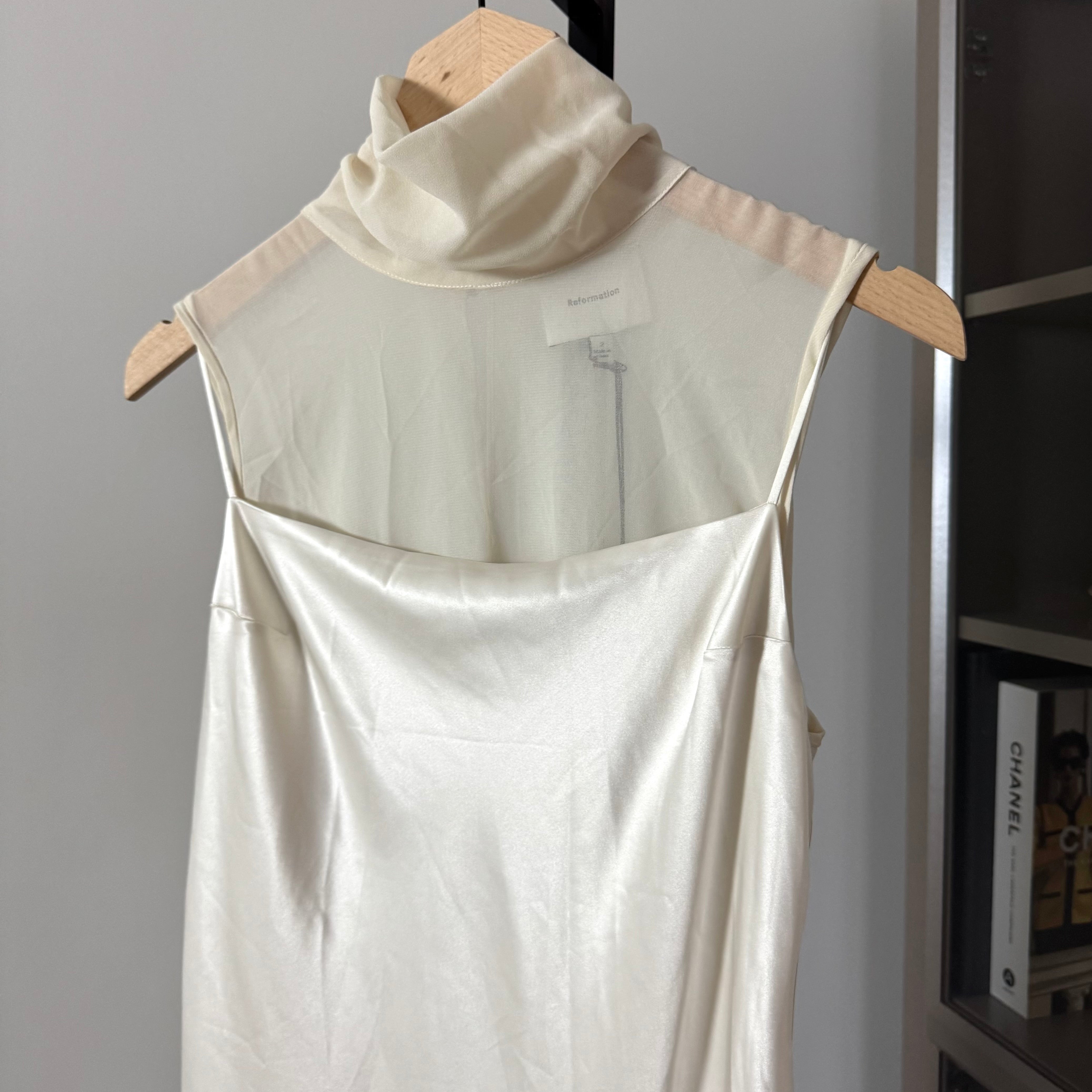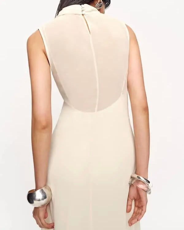 Reformation Greta Mock Neck Sleeveless Alabaster Ivory Overlay Maxi Dress