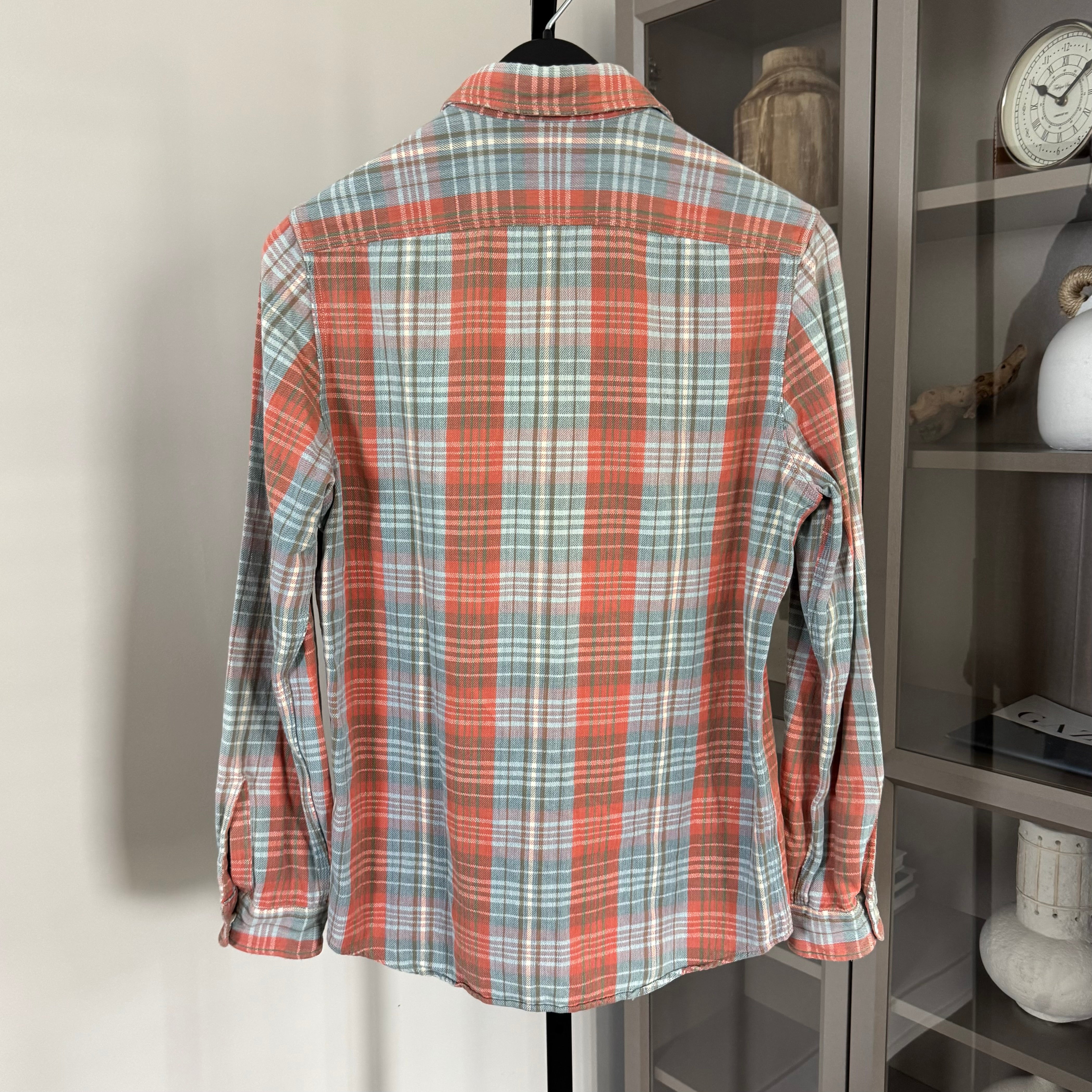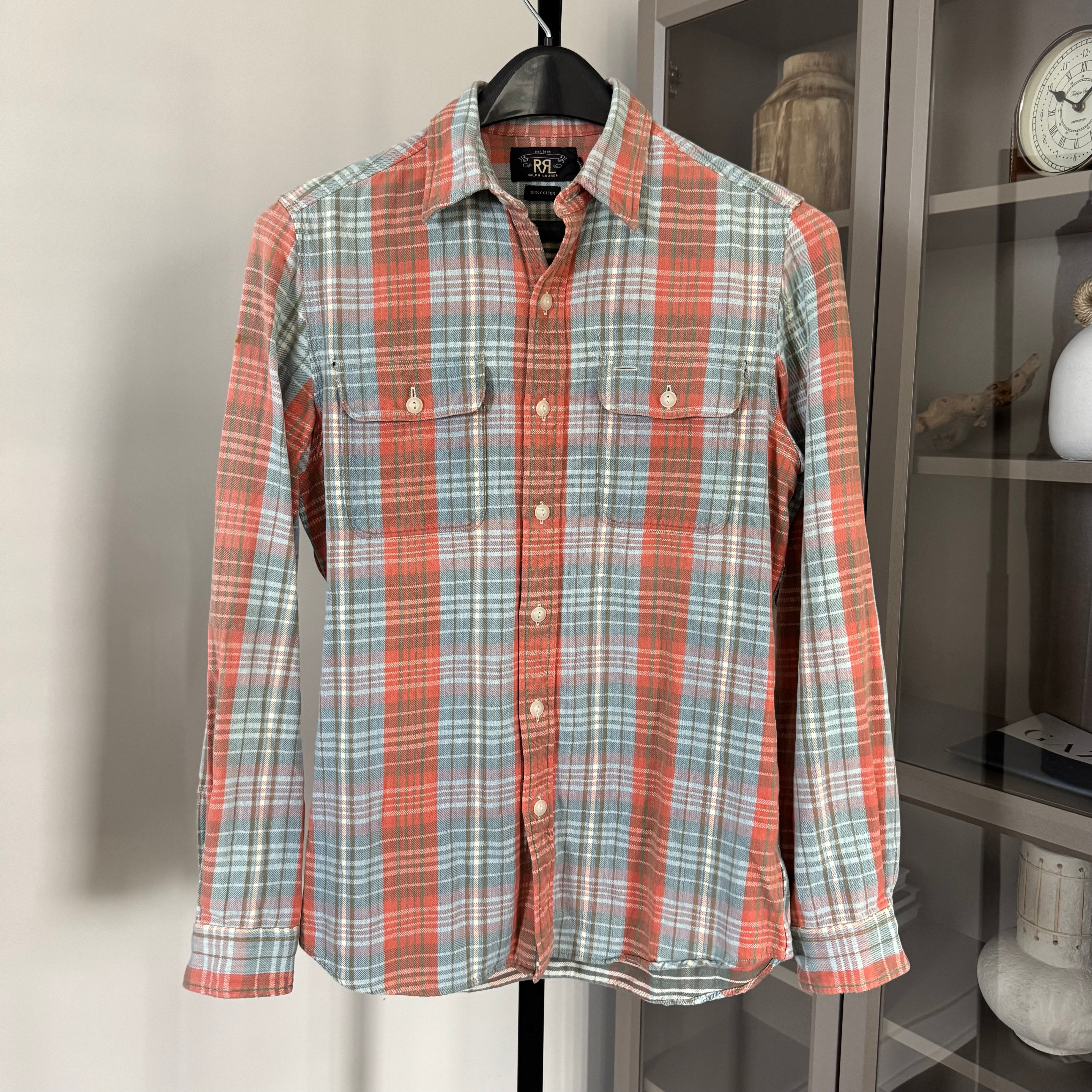 RRL Ralph Lauren Blue Orange Plaid Button-Up Distressed Flannel Shirt