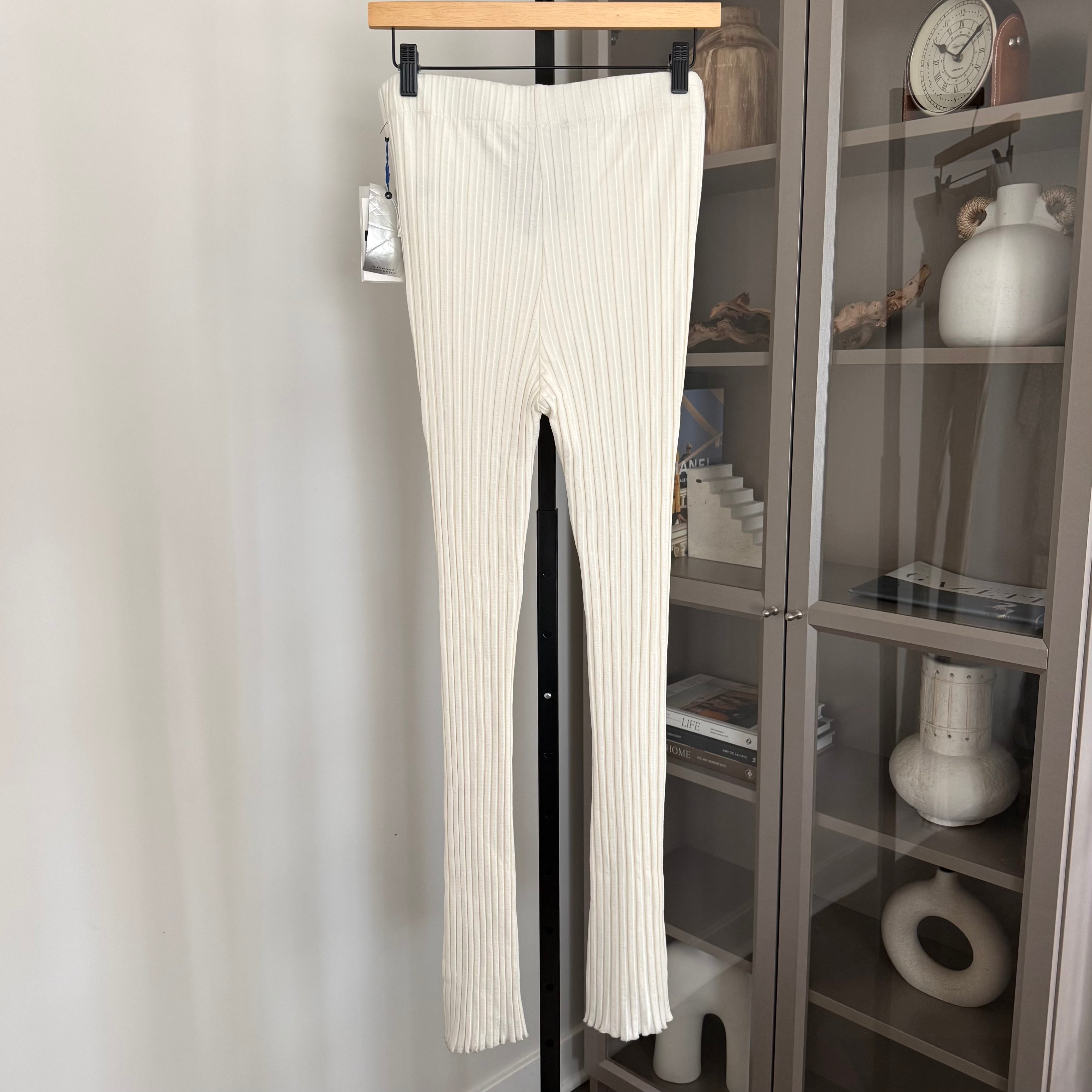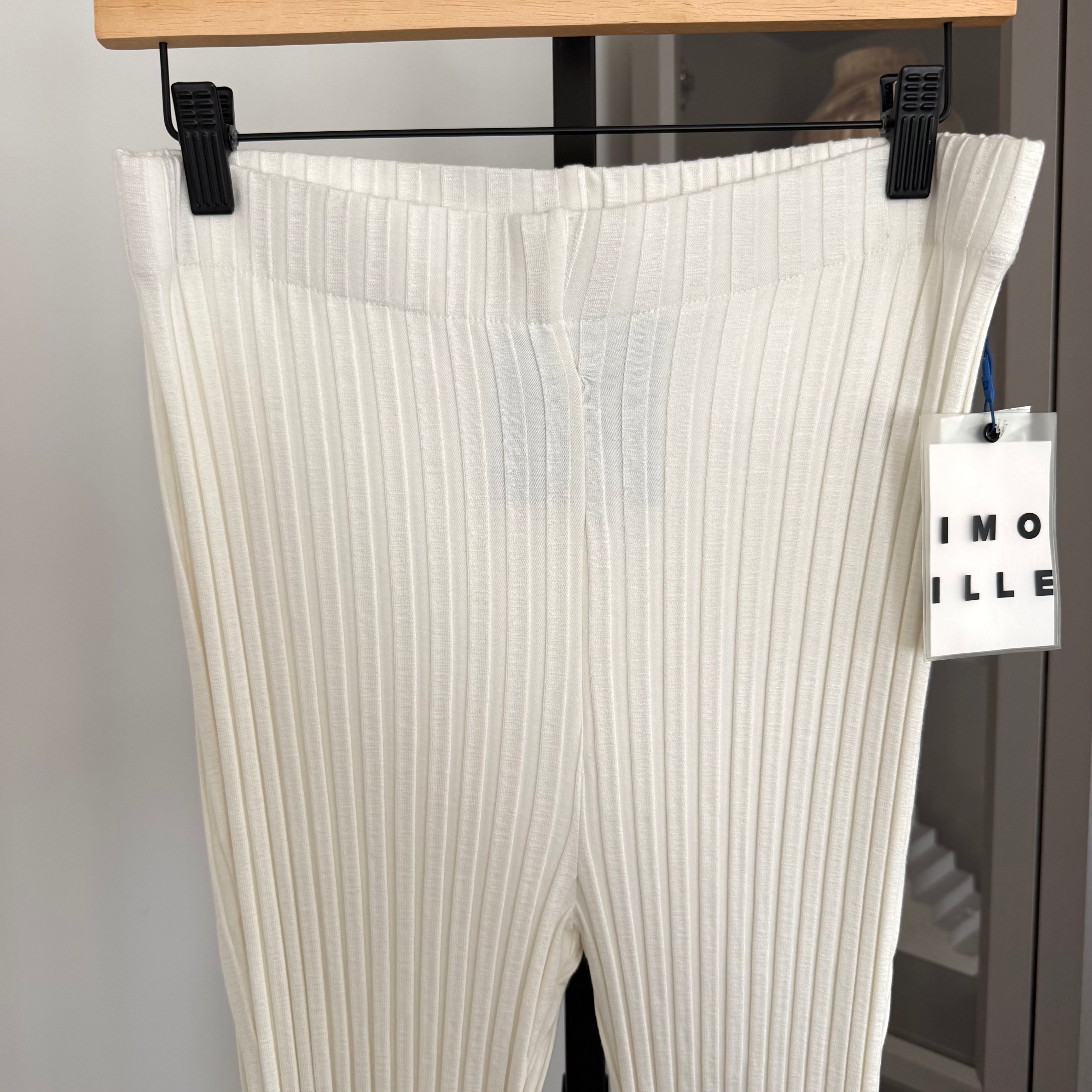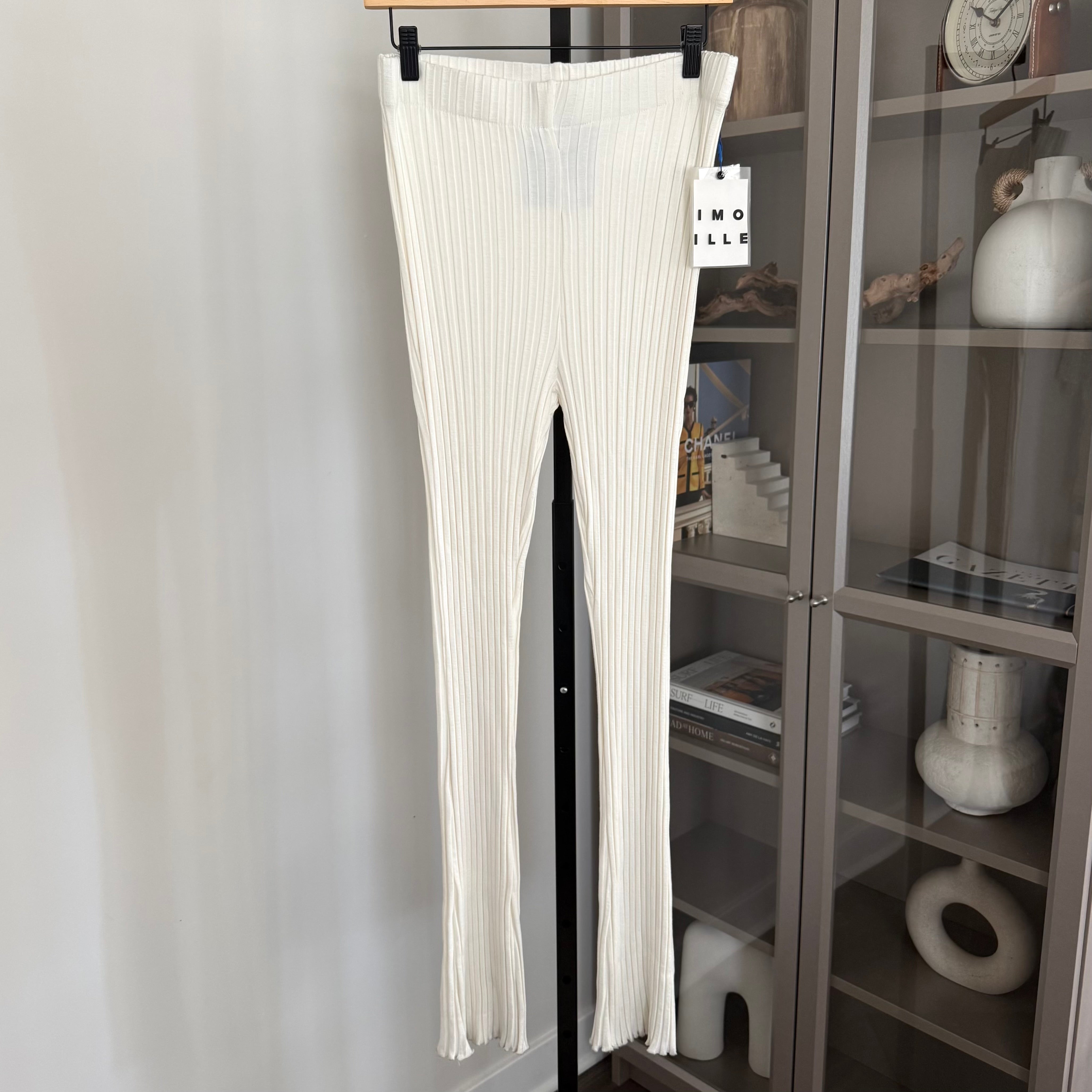Simon Miller Ivory Saturn Rib-Knit Textured Flare Cuff Legging Pants