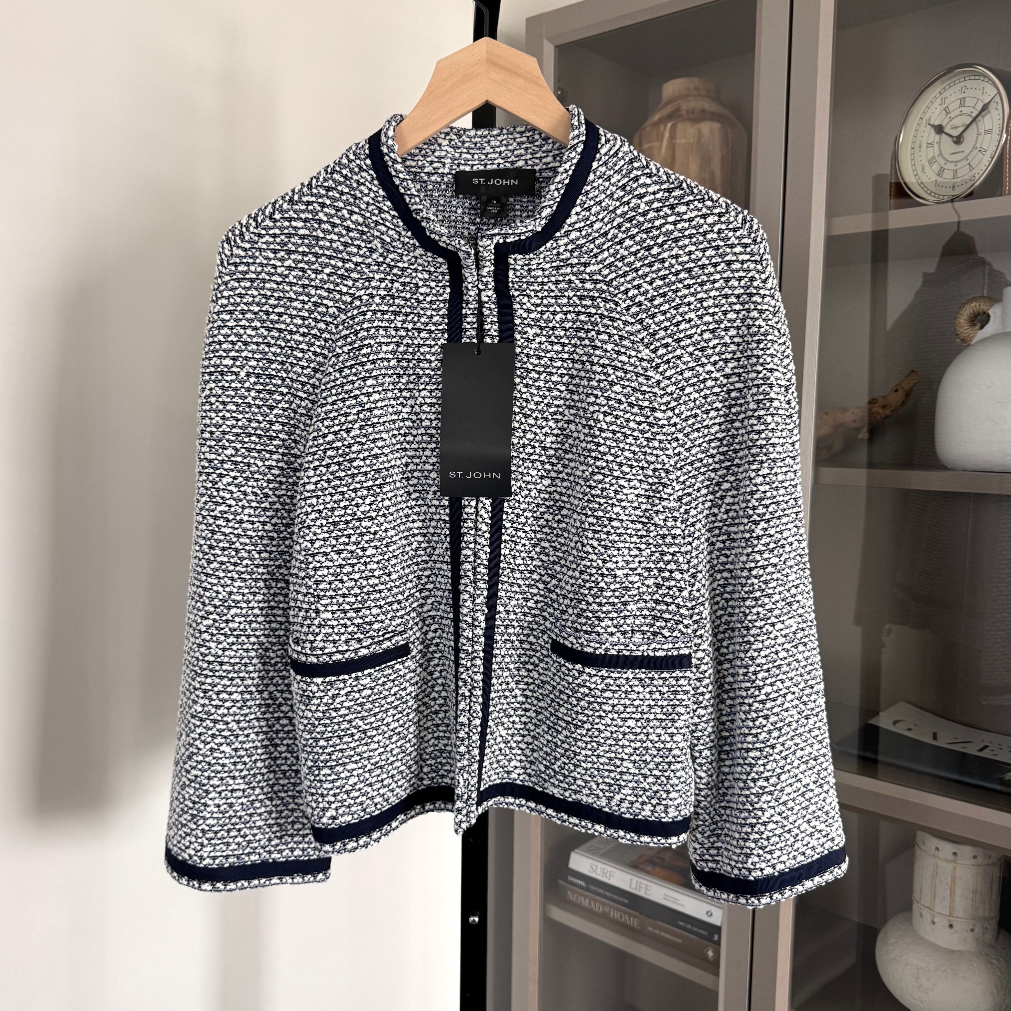 ST. JOHN Blue and White Knit Jacket