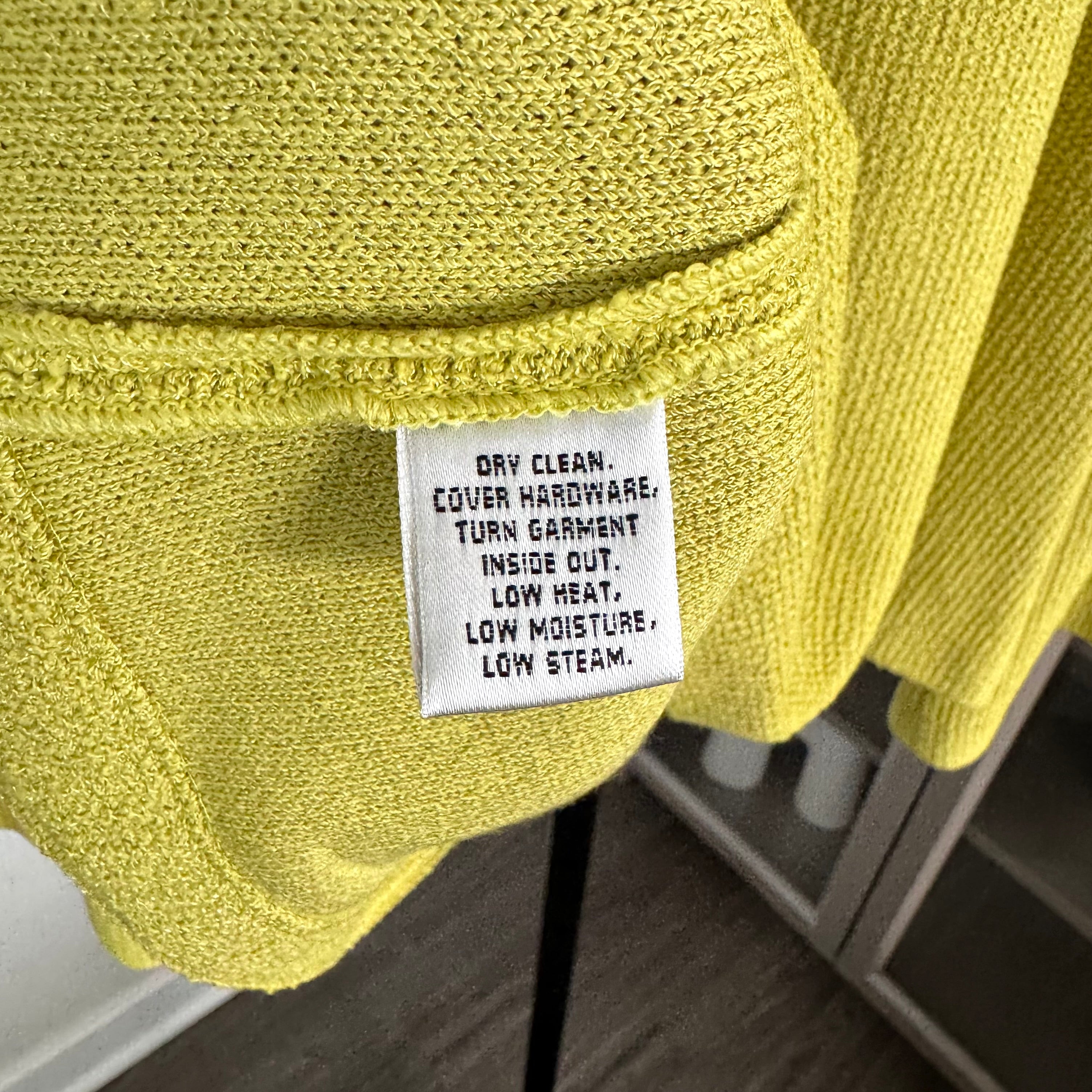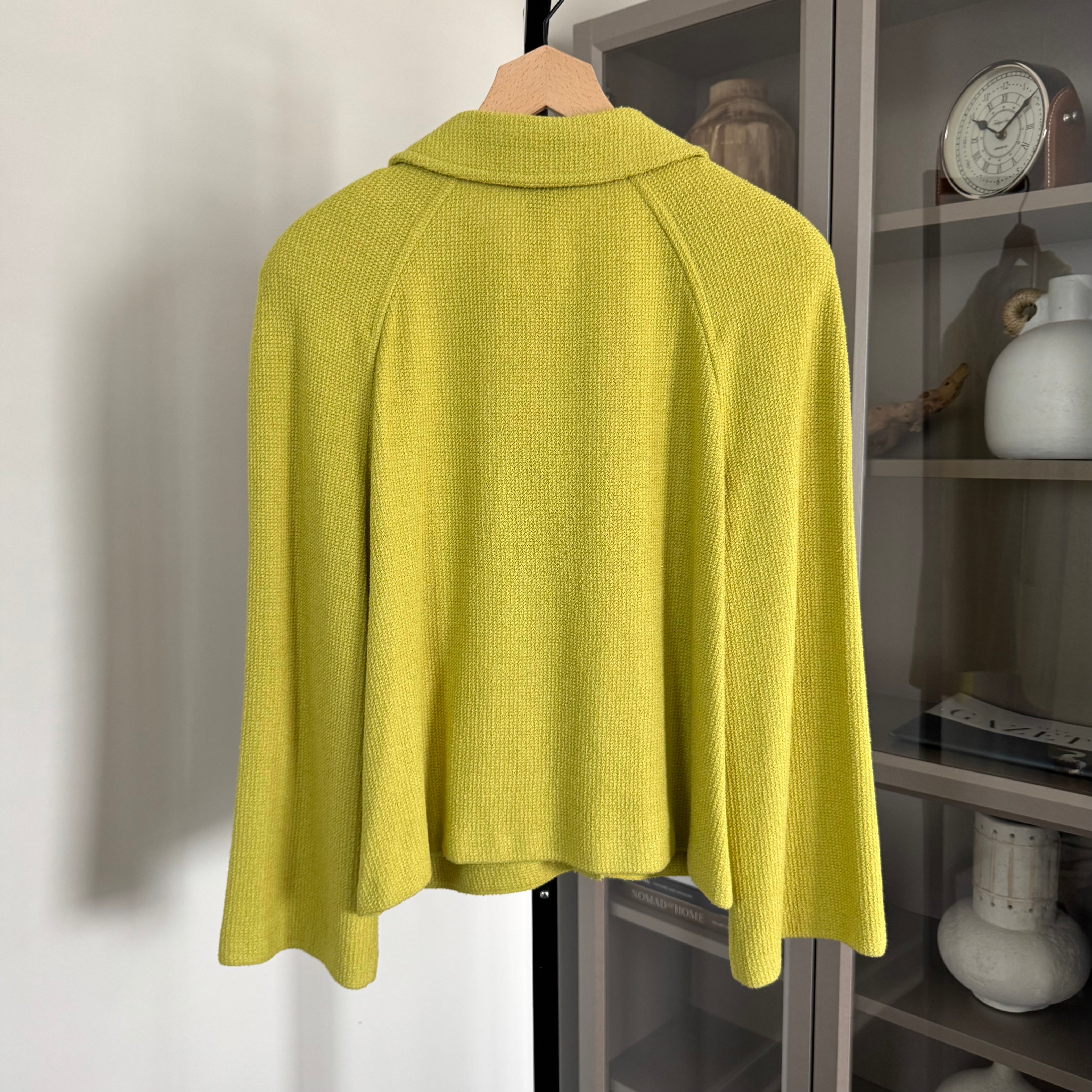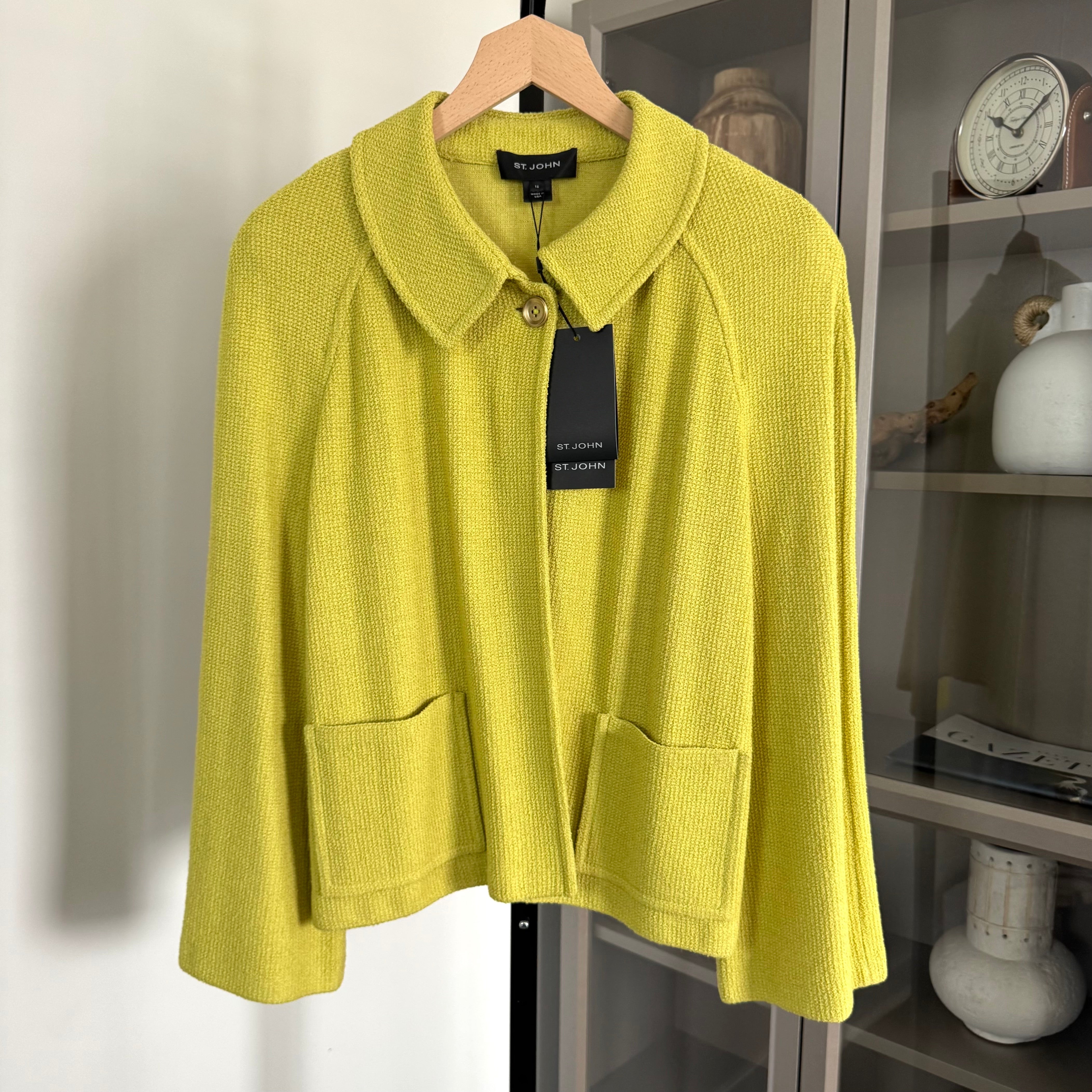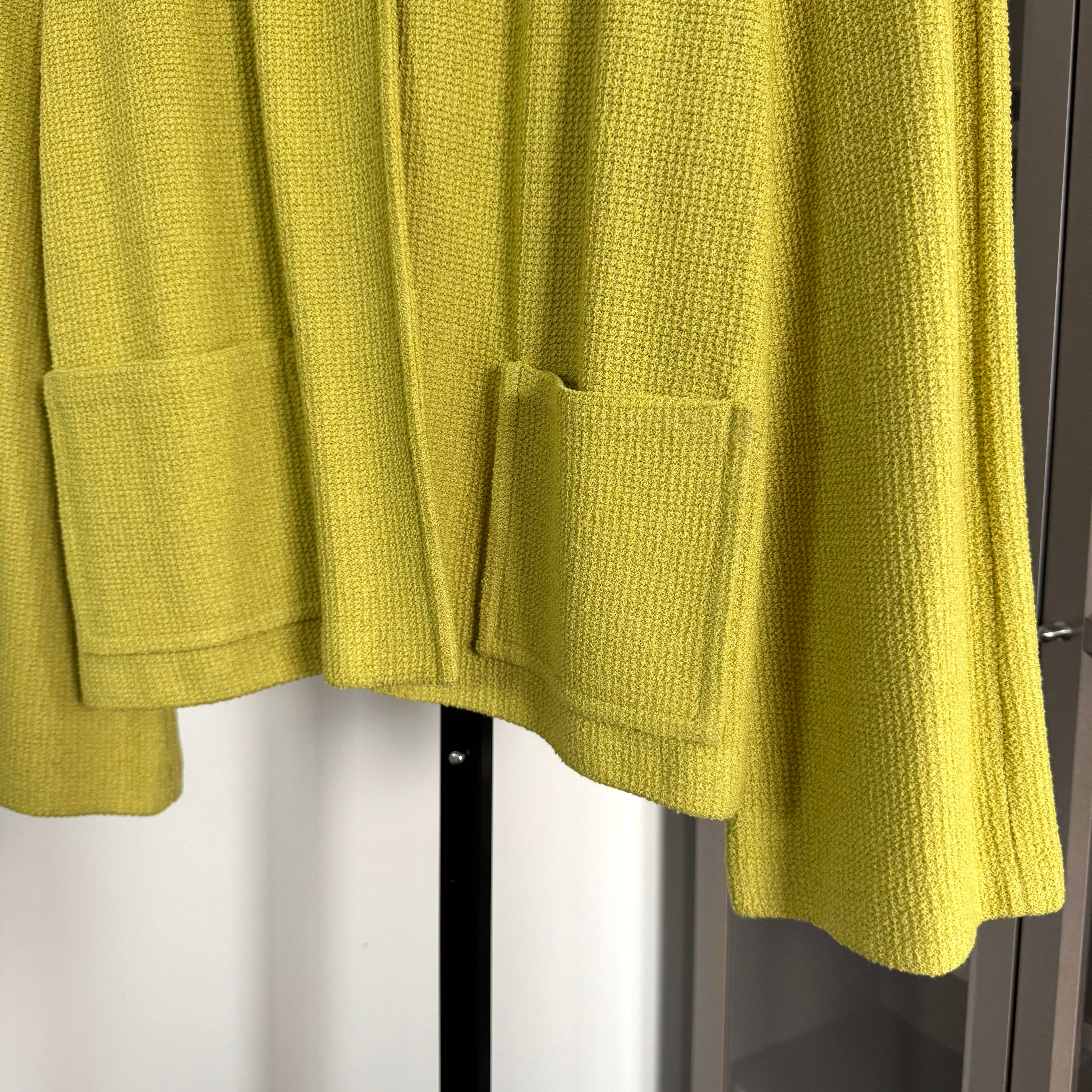 St. John Chartreuse Button Collared Front Pockets Knit Jacket