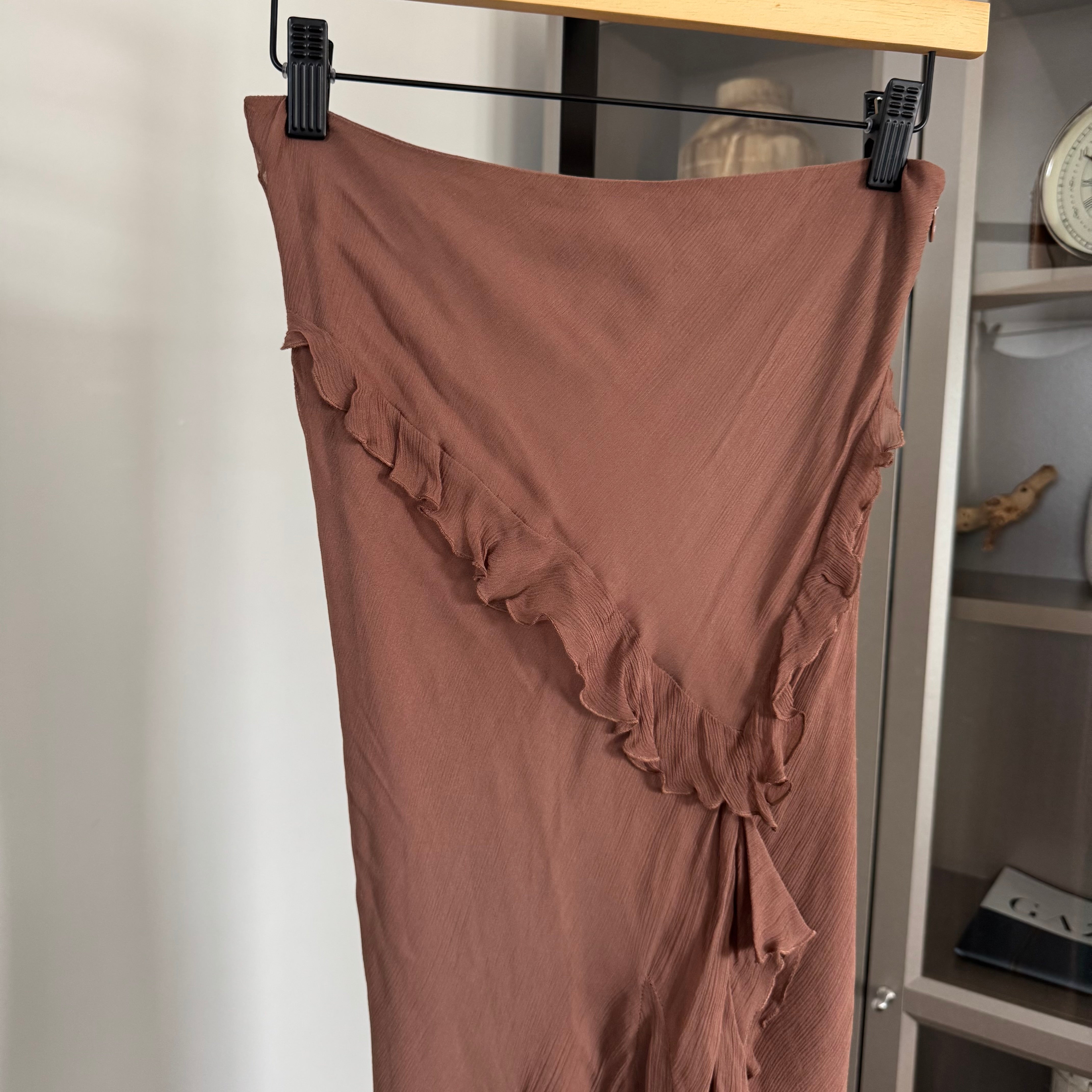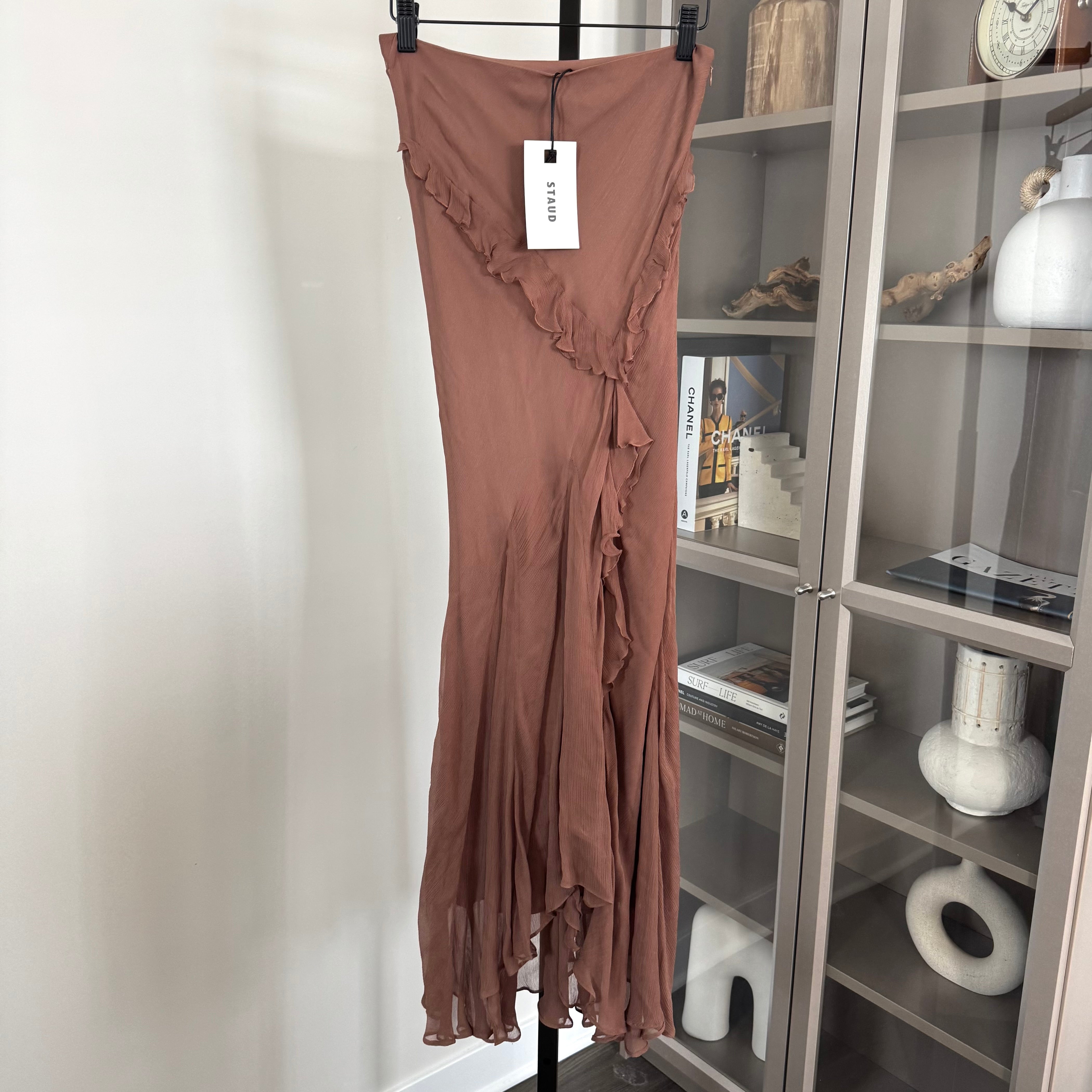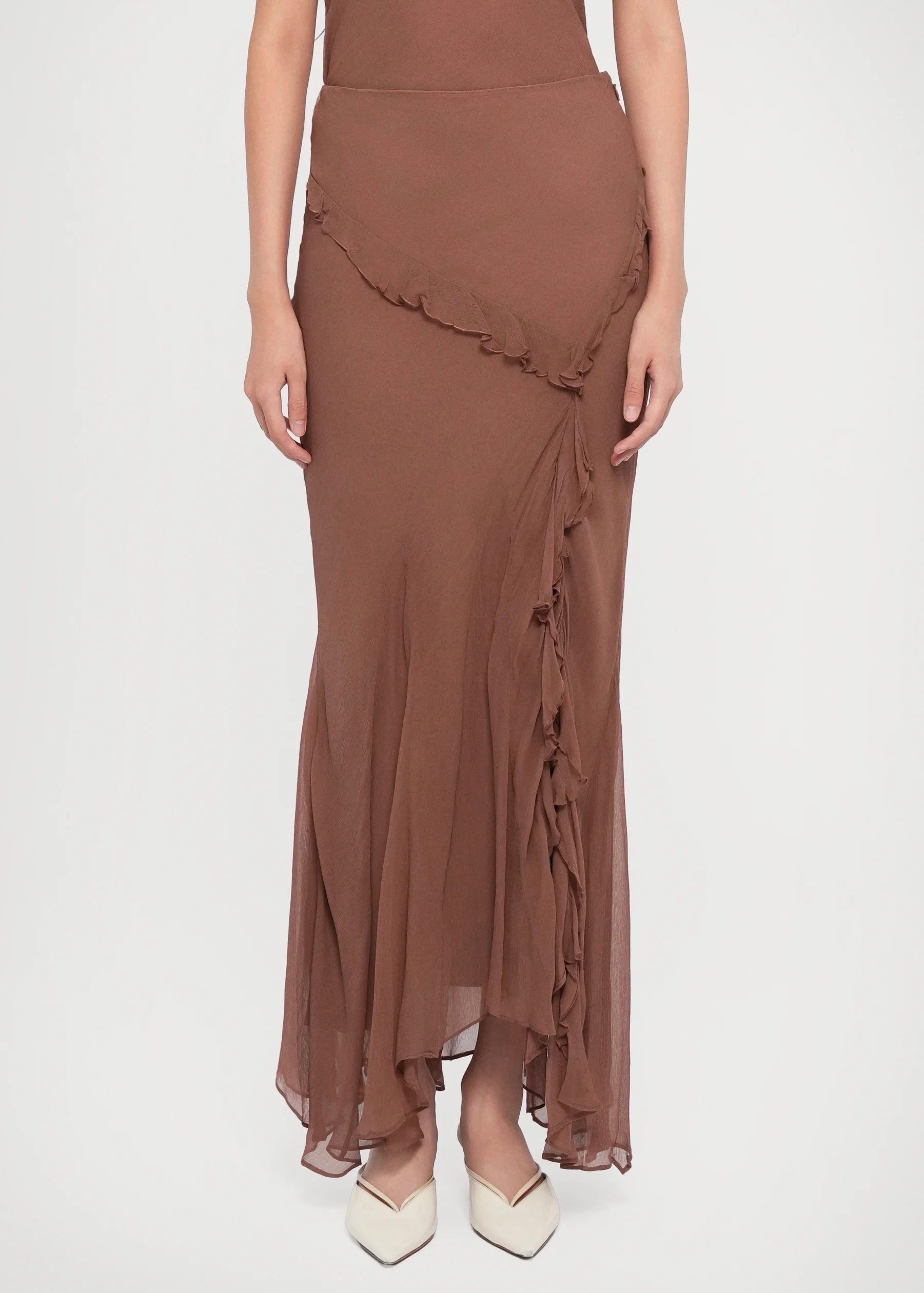 Staud Diana Flowy Asymmetrical Ruffle Viscose Maxi Skirt