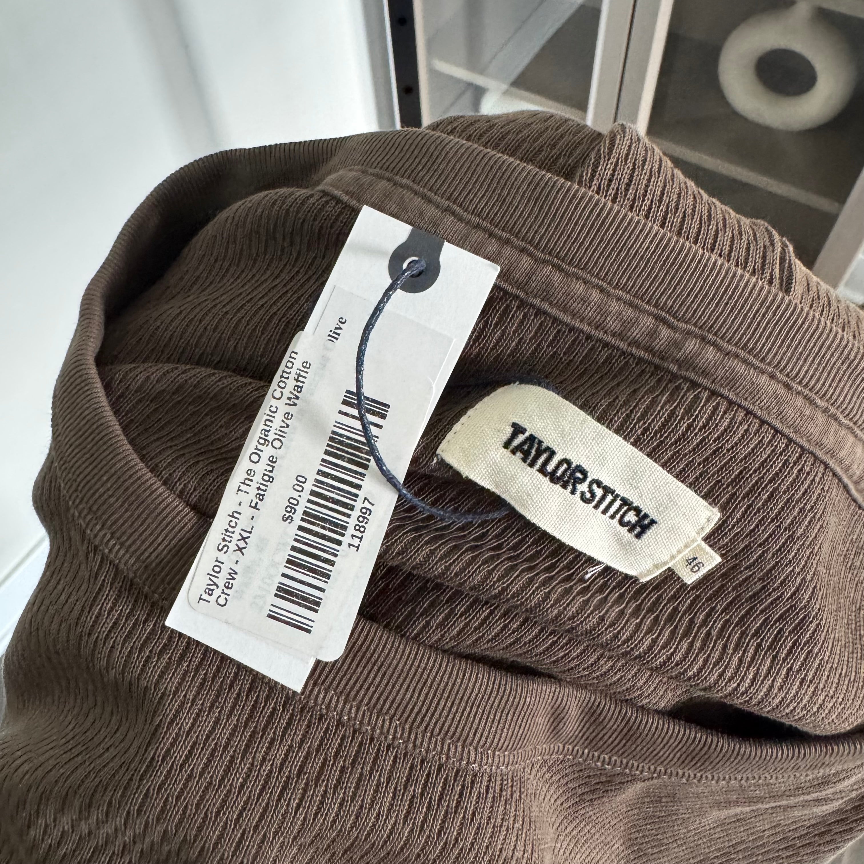 Taylor Stitch Crewneck Organic Cotton Waffle Shirt Fatigue Olive Green