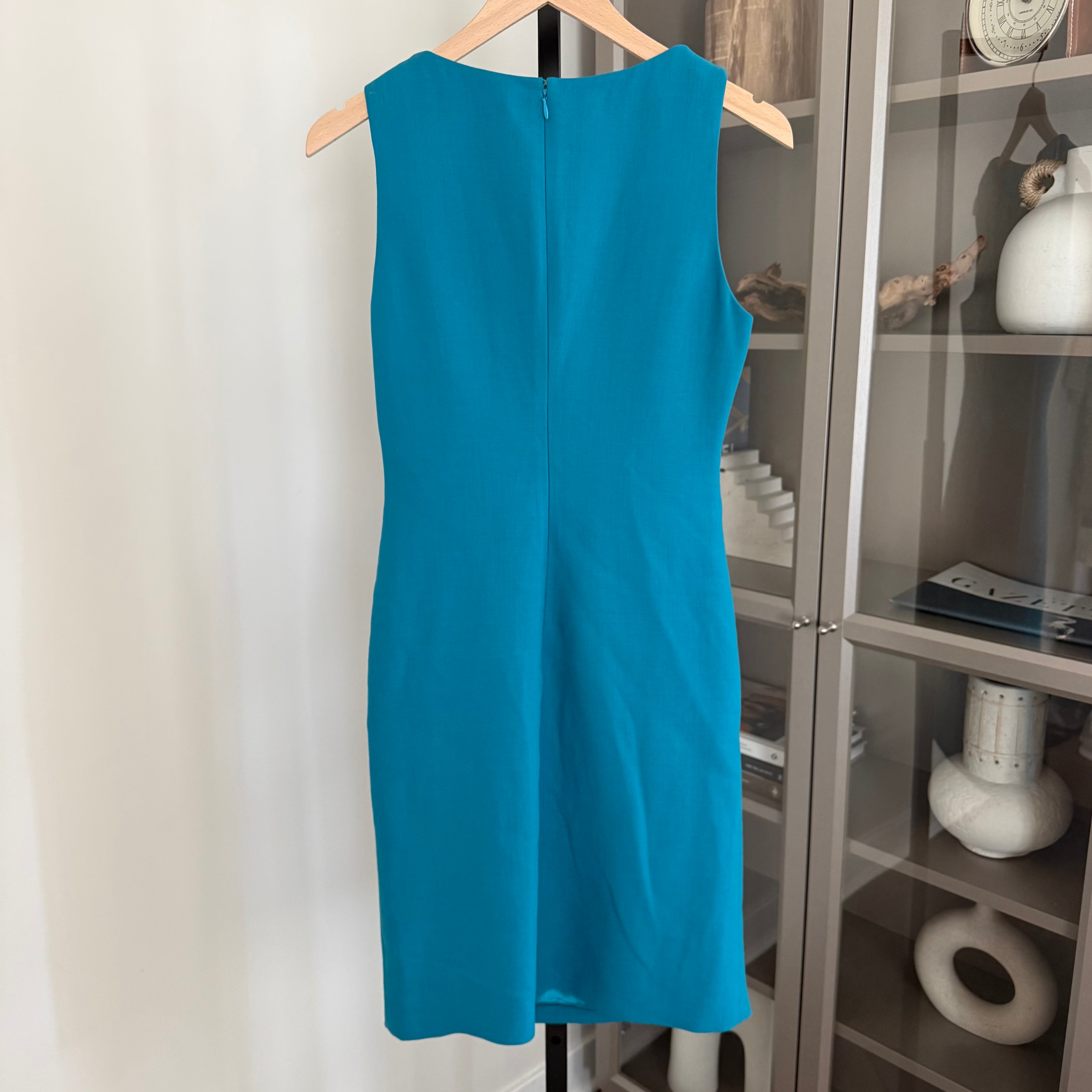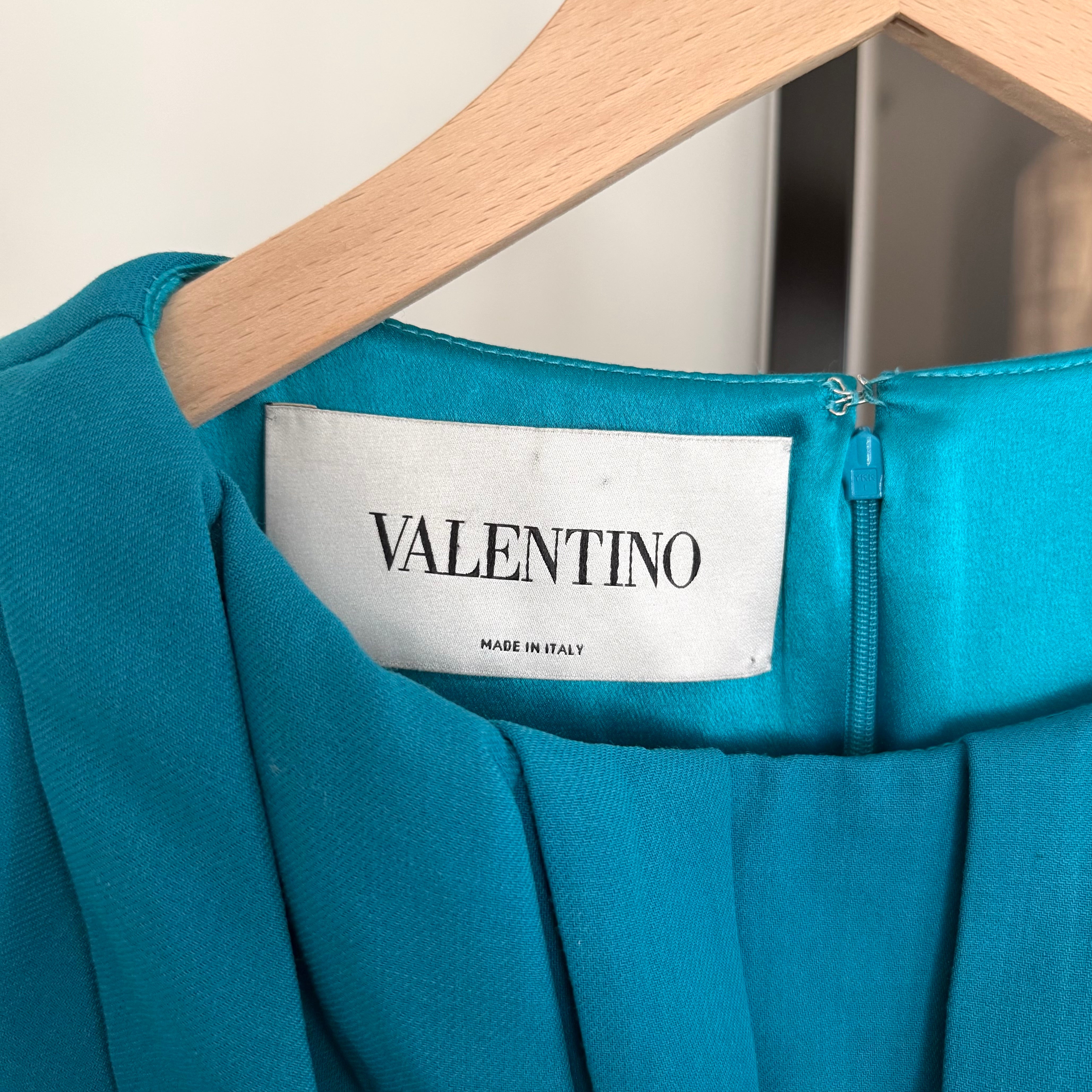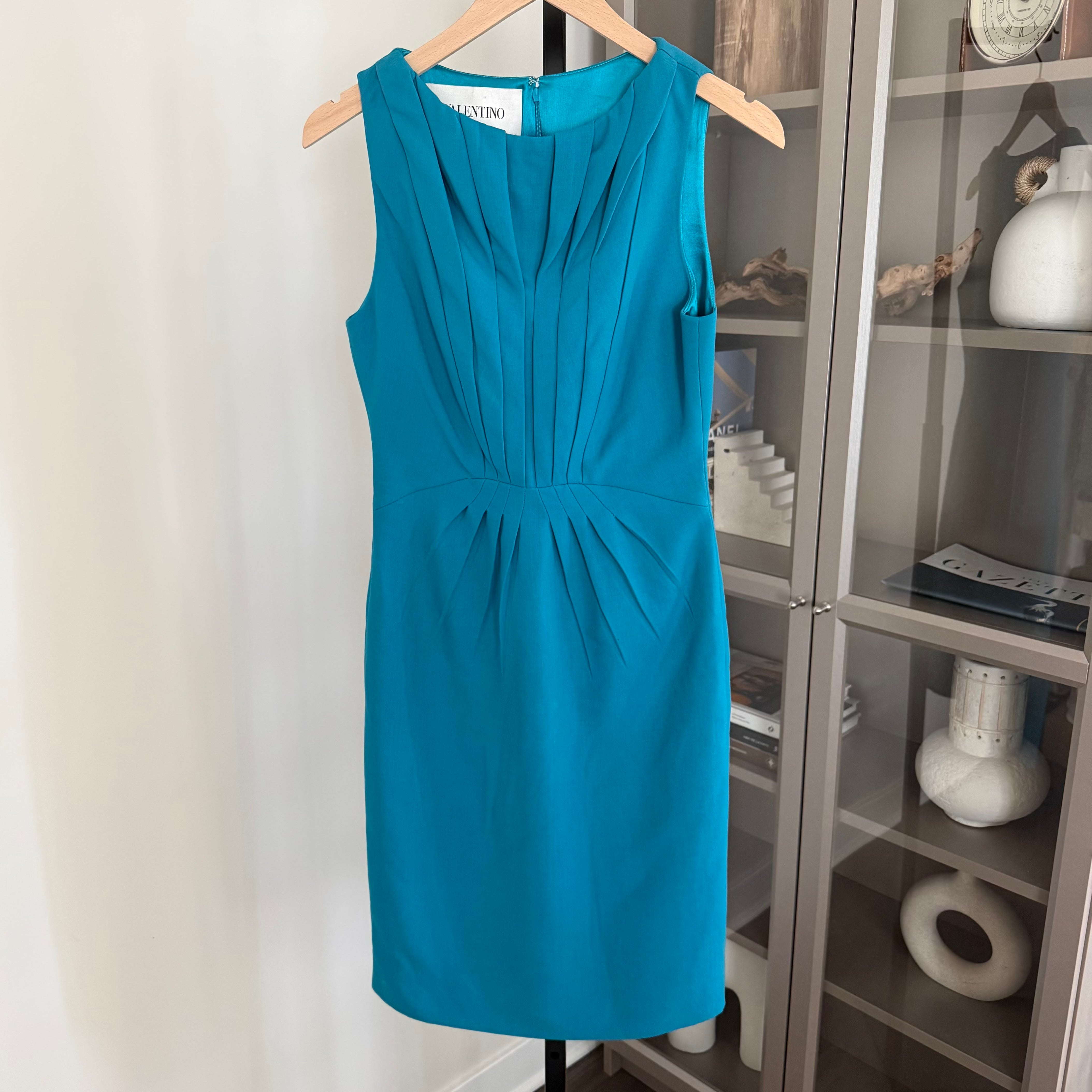 Valentino Turquoise Blue Wool Blend Sleeveless Box Pleat Dress