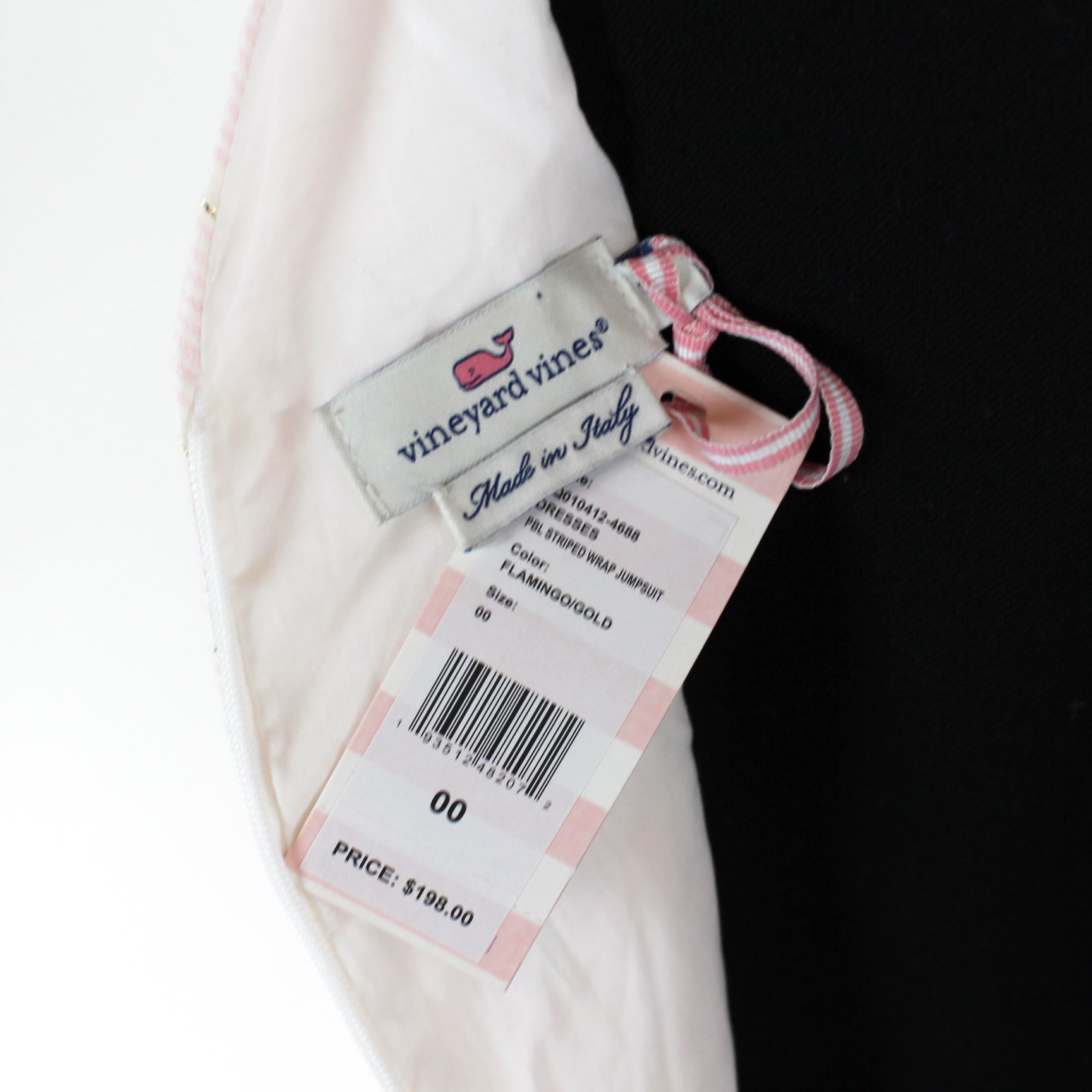 Vineyard Vines Palm Beach Lately Flamingo Pink Gold Striped Wrap Tie Jumpsuit