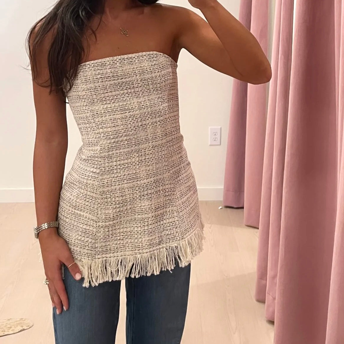 STAUD Strapless Tweed Top