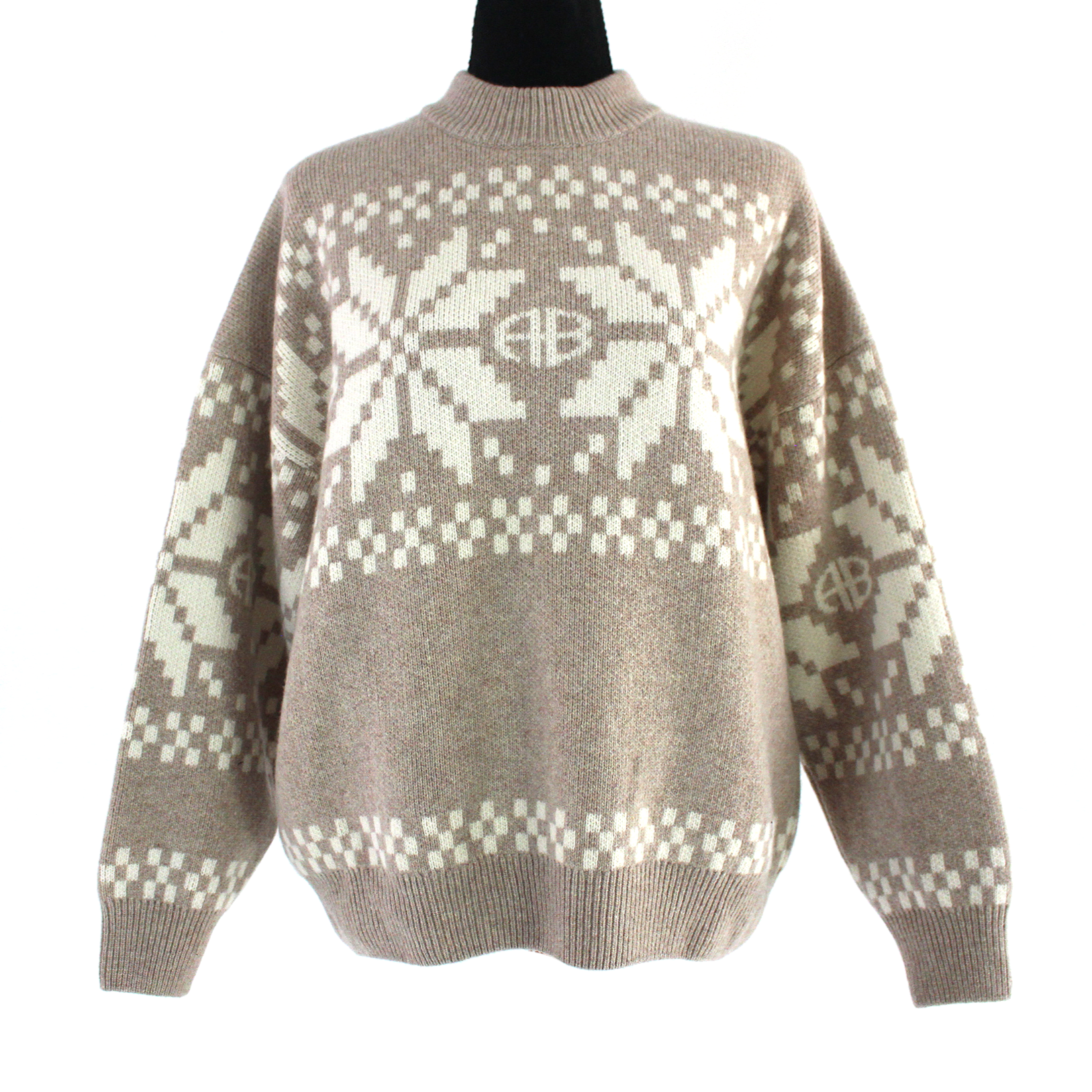 Anine Bing Cheyenne Brown Cream Snowflake High Neck Holiday Sweater
