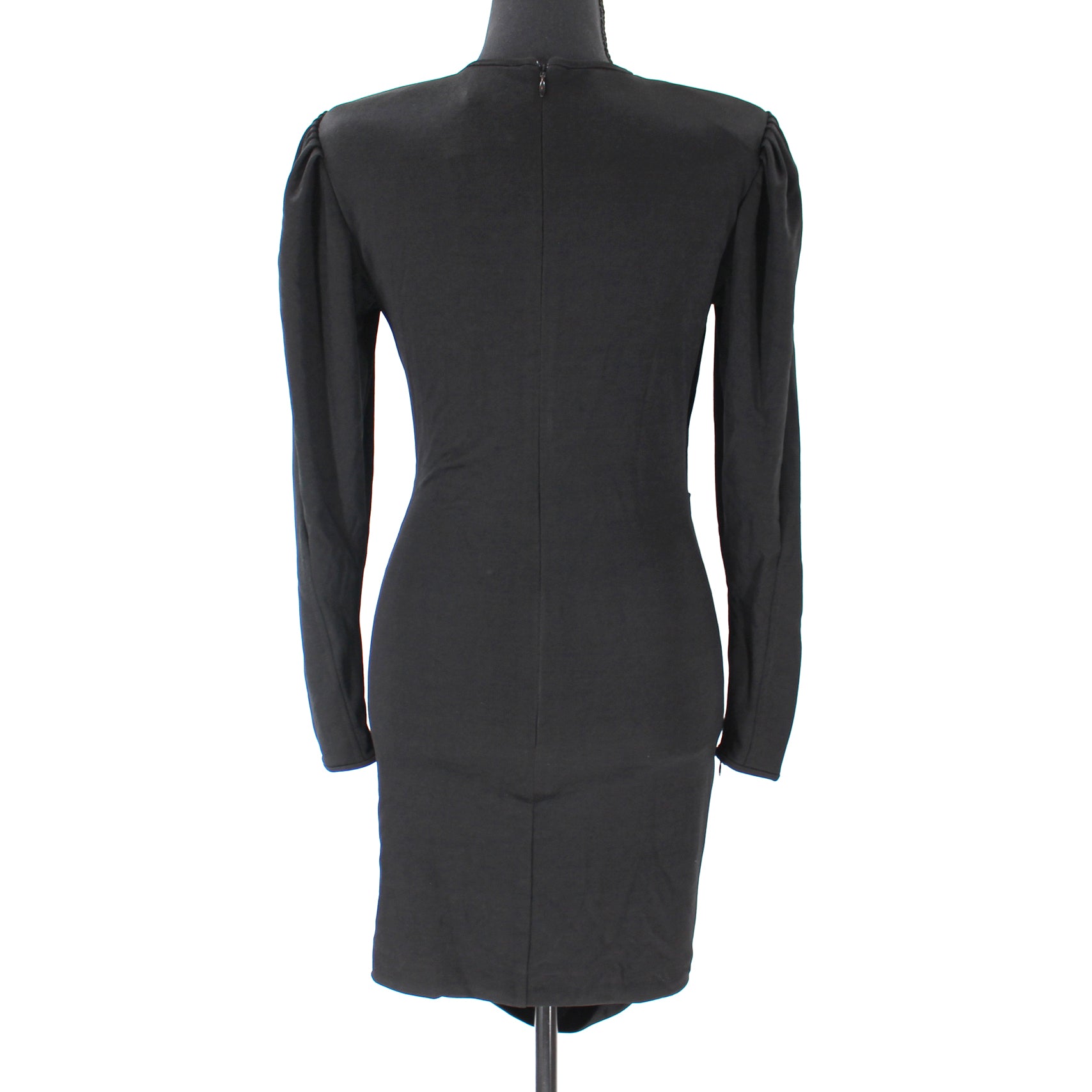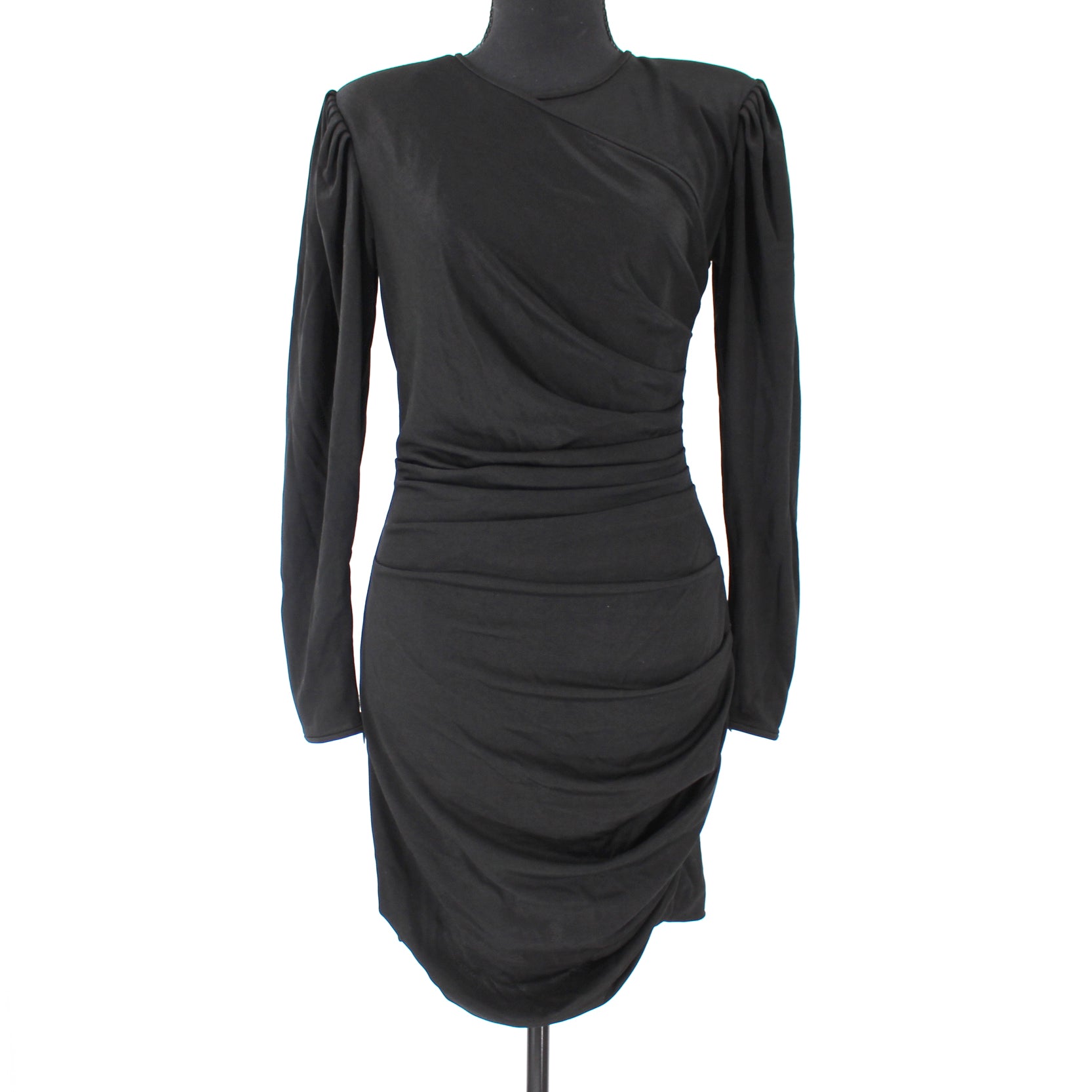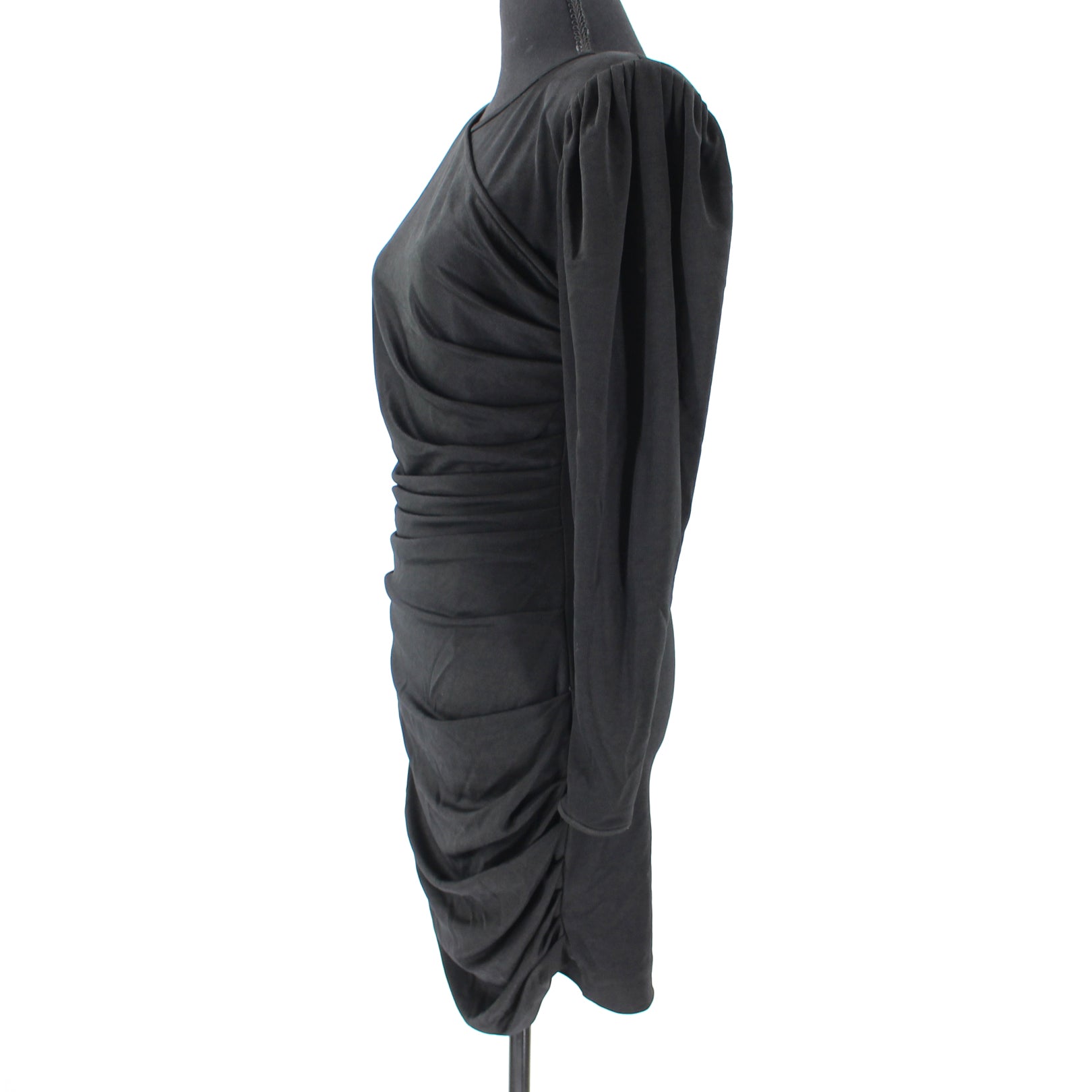 Anine Bing Alaia Black Ruched Side Draping Long Sleeve Mini Dress