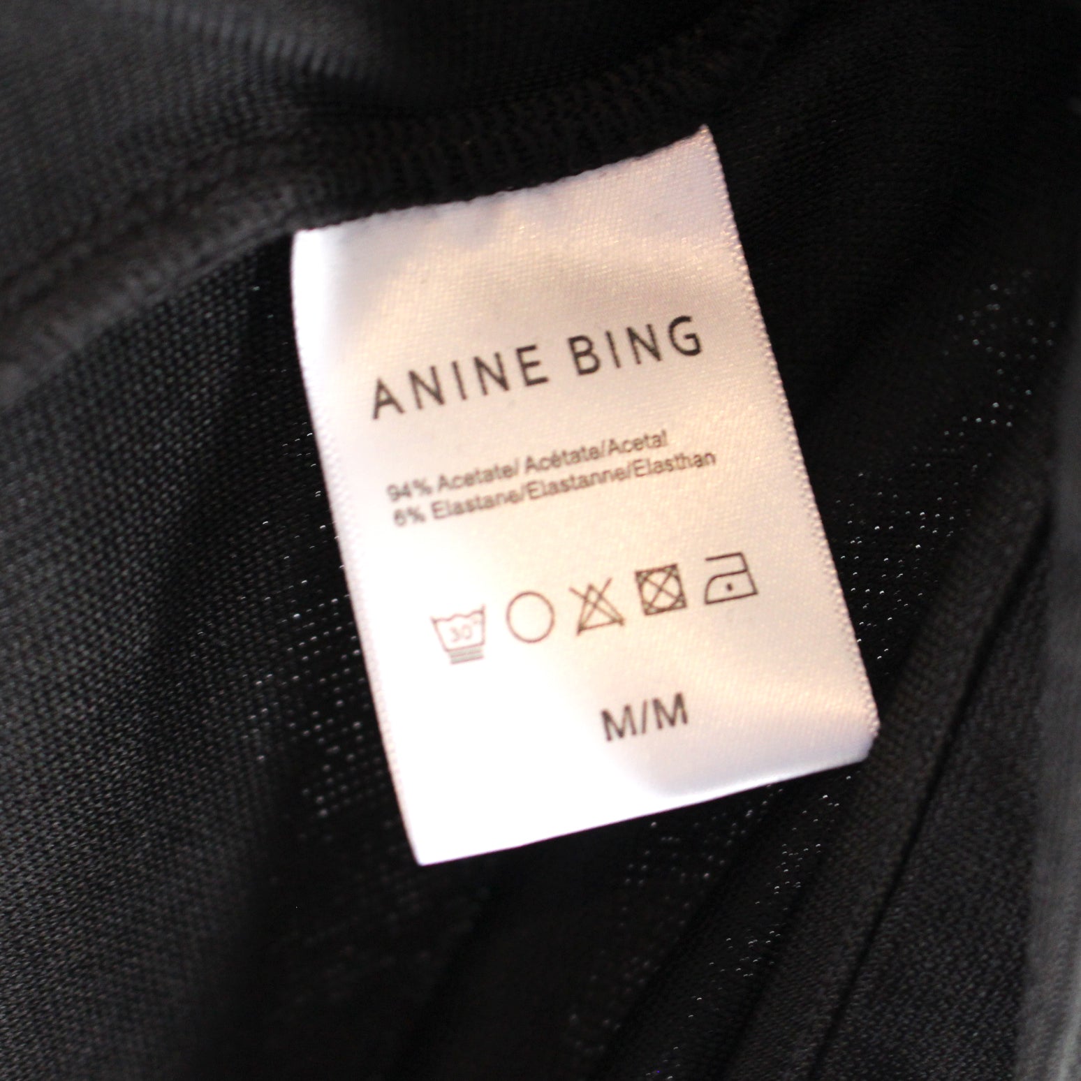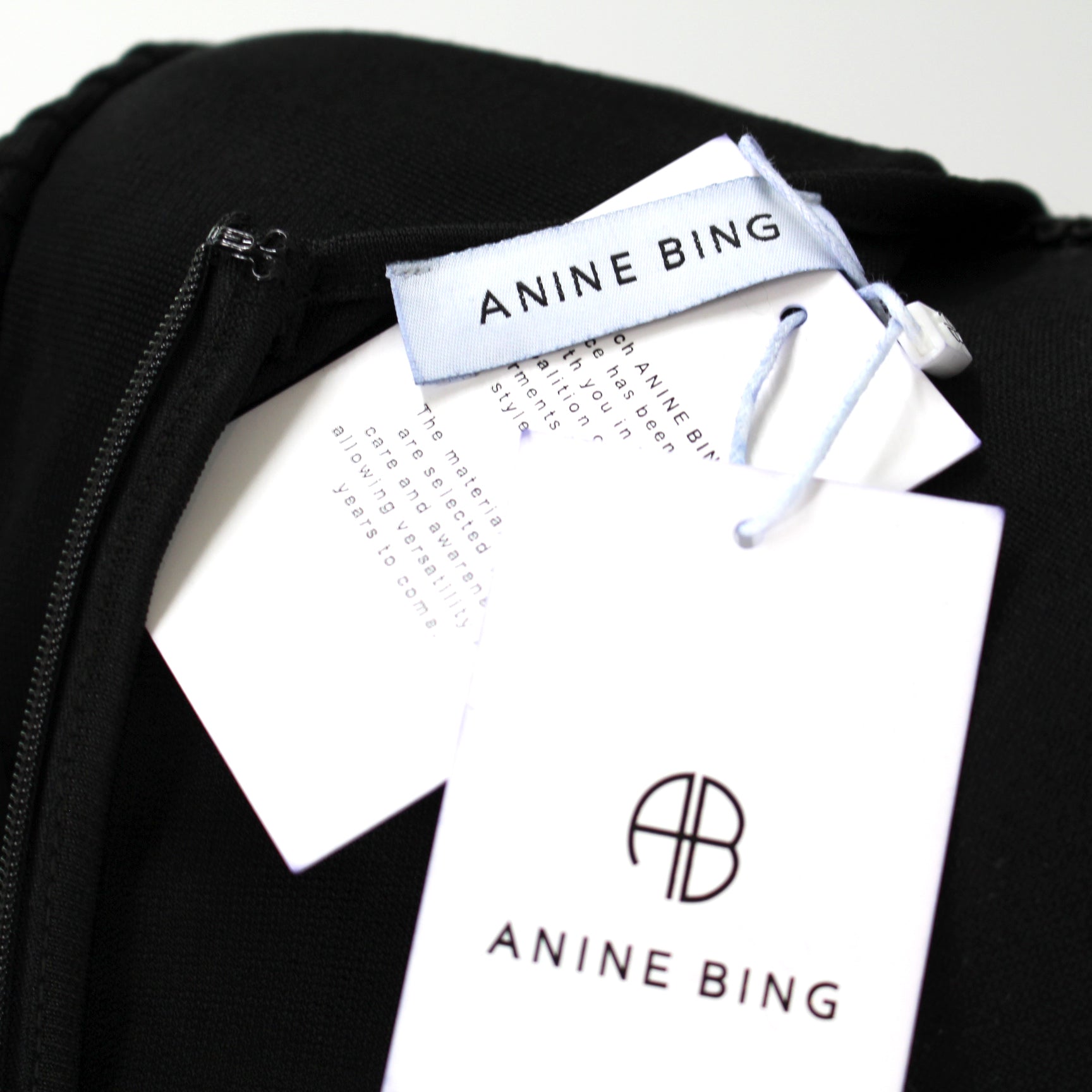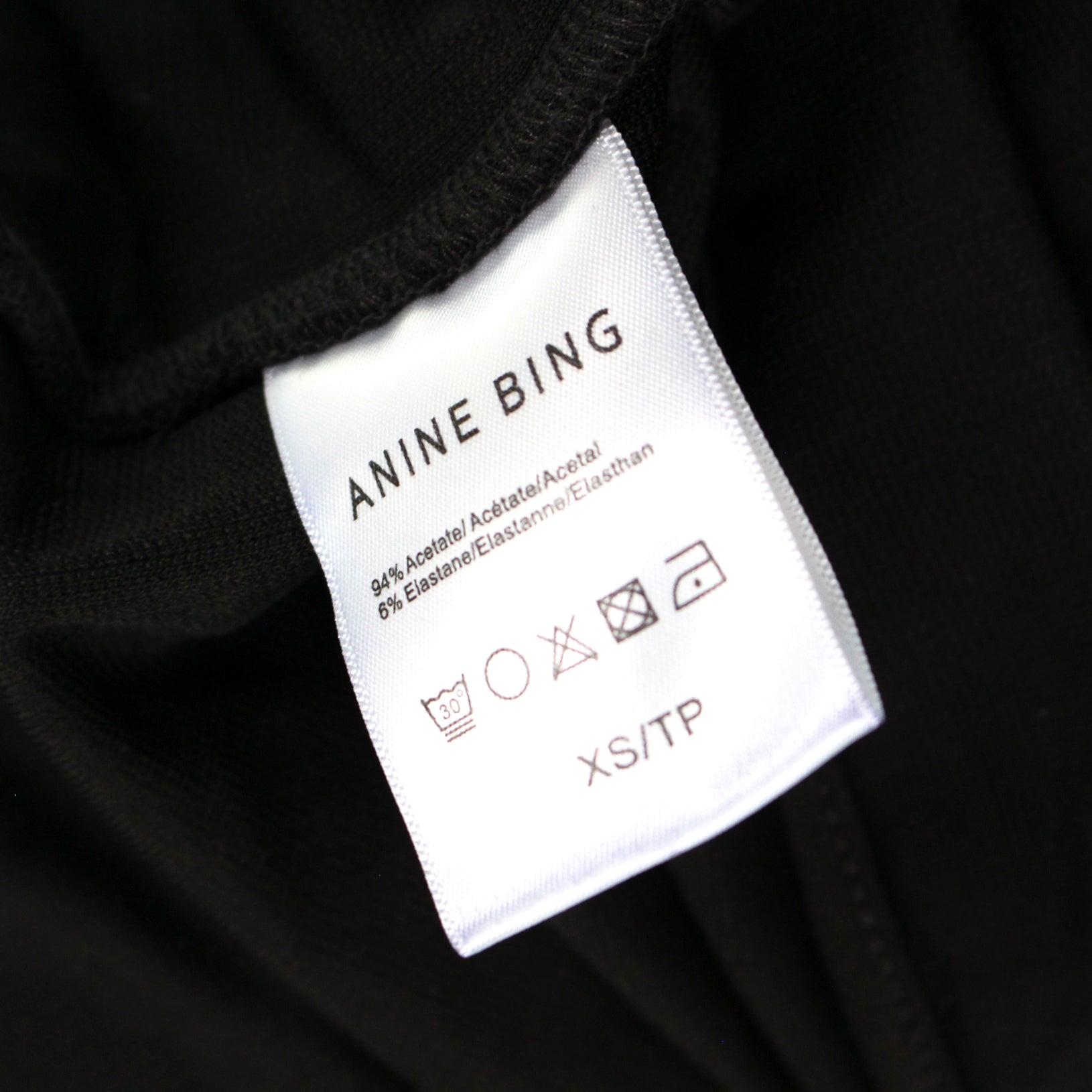 Anine Bing Alaia Black Ruched Side Draping Long Sleeve Mini Dress