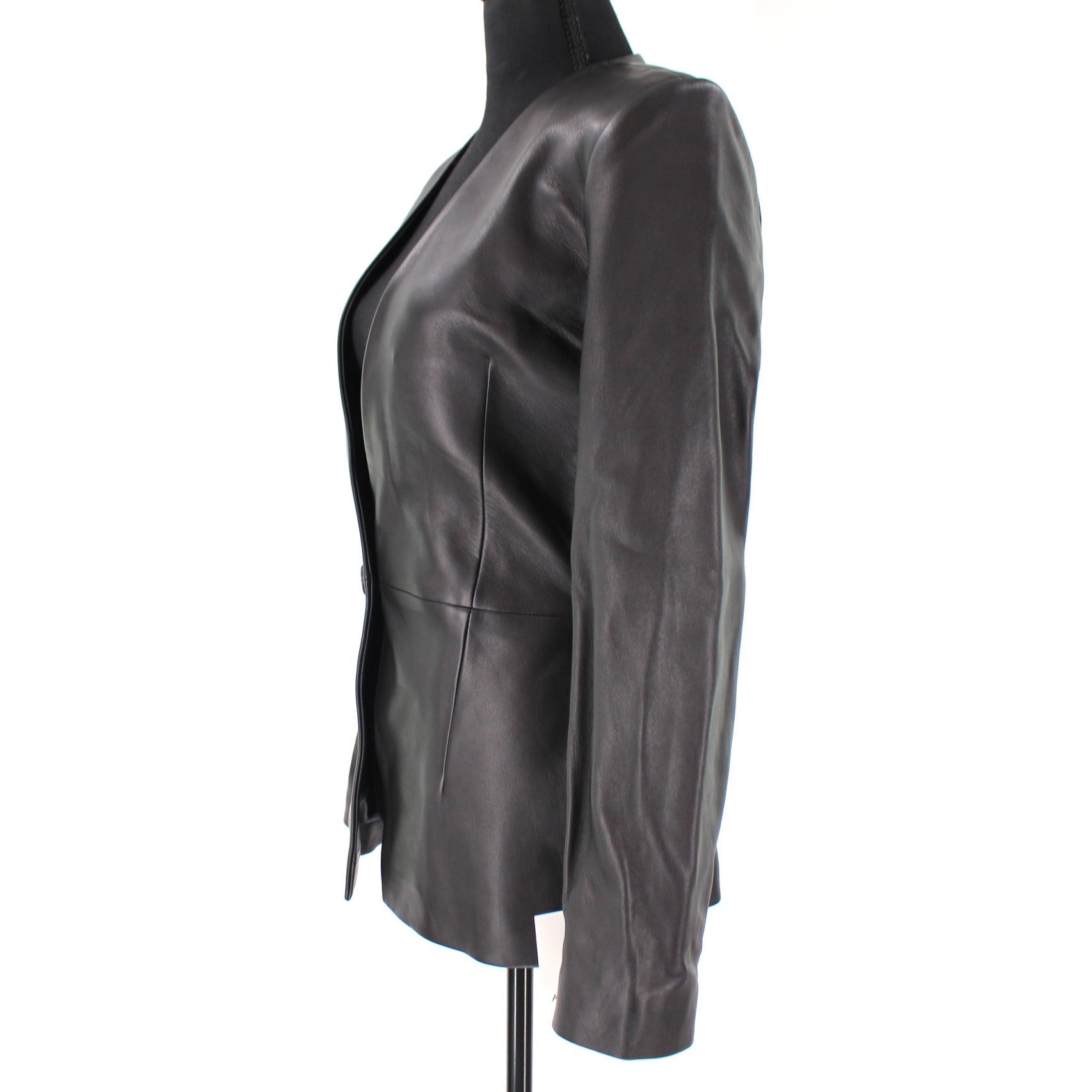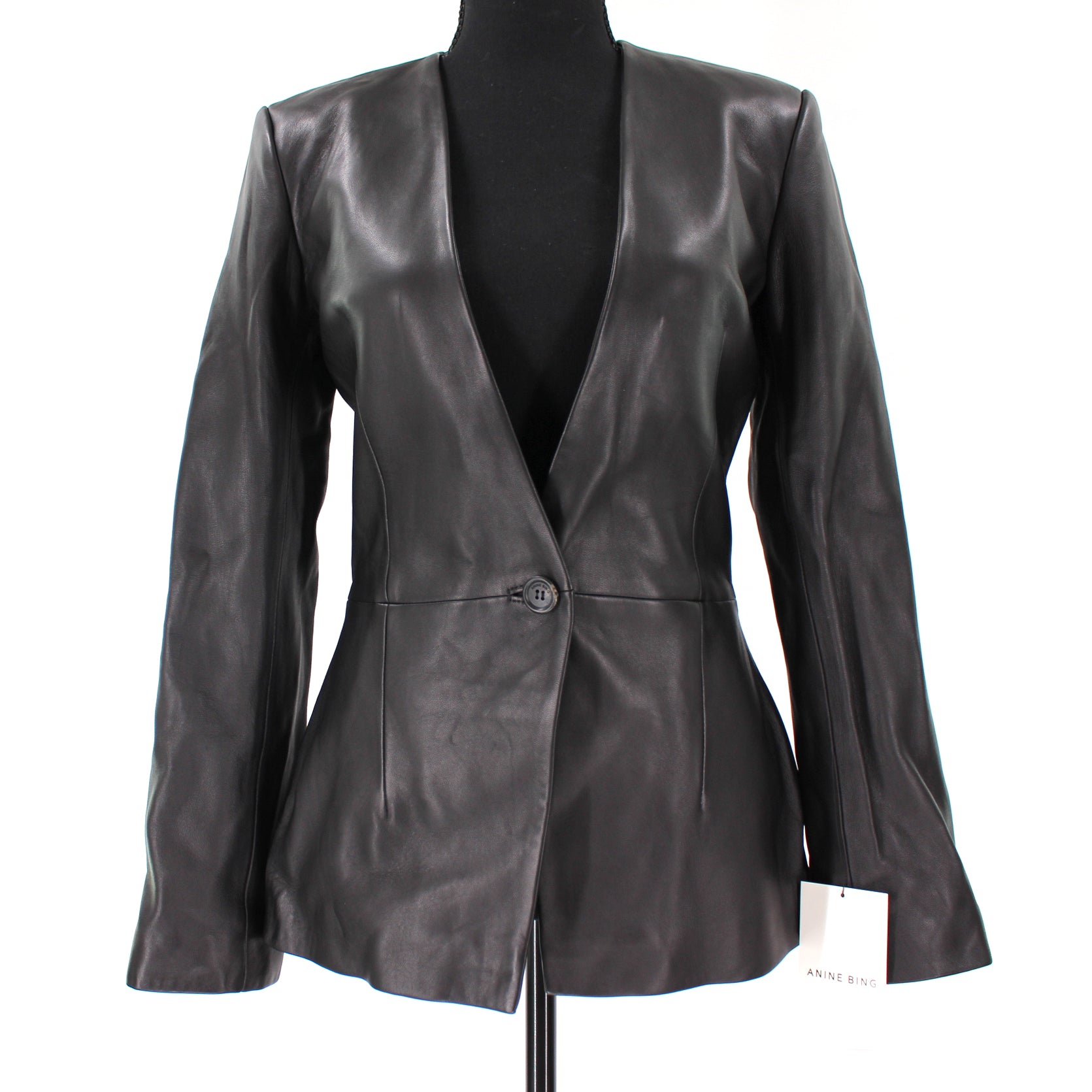 Anine Bing Black Lou Smooth Soft Leather Single Breasted Blazer Jacket