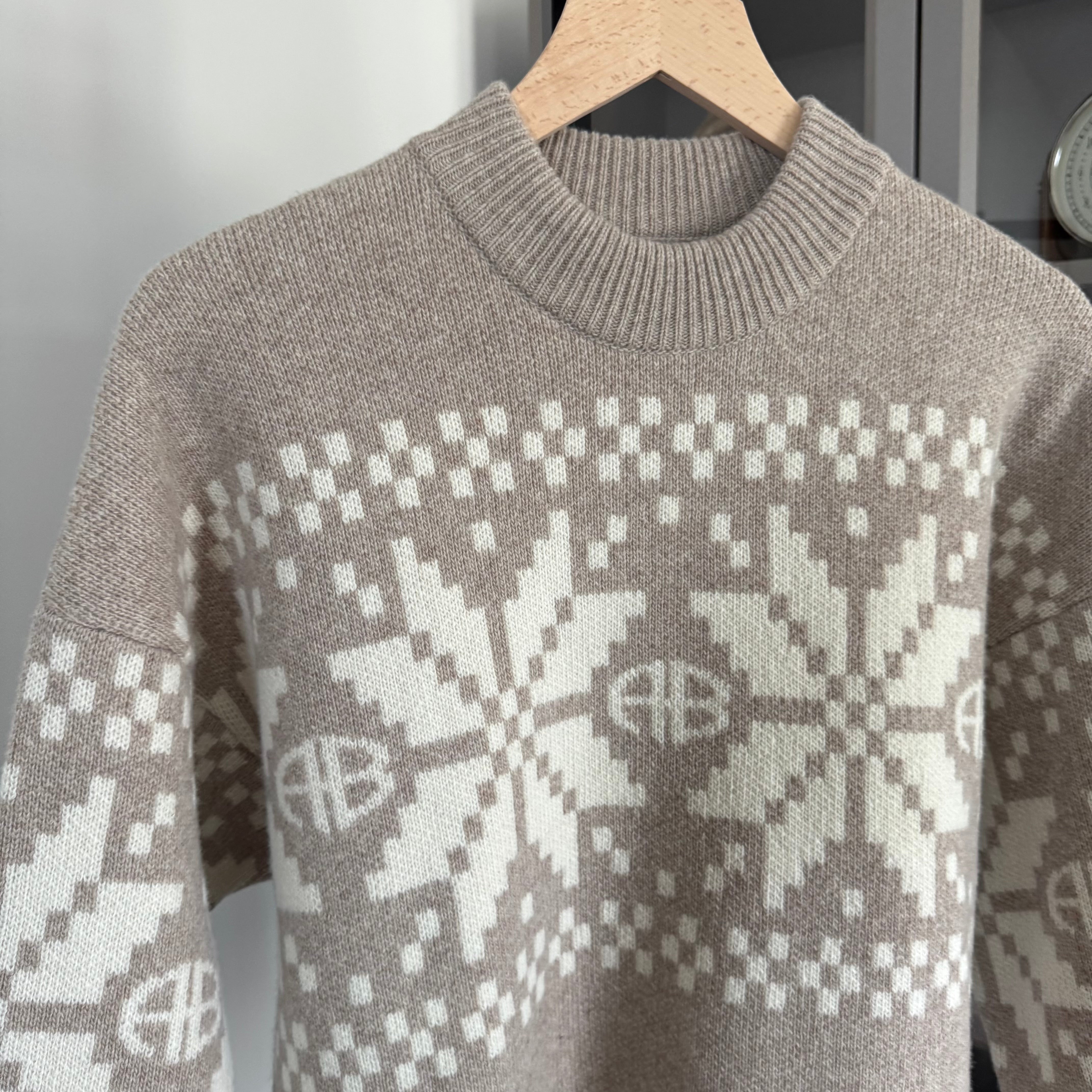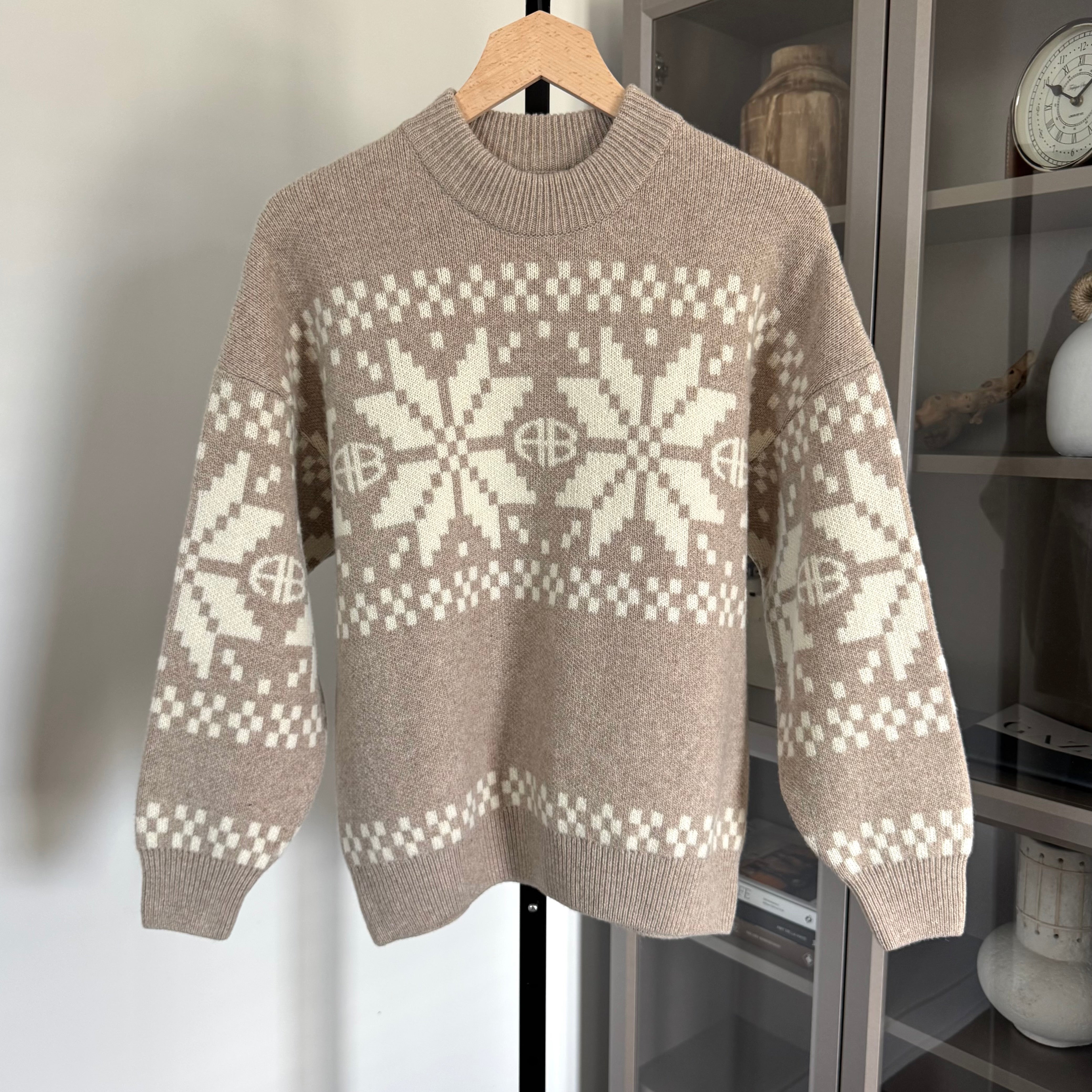Anine Bing Cheyenne Tan Beige Snowflake Mock Neck Holiday Sweater