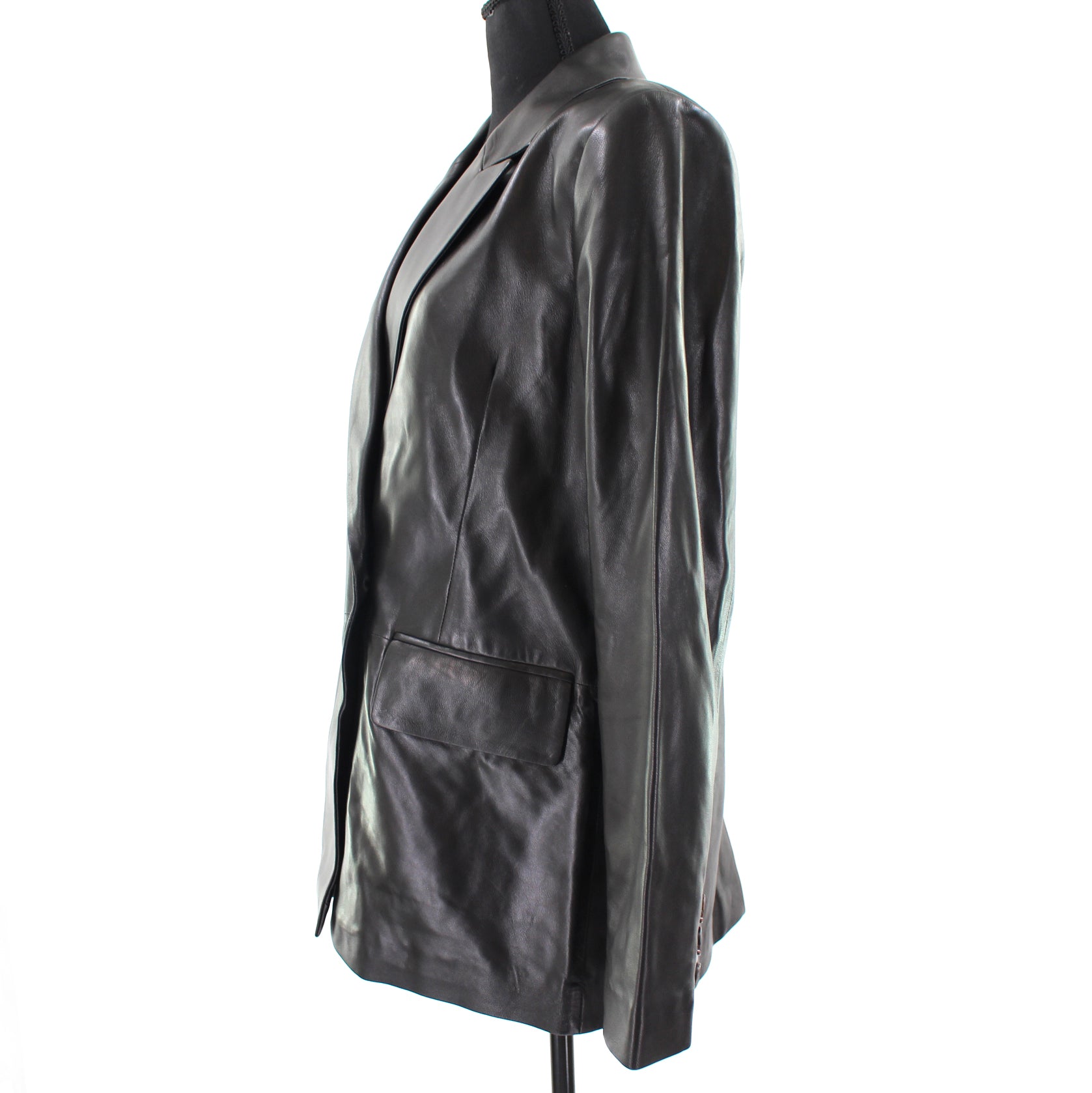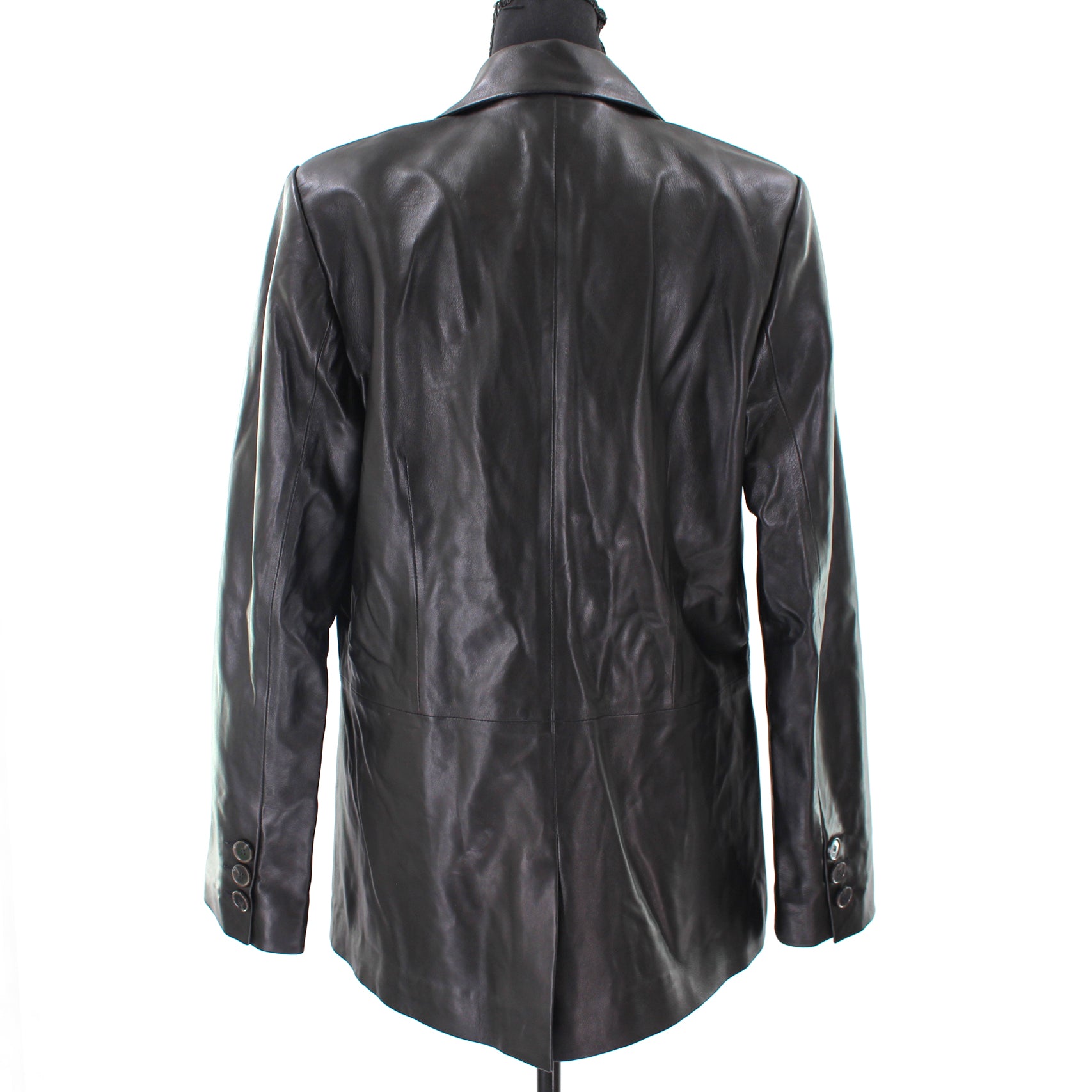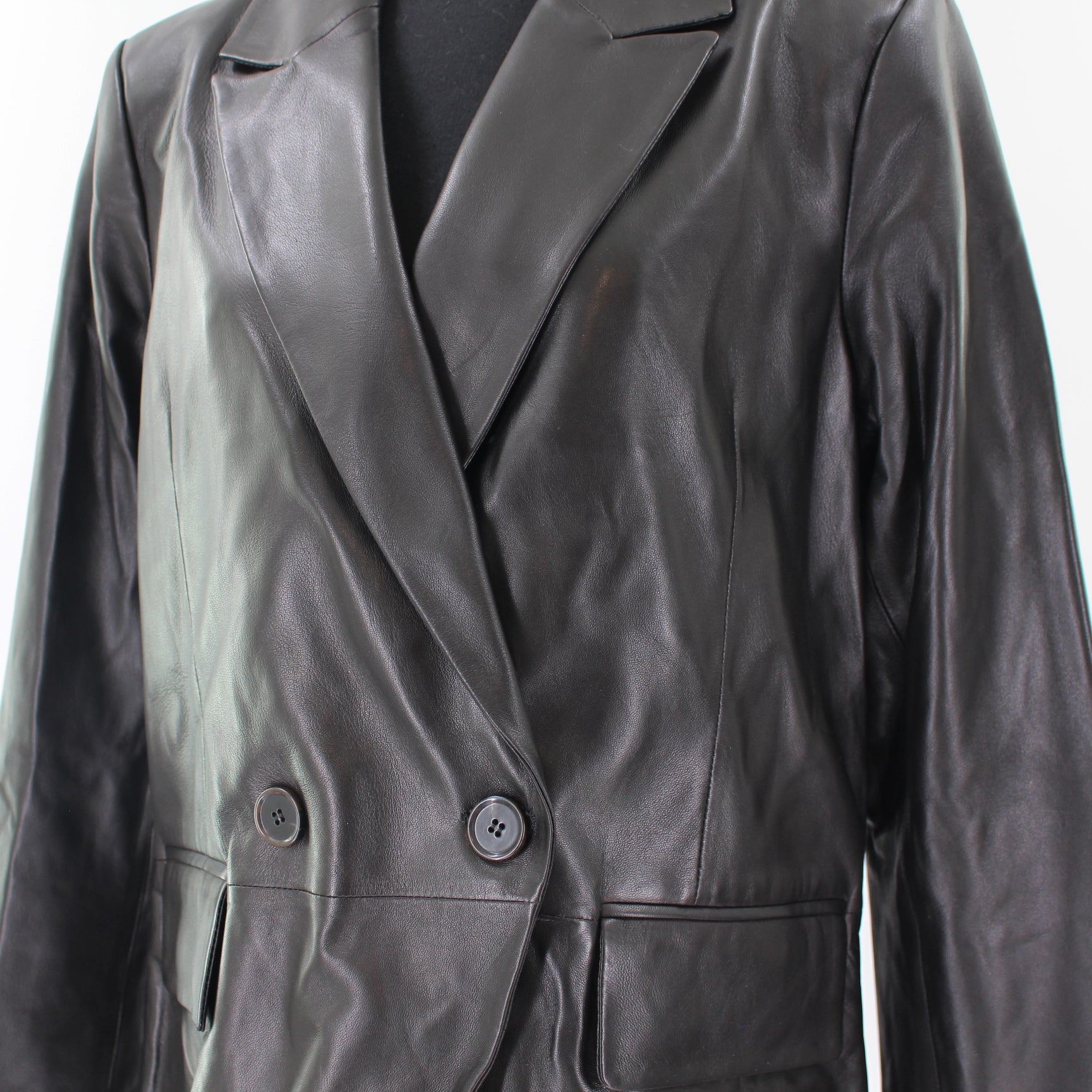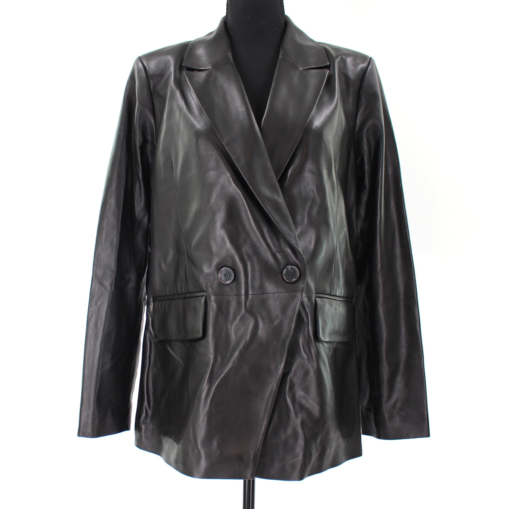 Anine Bing Grace Buttery Soft Black Leather Double Breasted Blazer Jacket