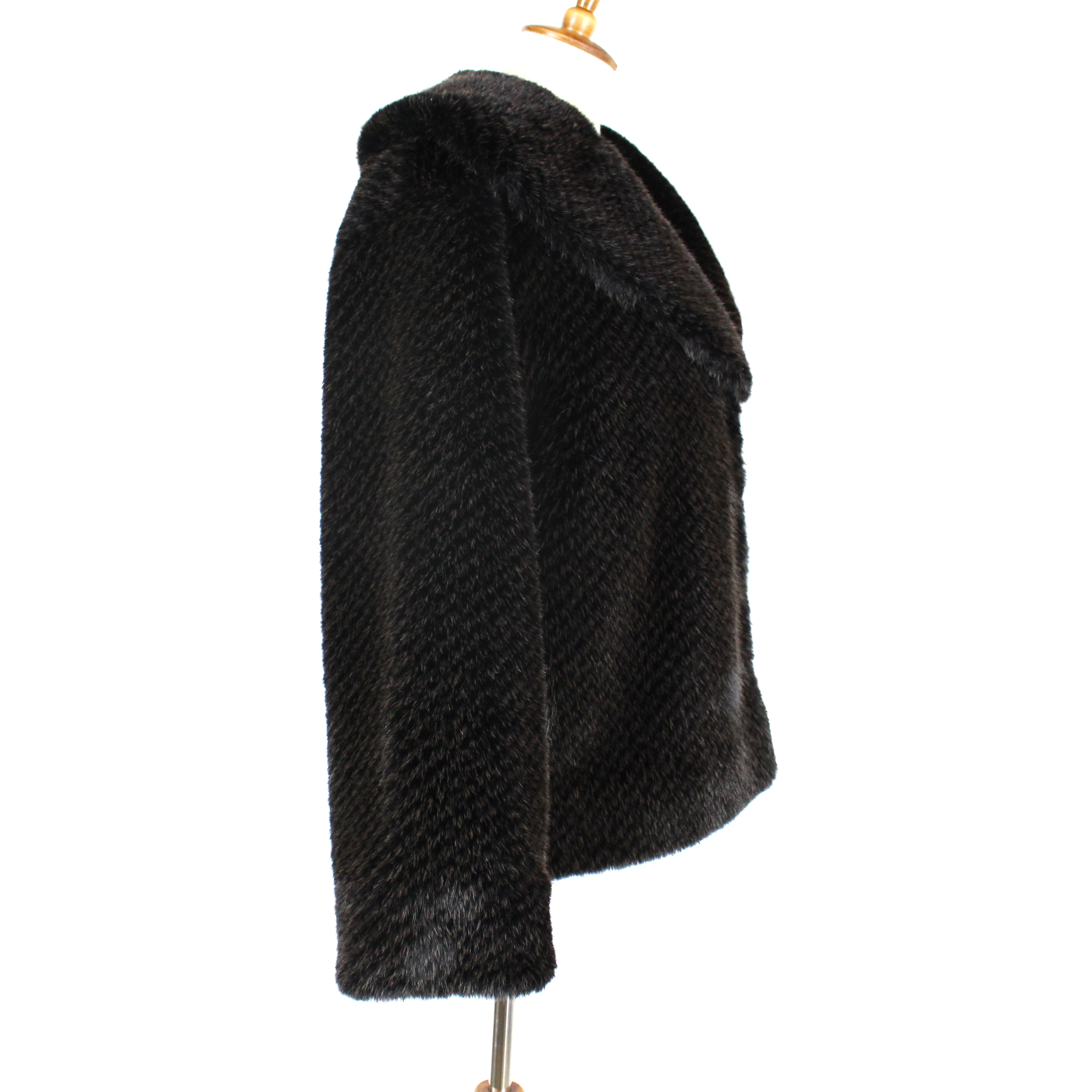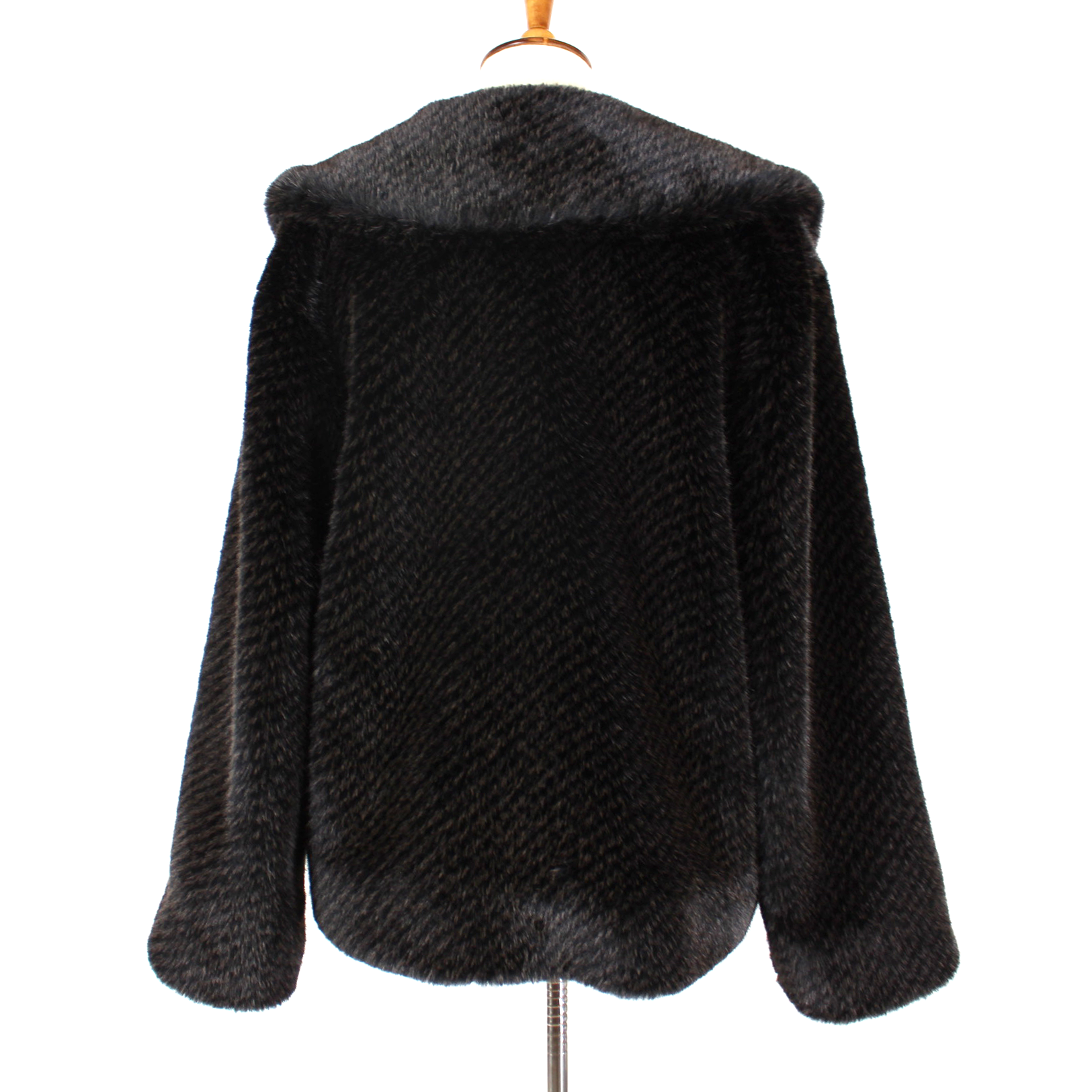 Anine Bing Hilary Brown Black Faux Fur Boxy Shawl Collar Jacket Coat
