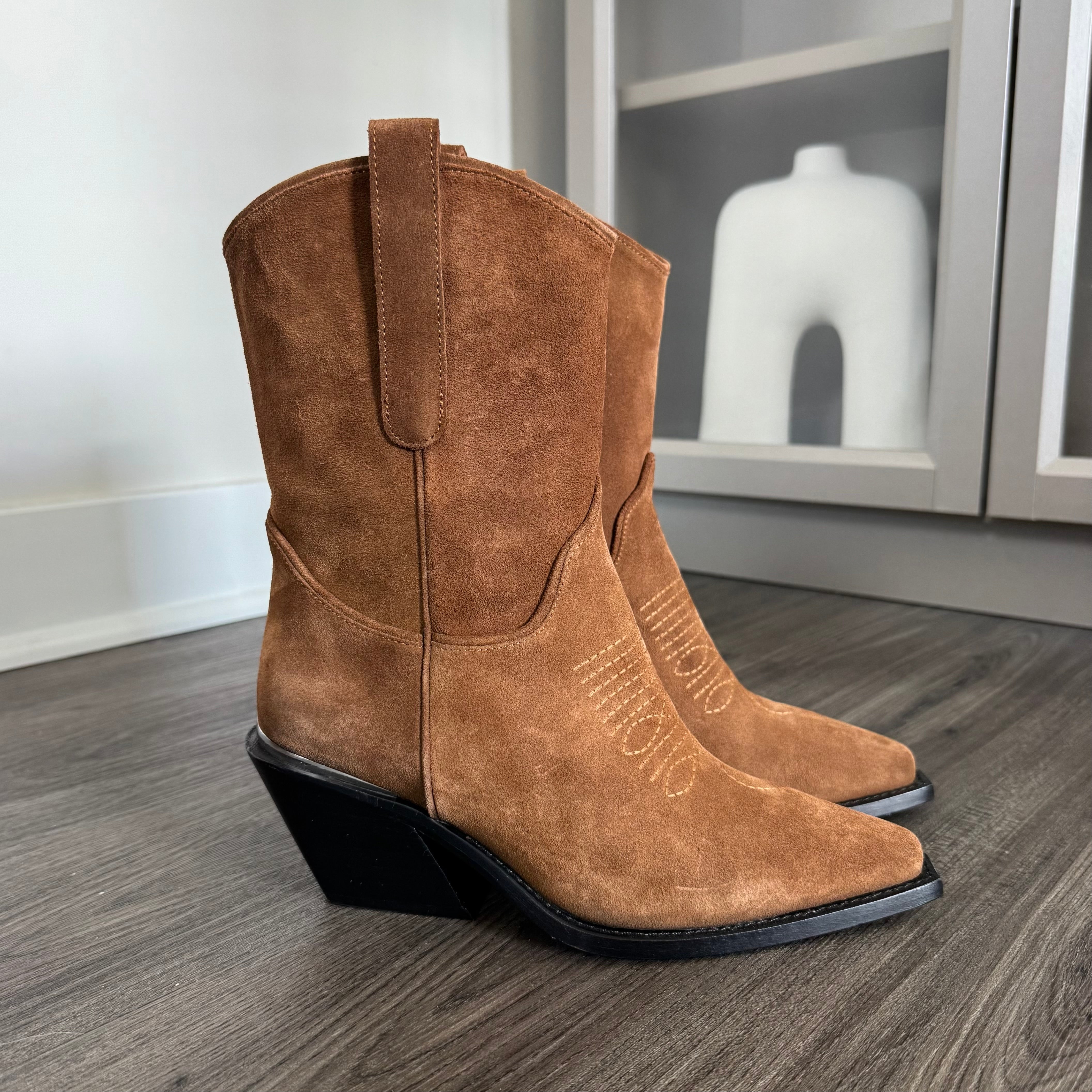 Anine Bing Mid Tania Toffee Suede Western Boots