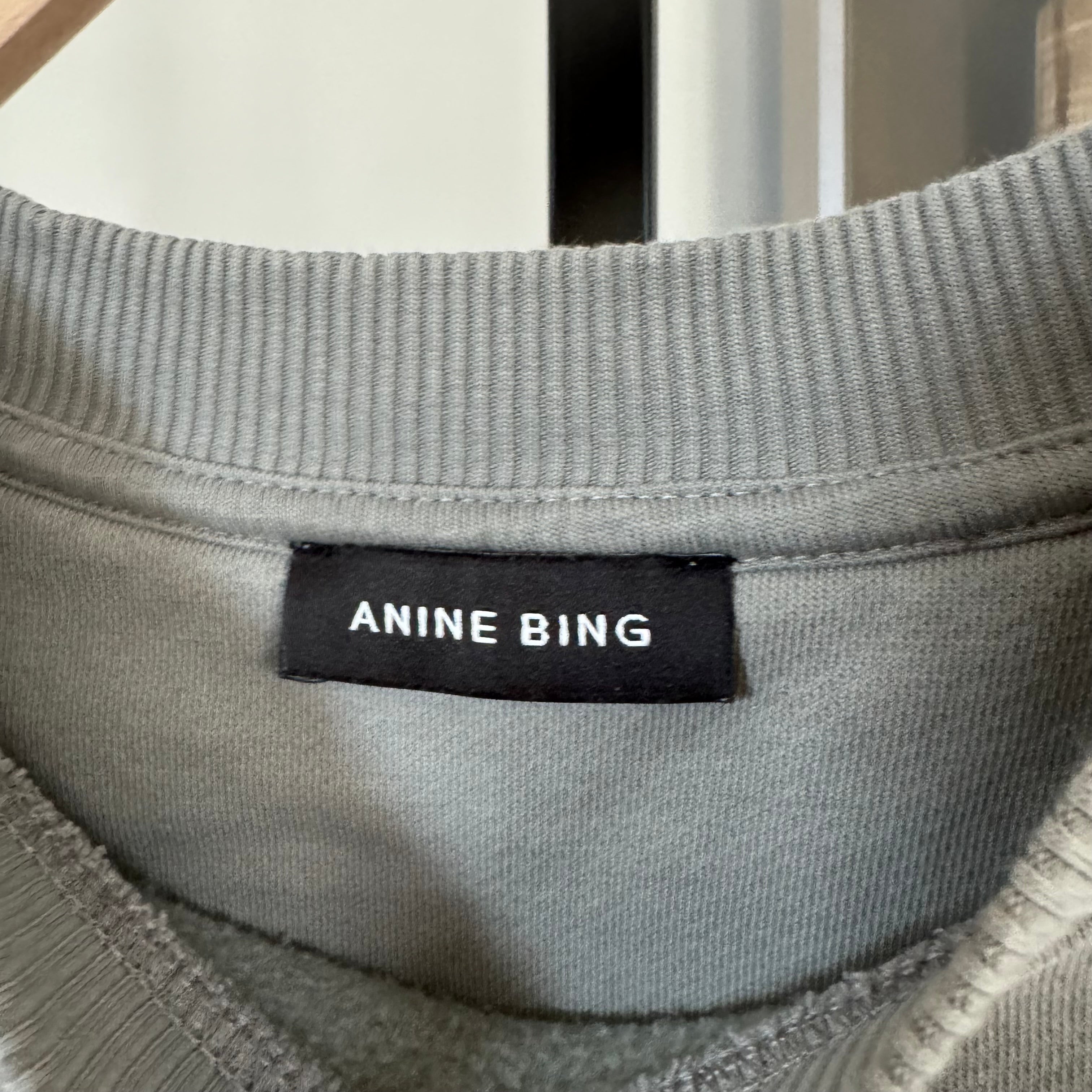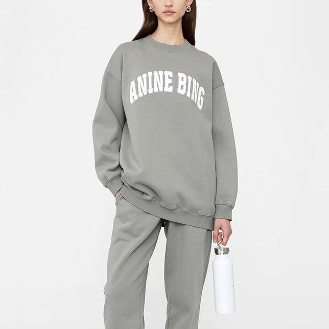 Anine Bing Tyler Stormy Grey Chenille Front Logo Patch Sweatshirt
