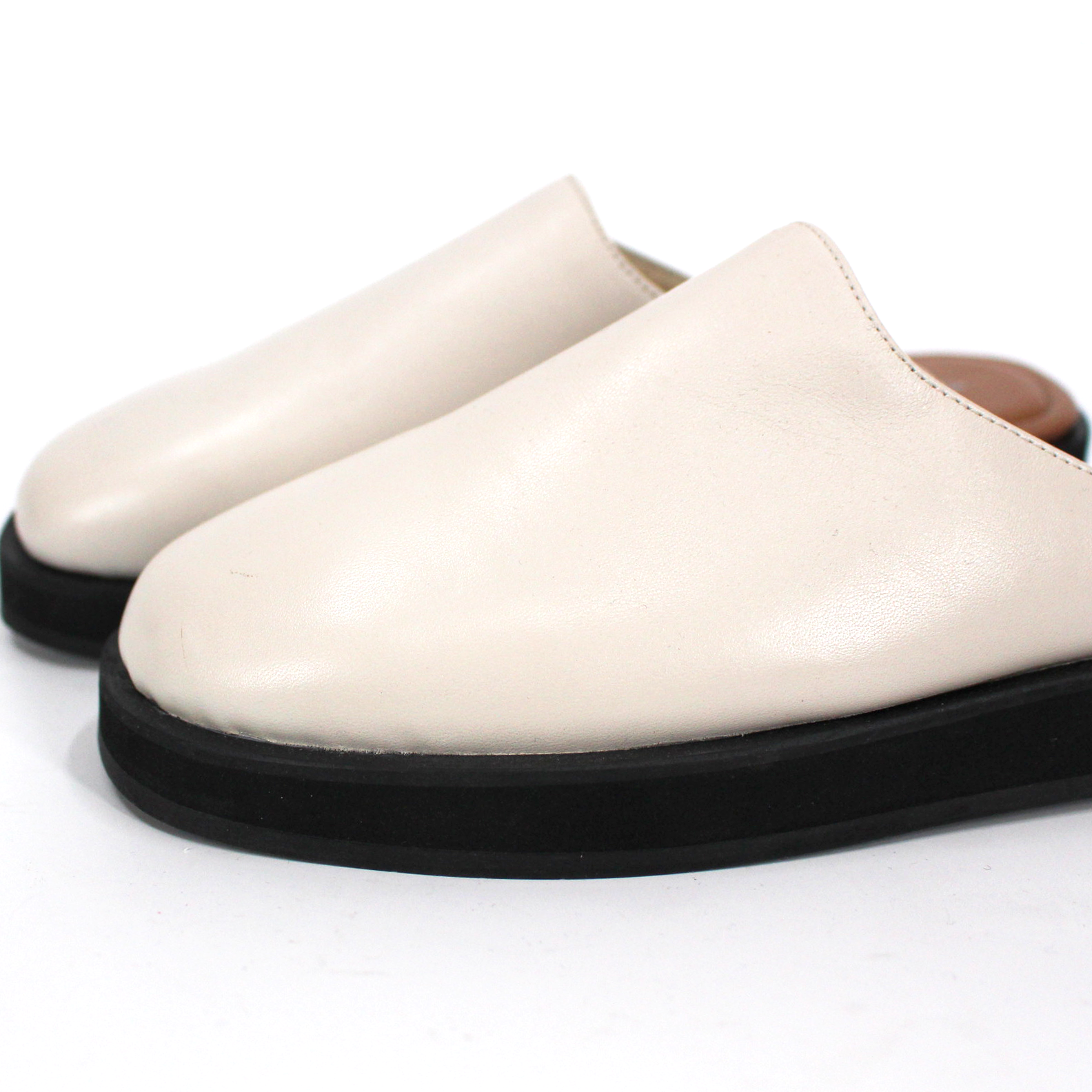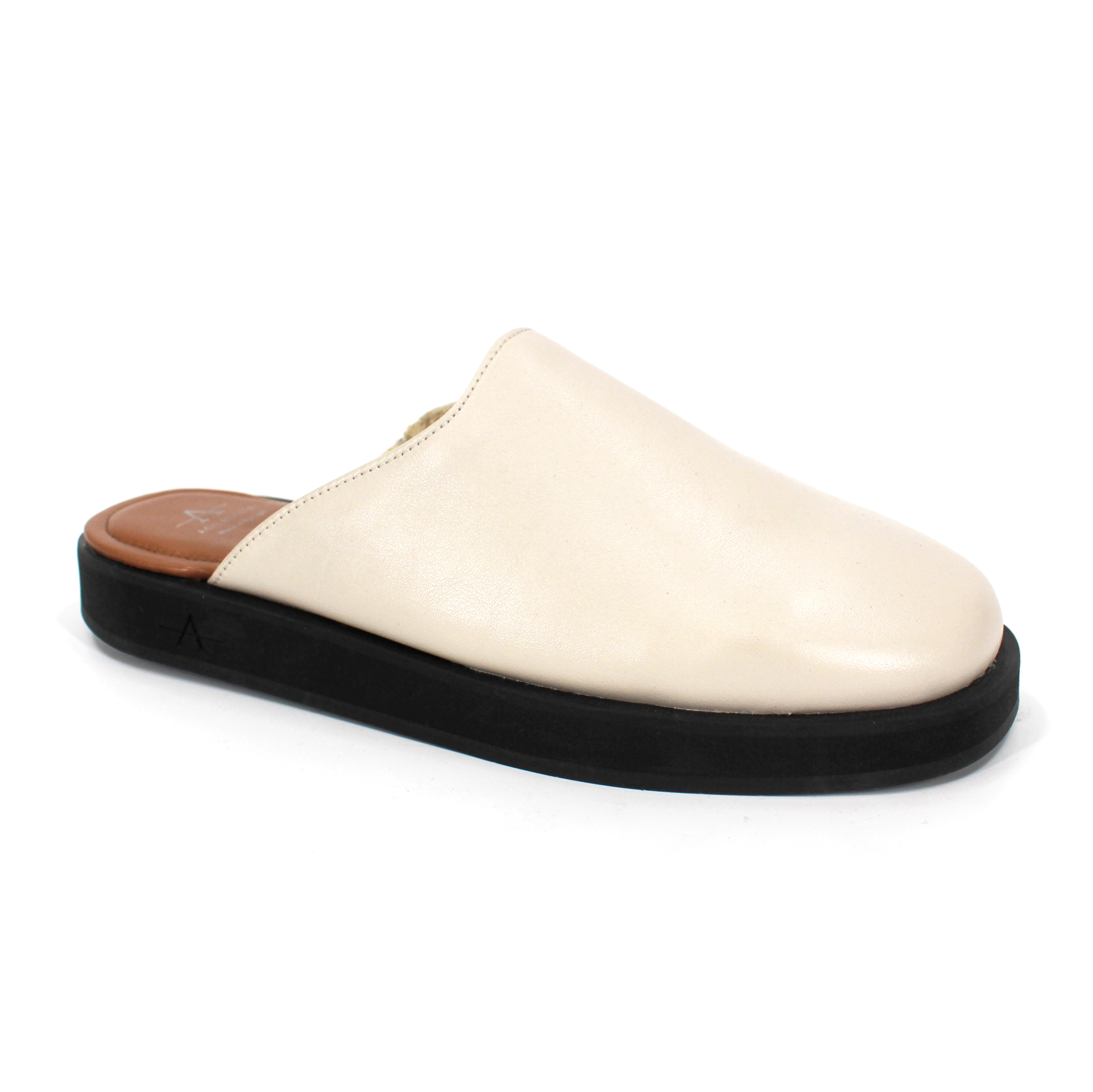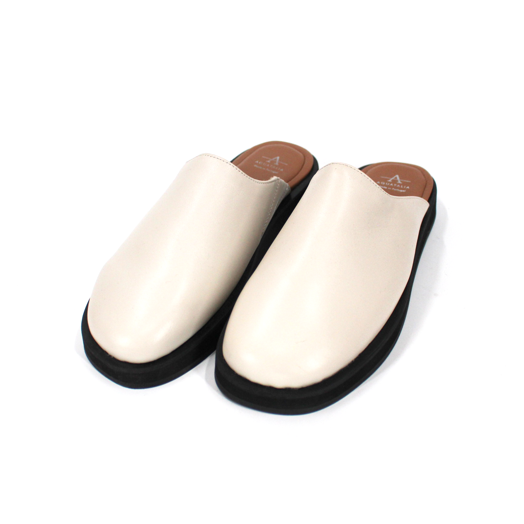 Aquatalia Gemmy Off-White Smooth Leather Slip On Mule Clogs