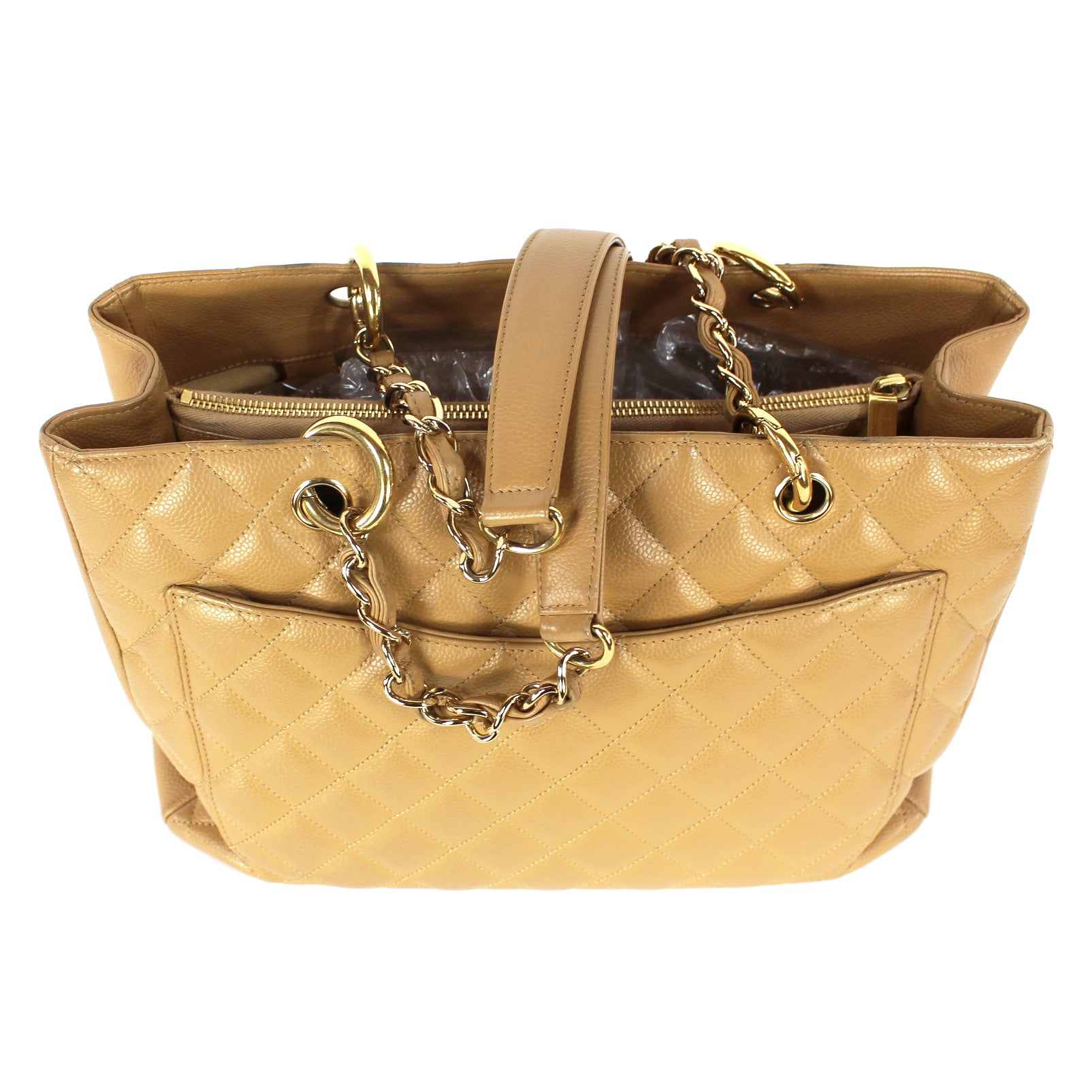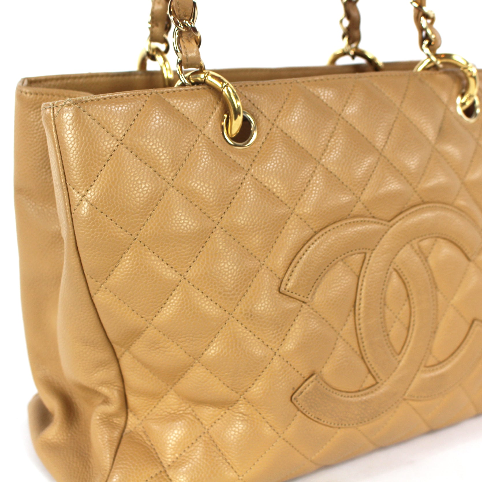 CHANEL Caviar Leather Camel Tan Quilted GST Shopper Tote
