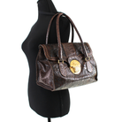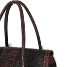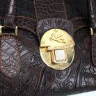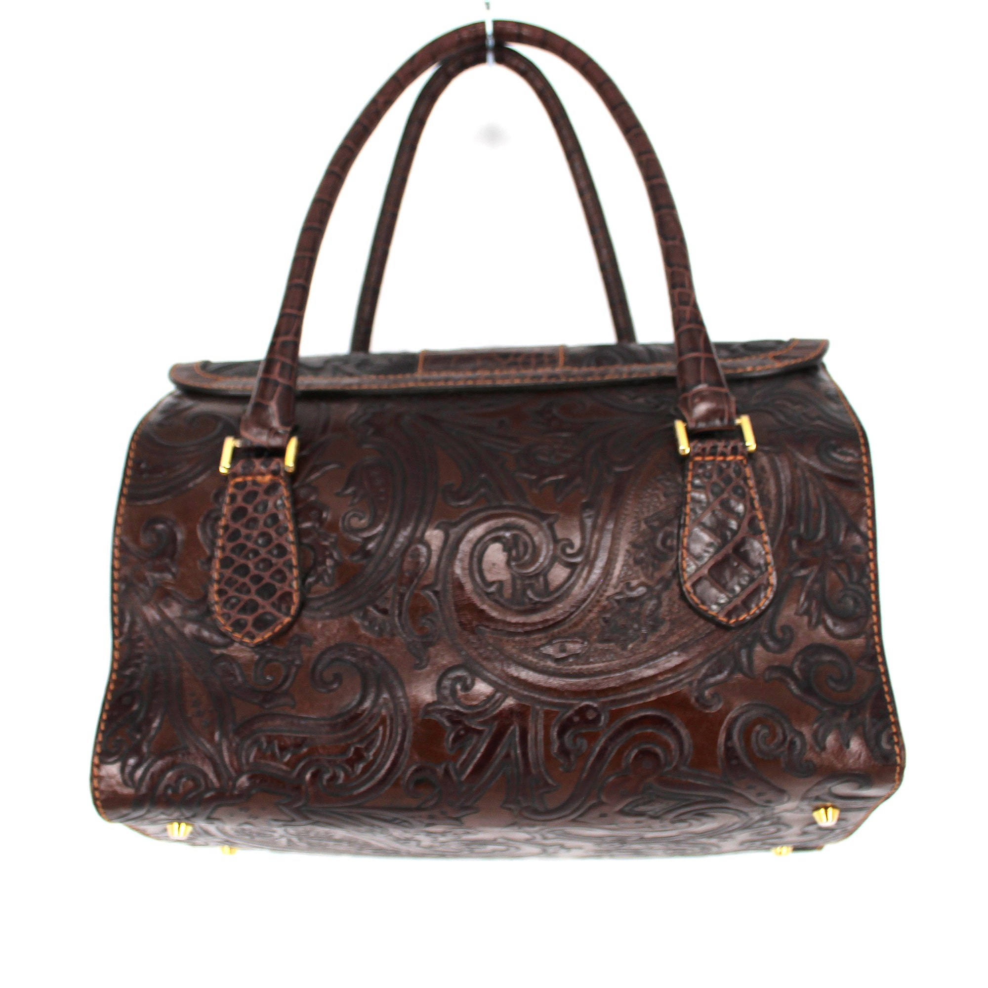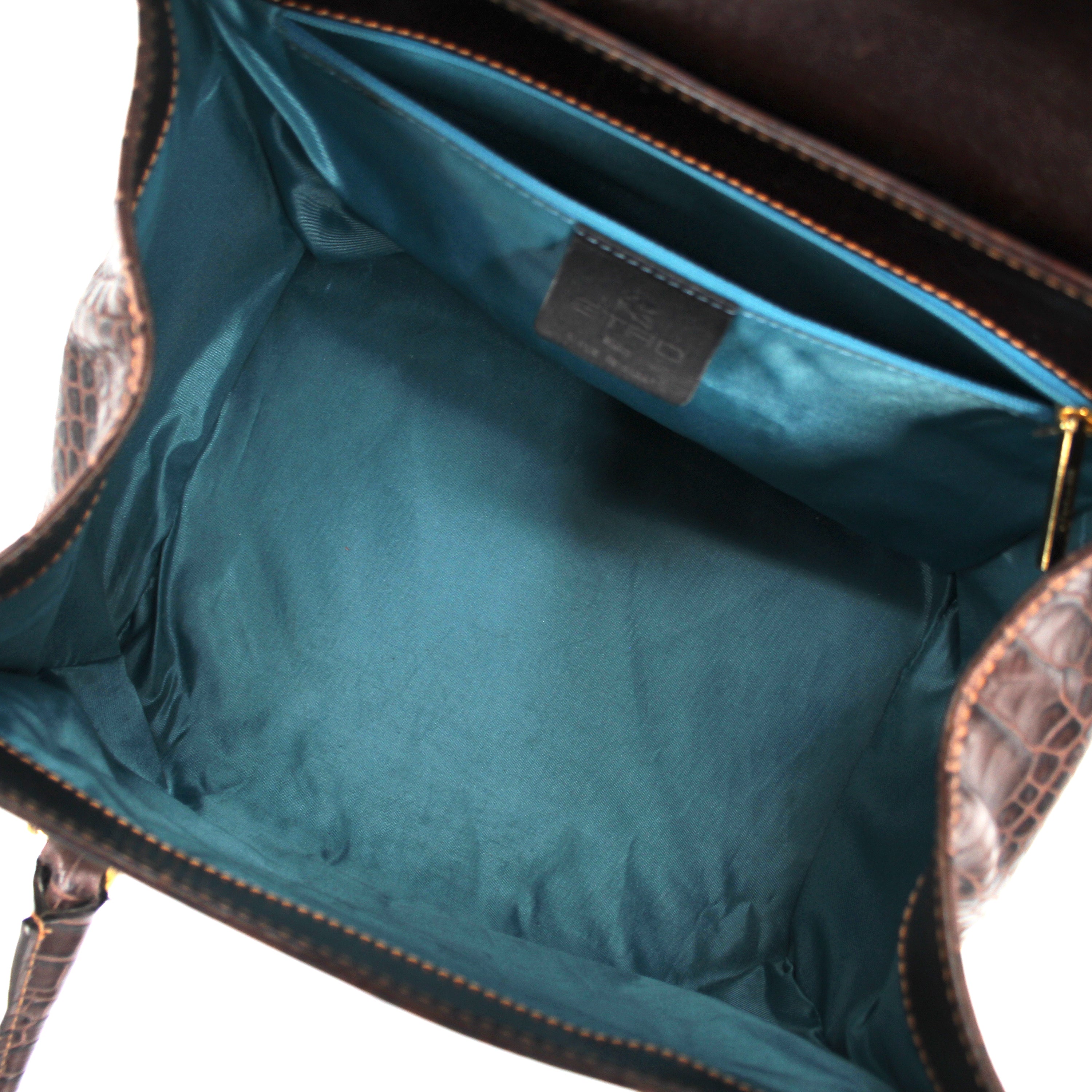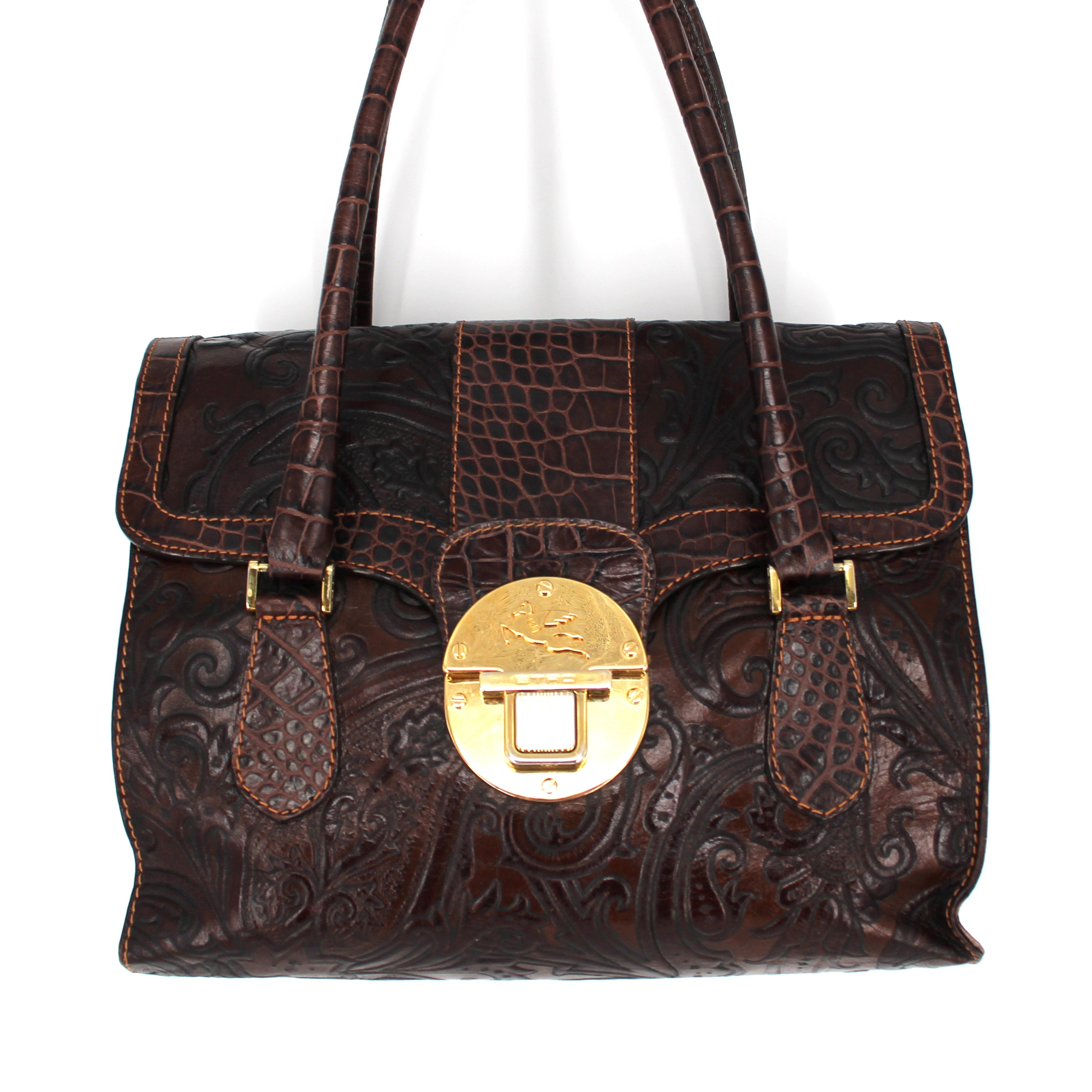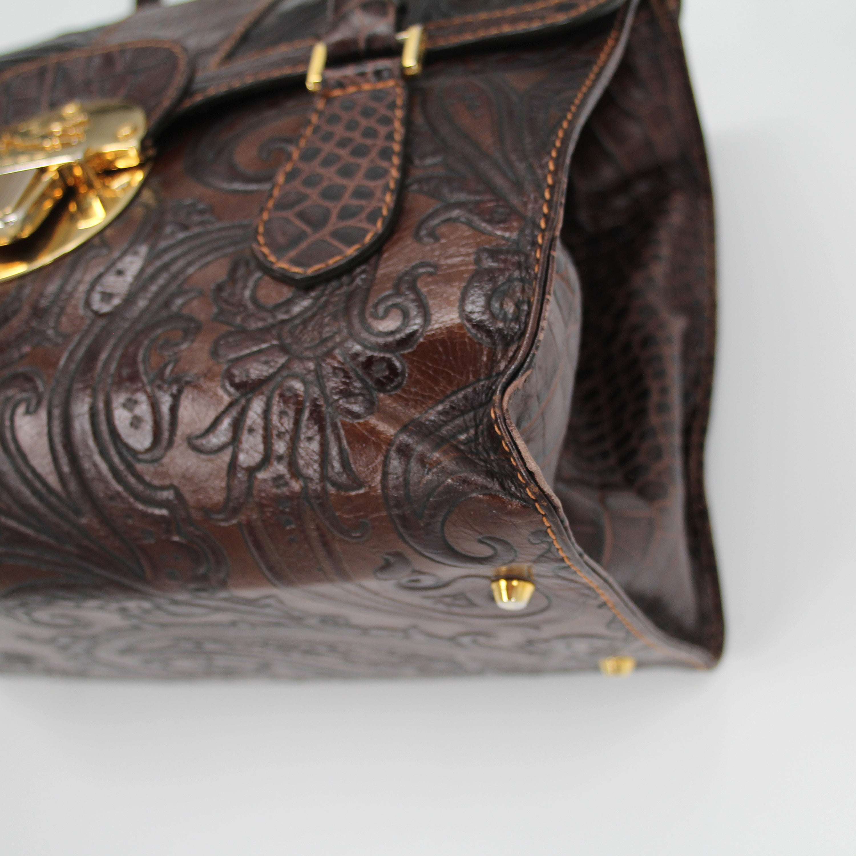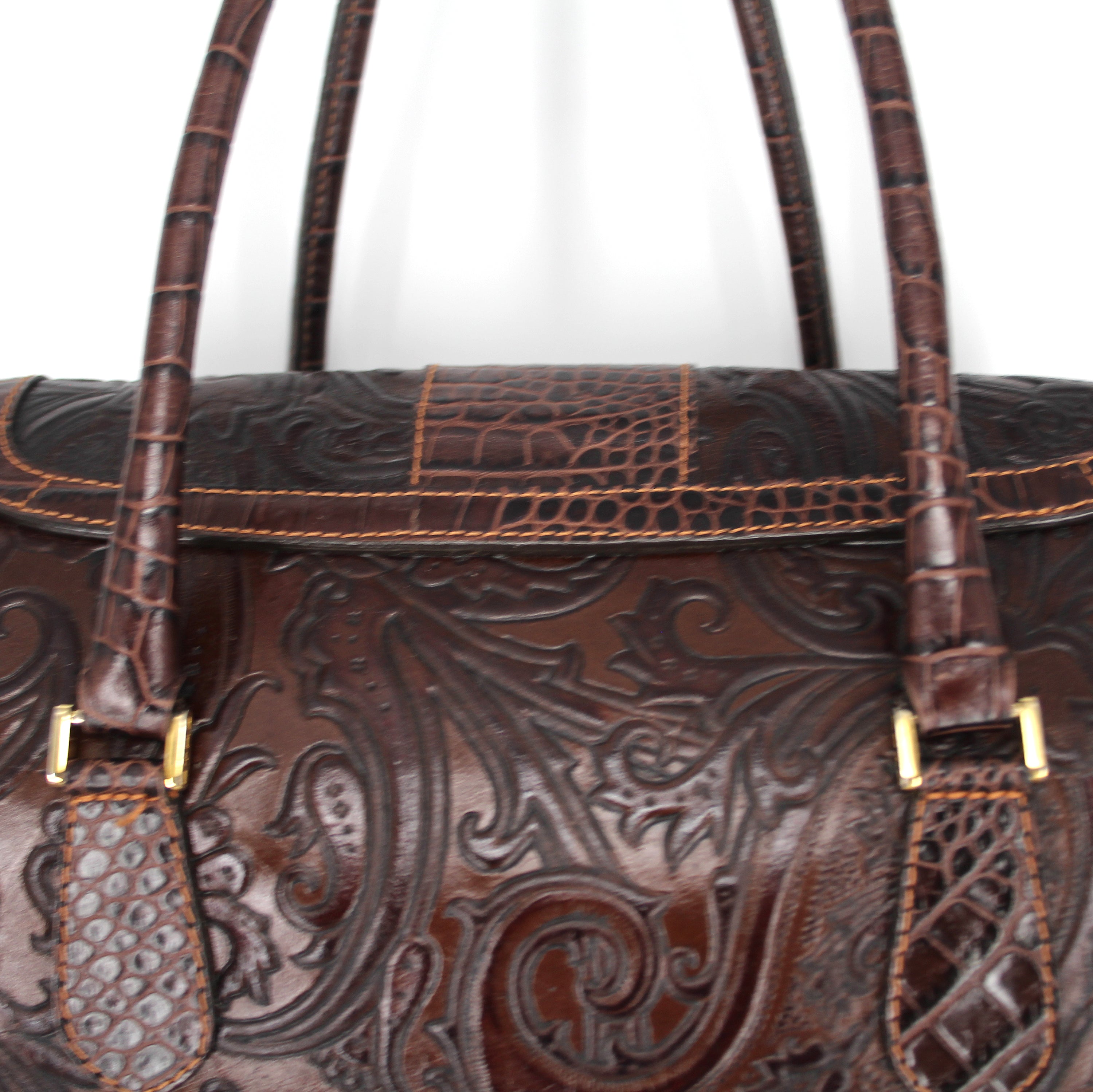 ETRO Brown Leather Embossed Floral Paisley Crocodile Print Handbag.
