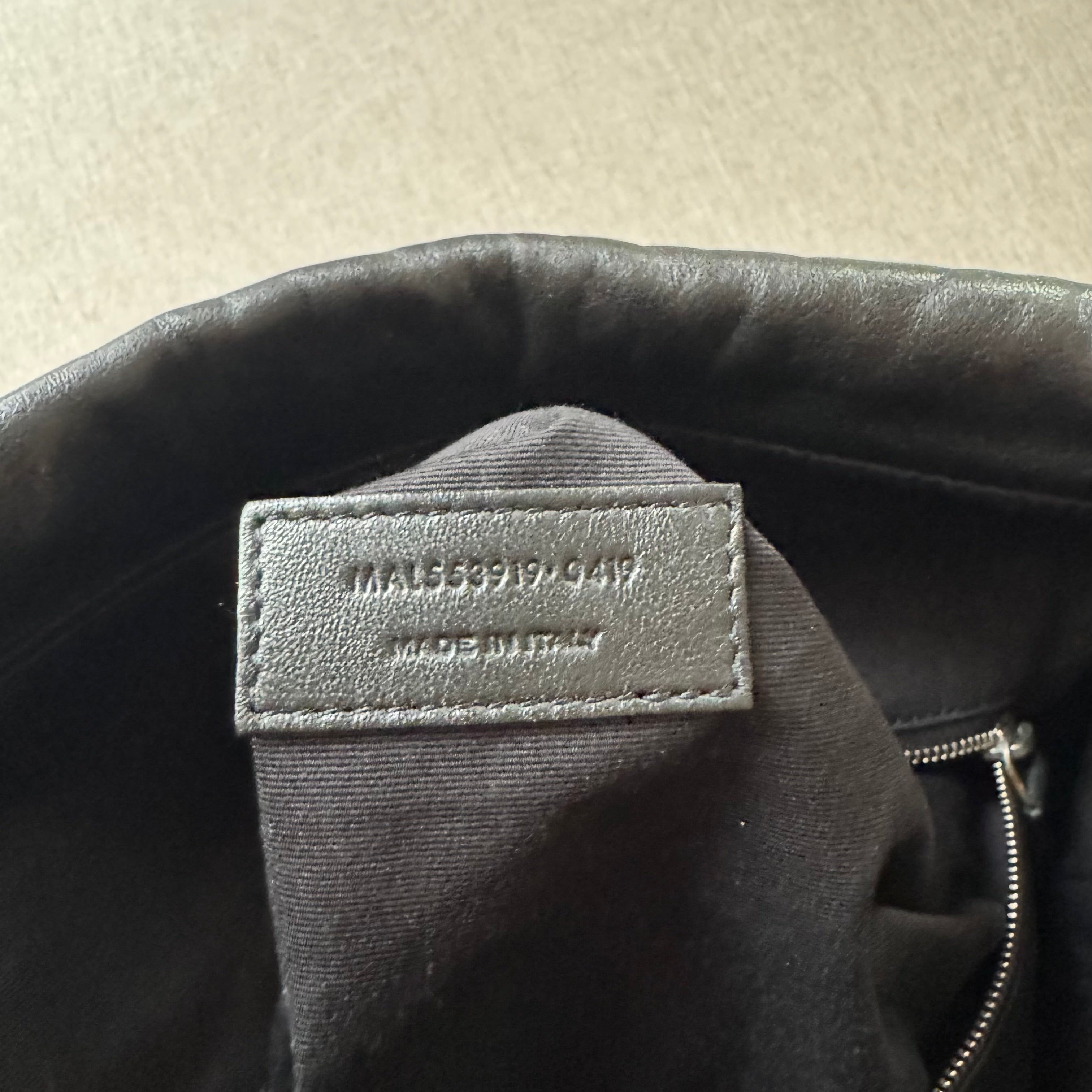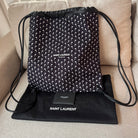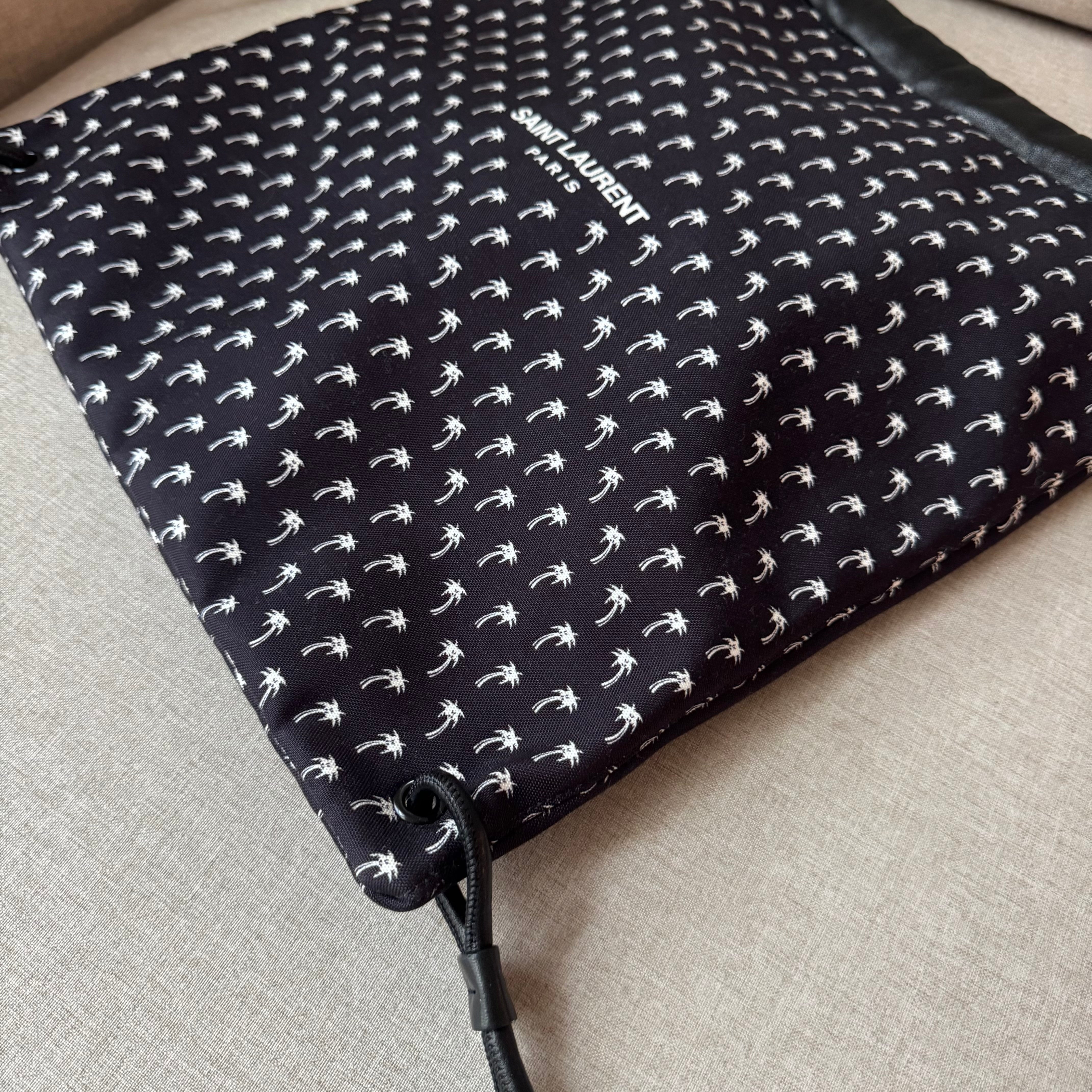Saint Laurent Drawstring Black White Palm Tree Leather Trim Backpack