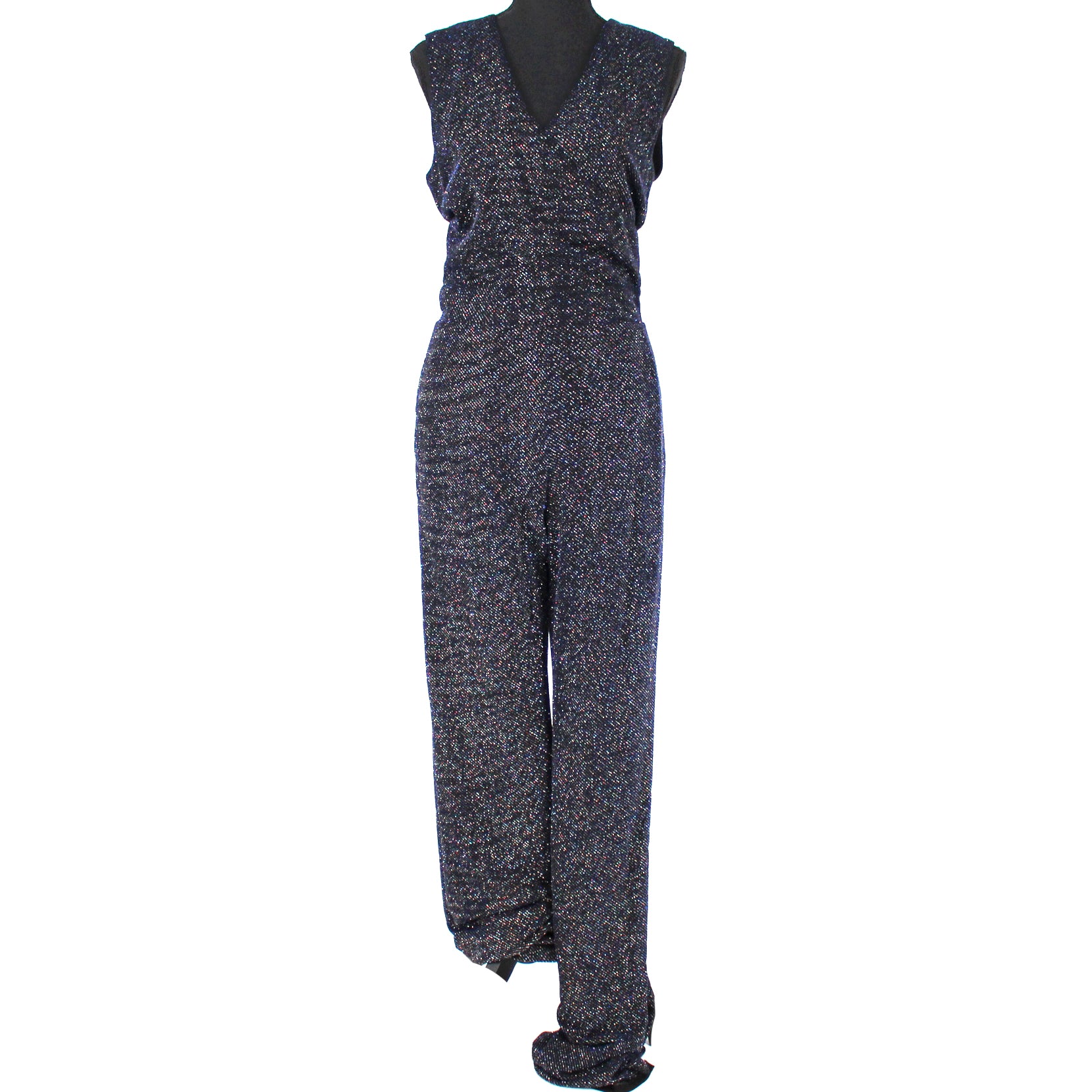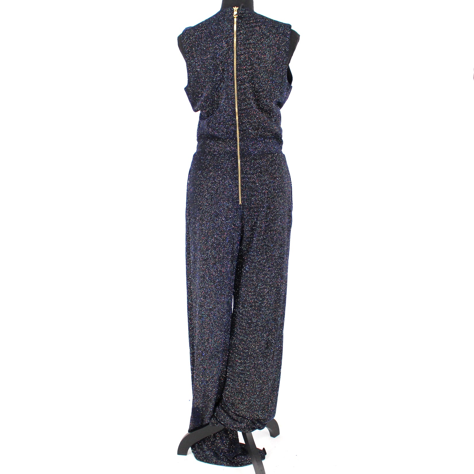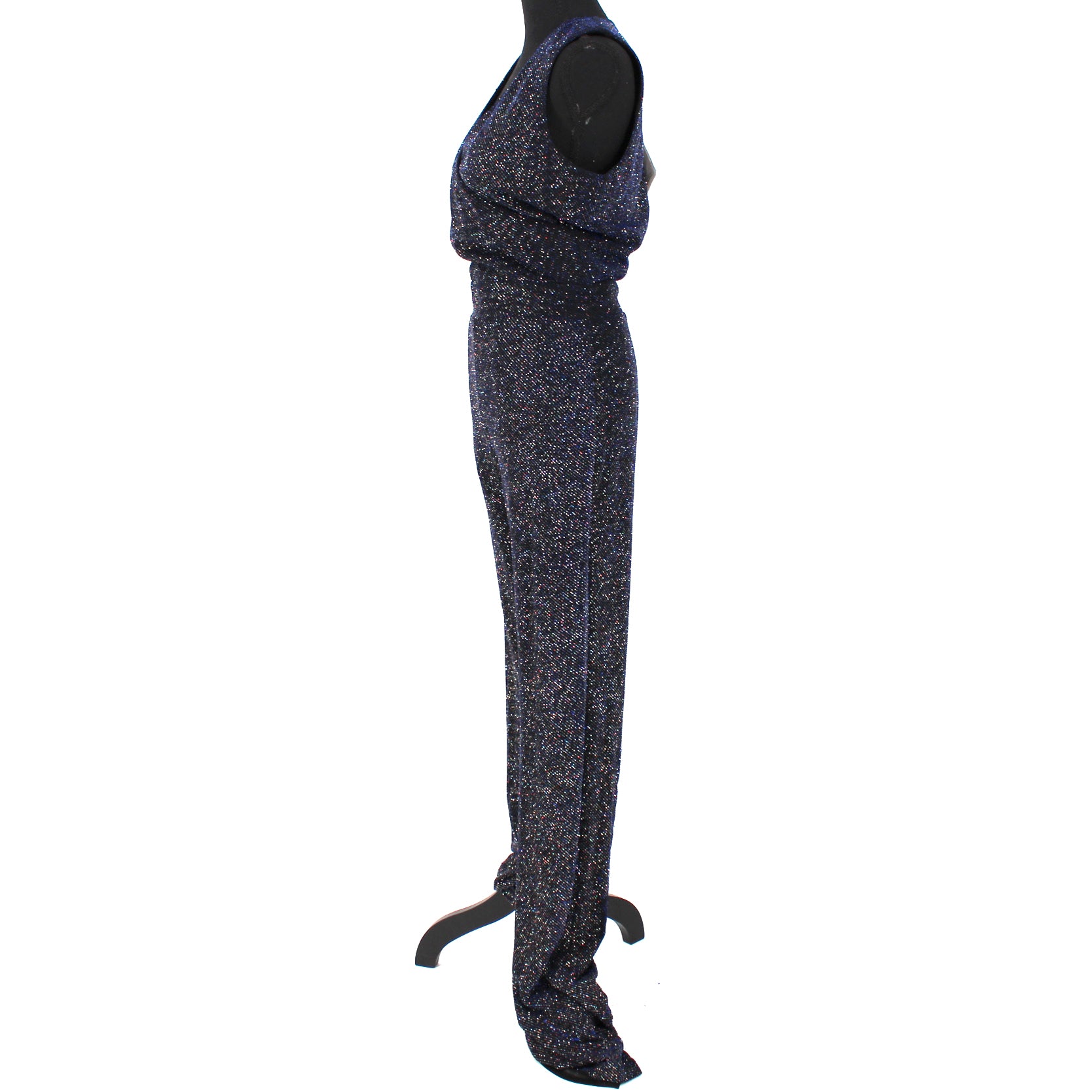 Balmain Glittered Blue Black V-Neck One Piece Sleeveless Jumpsuit.